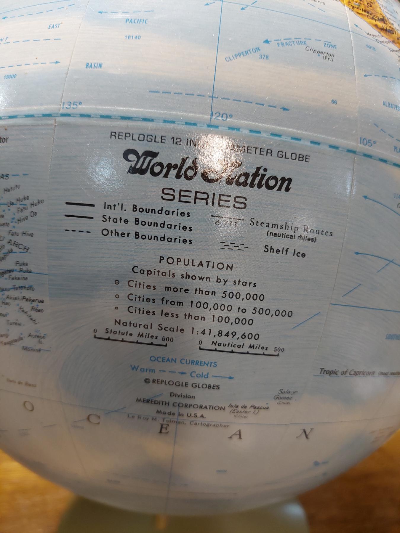 Vintage " REPOGLE " 12" WORLD SERIES Desk Globe - Exc Condition See Pics