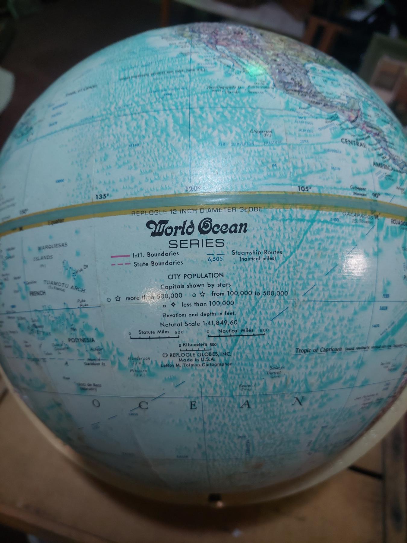 Vintage "REPOGLE" World Ocean Series 12" Desk Globe - Fully Functional - Great Surface Condition & Color