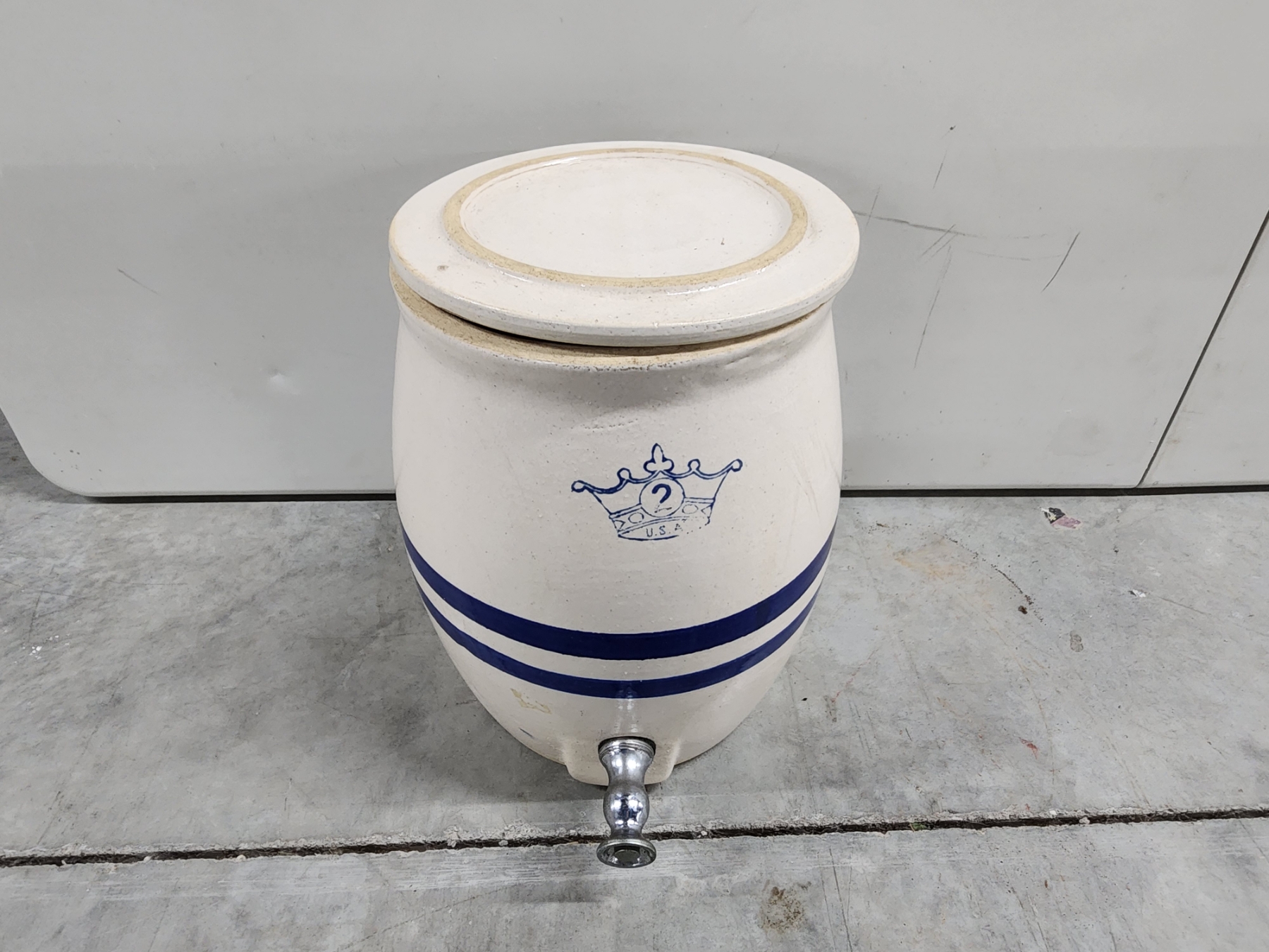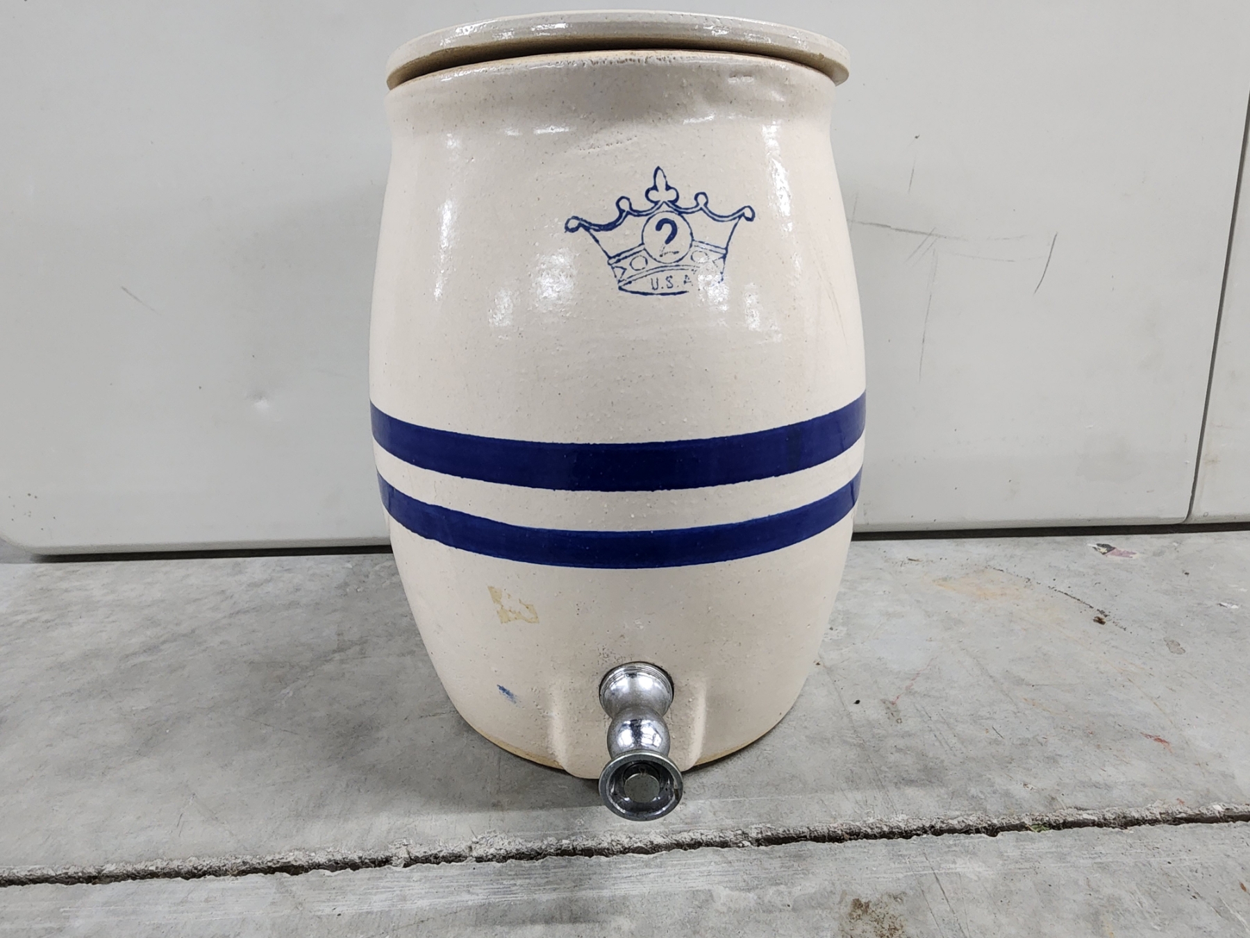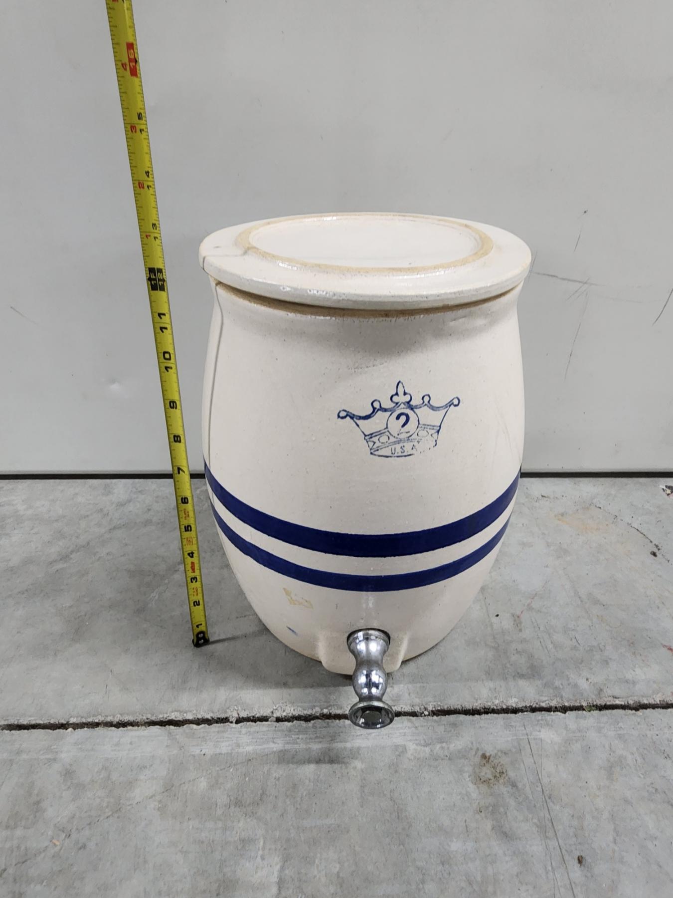 Vintage Robinson Ransbottom Blue Crown 2-Gallon Stoneware Water Cooler/Drink Dispenser