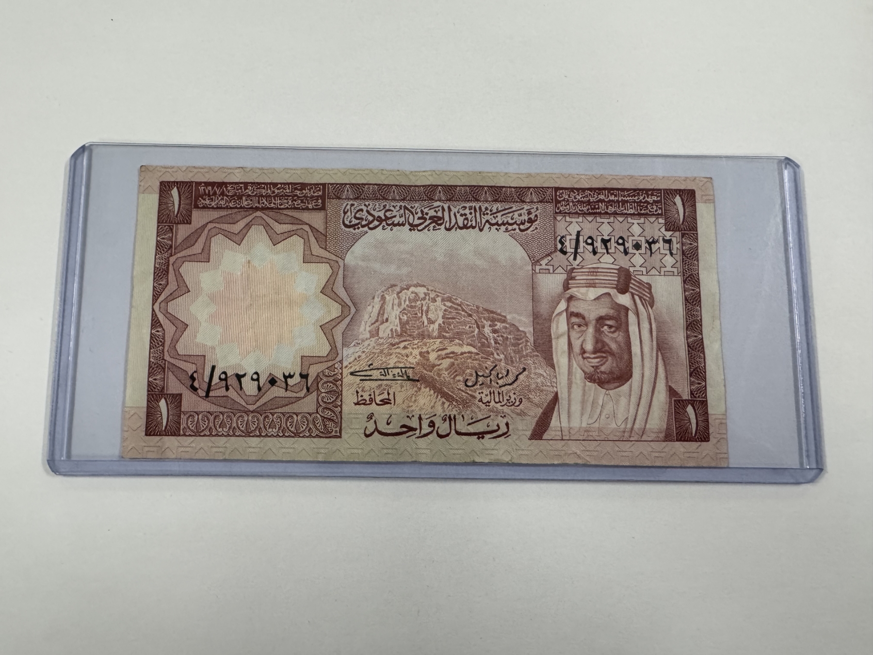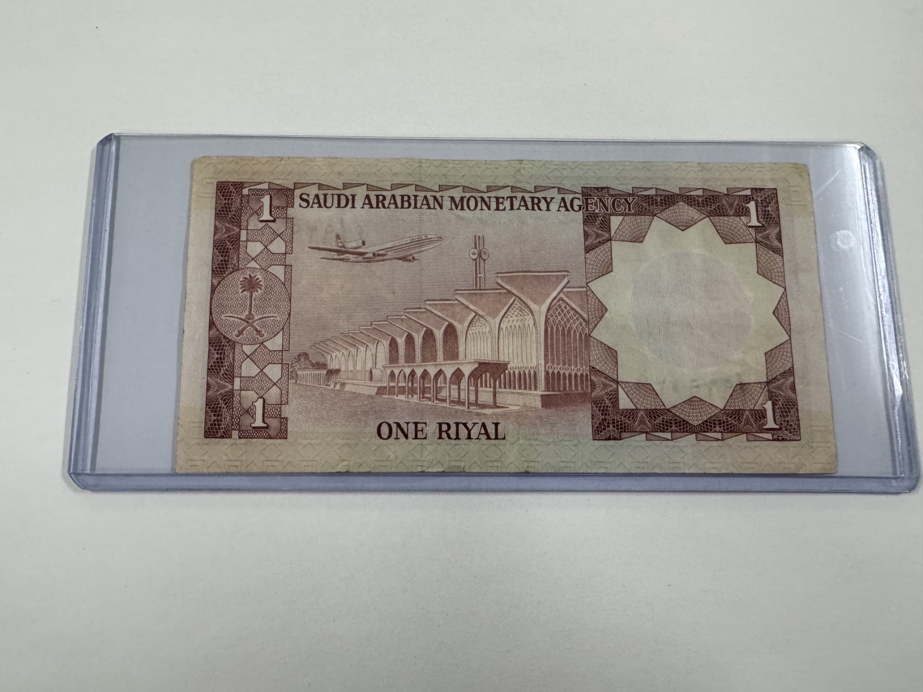 Vintage SAUDI ARABIAN ONE RIYAL Note In Protective Holder - Old Banknote - Excellent Piece