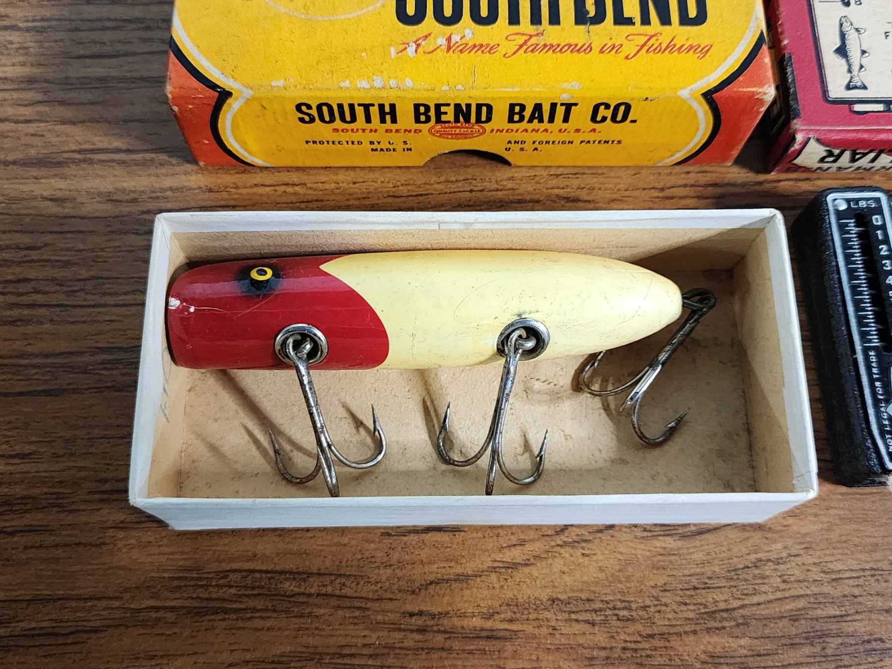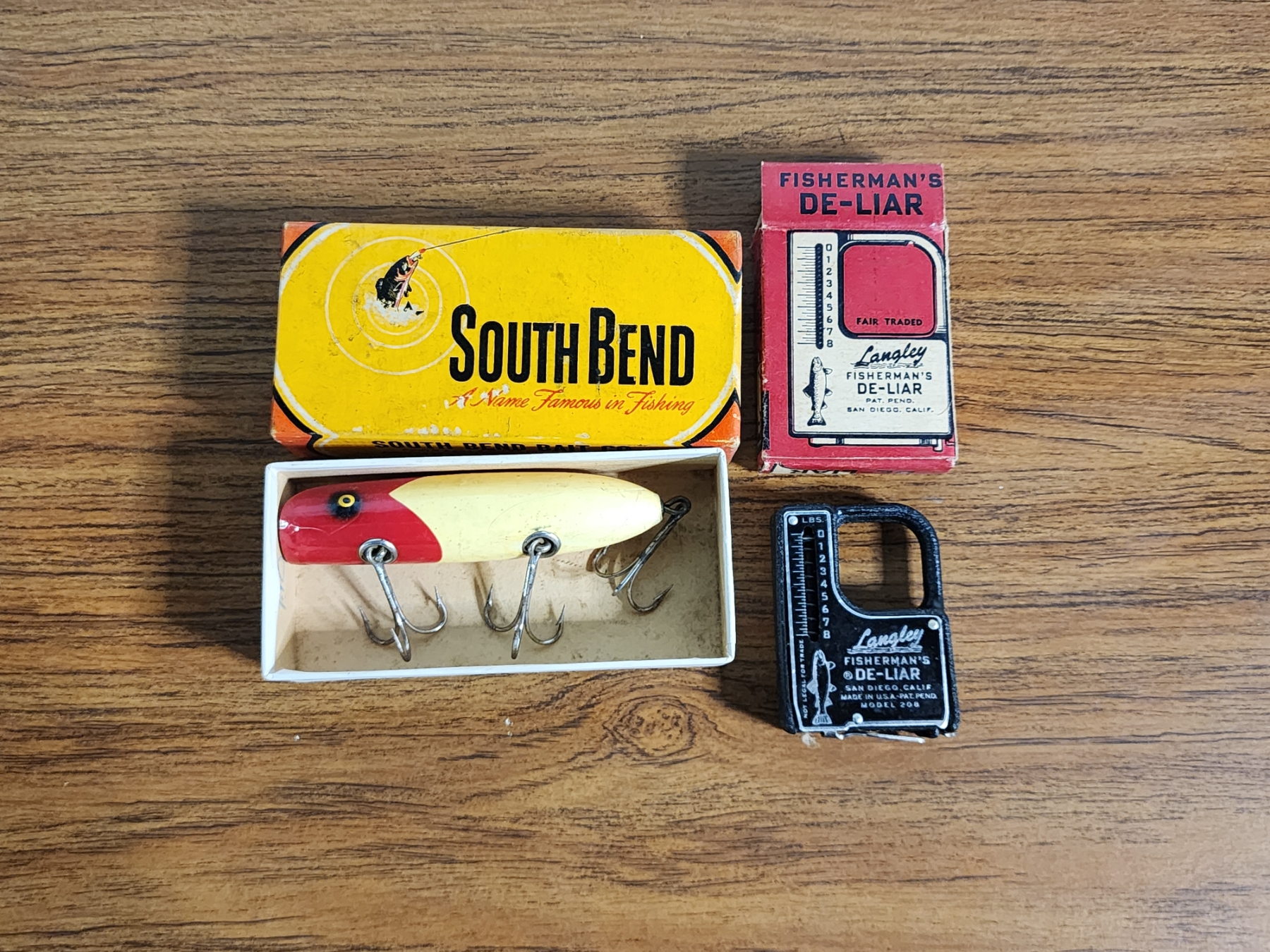 Vintage South Bend Fishing Lure & Vintage Langley Fisherman's De-Liar Fish Scale