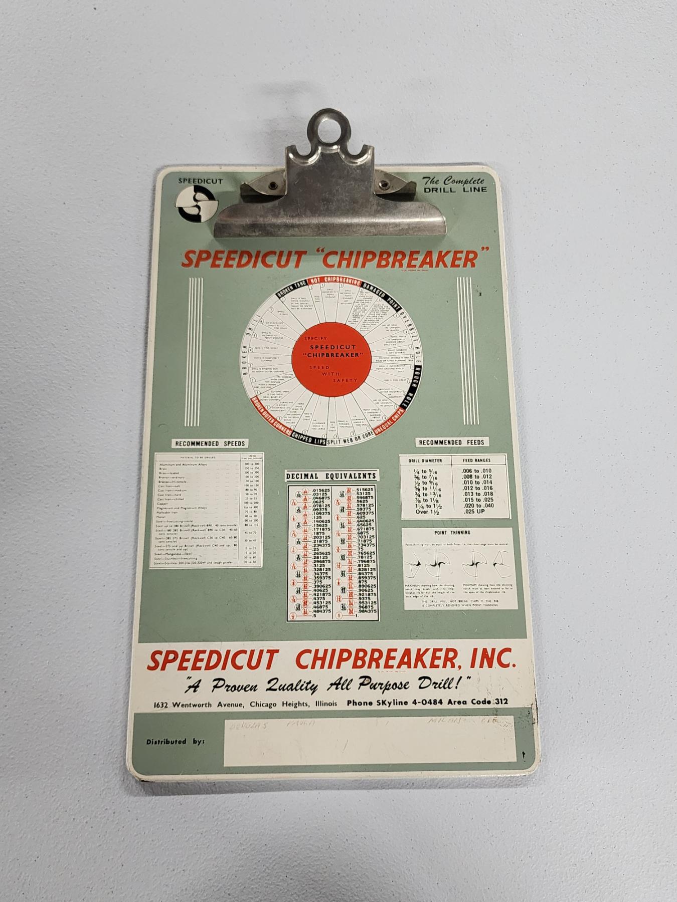 Vintage Speedicut "Chipbreaker" Drill Line Chicago Illinois Clipboard - In Great Condition