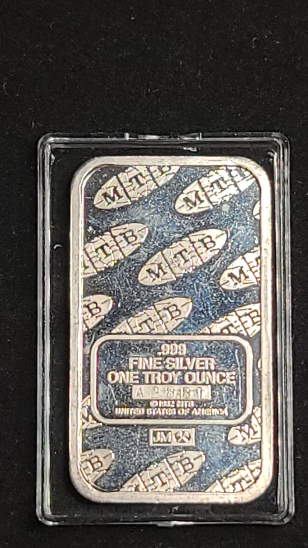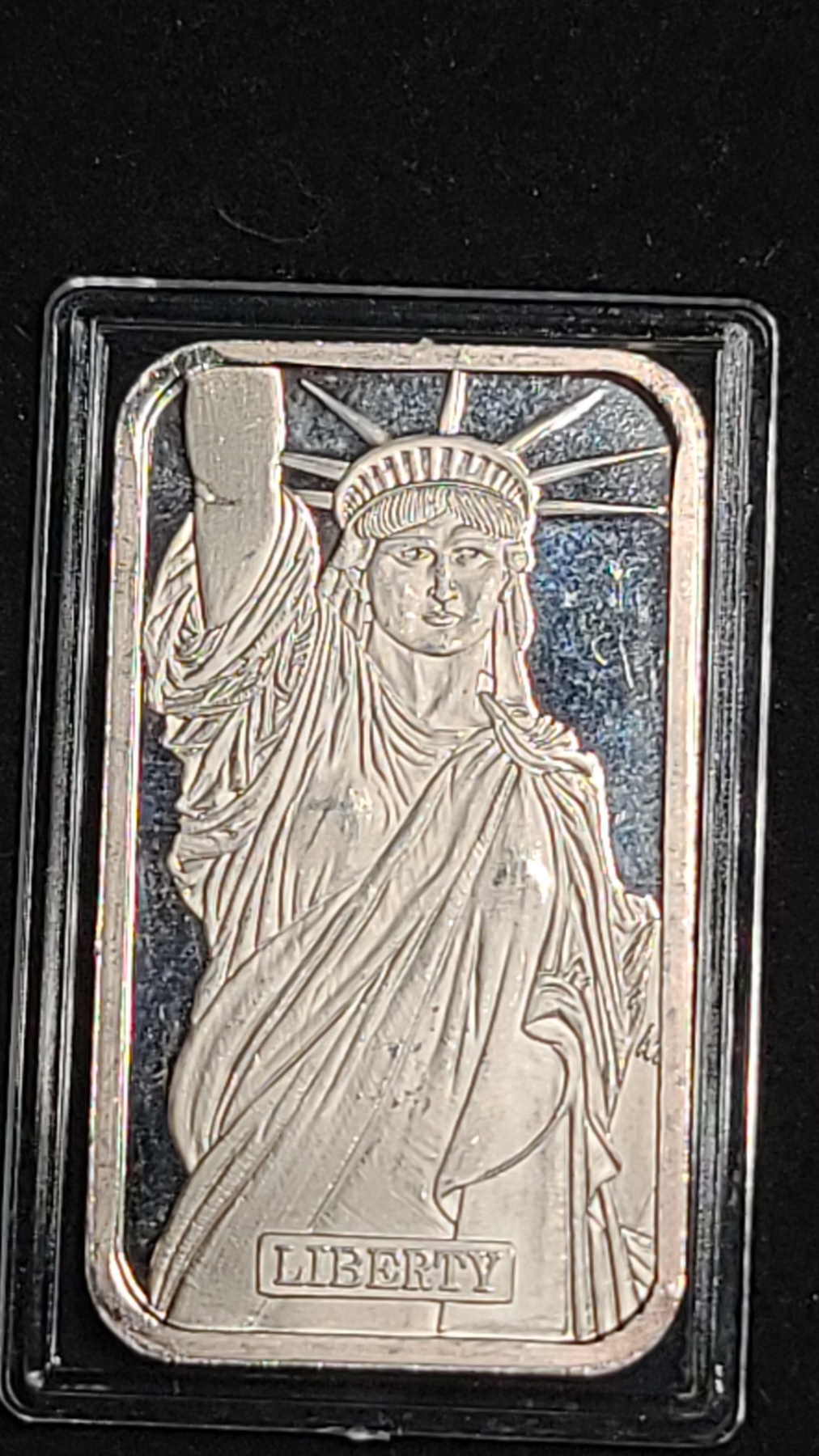 Vintage Statue Of Liberty 1 Troy Oz .999 Fine Silver MTB Rare Johnson Matthey Bar With Serial Number