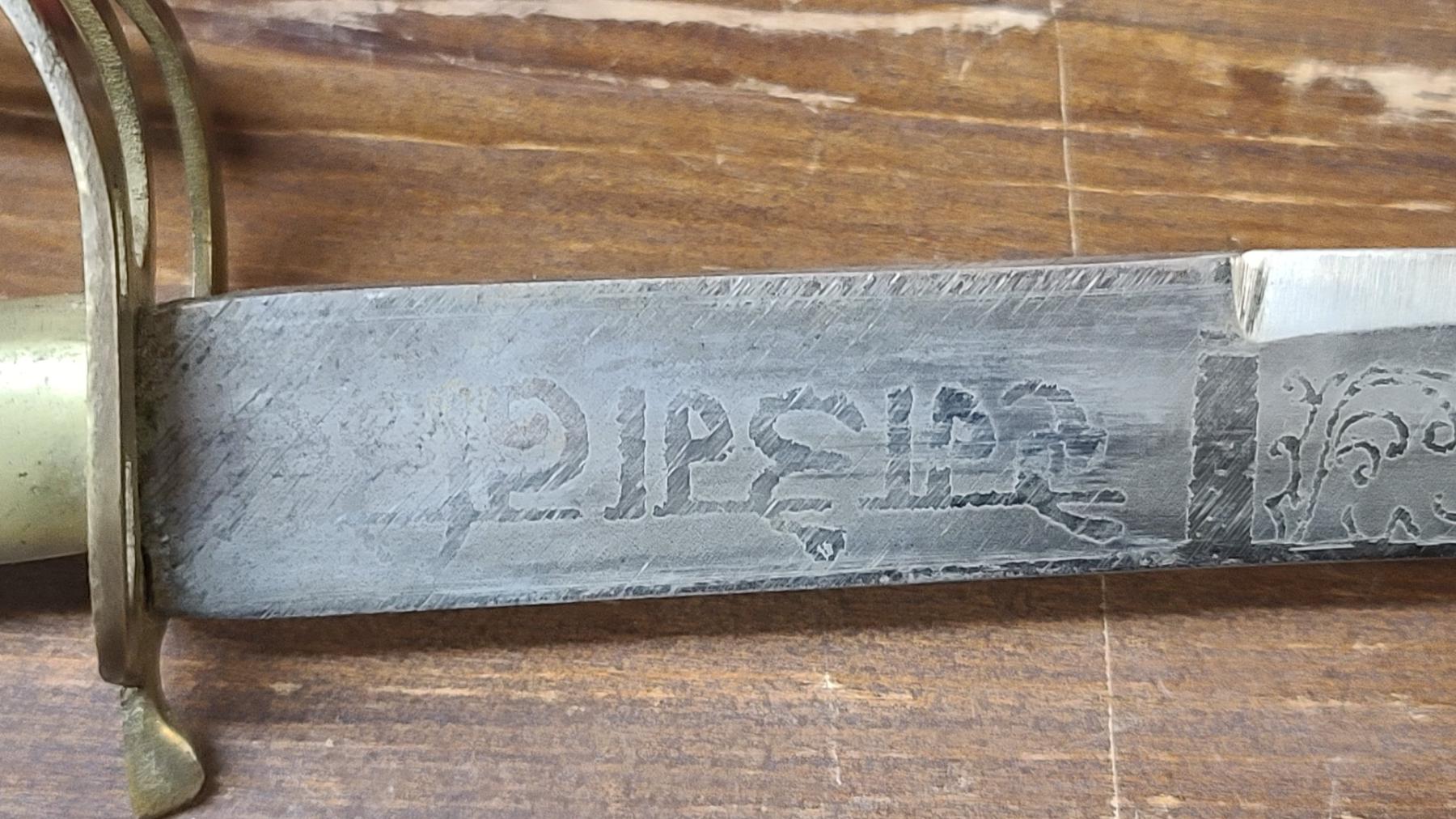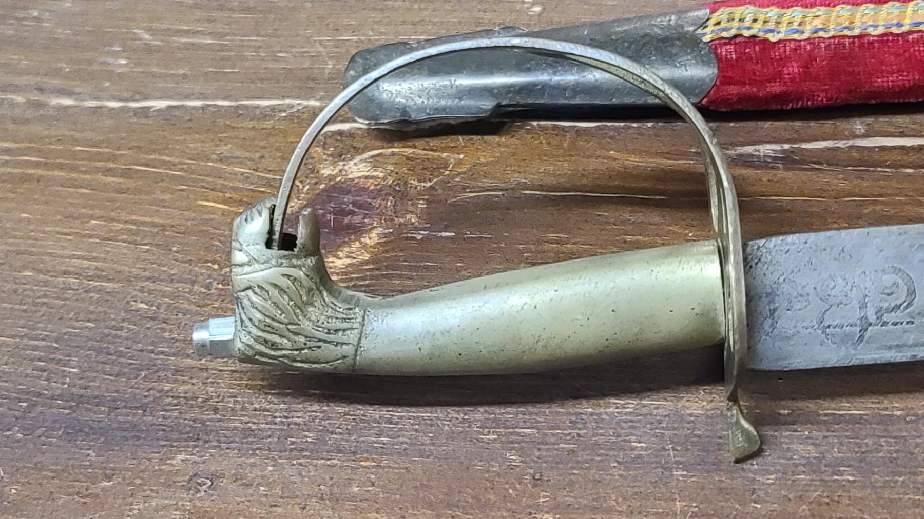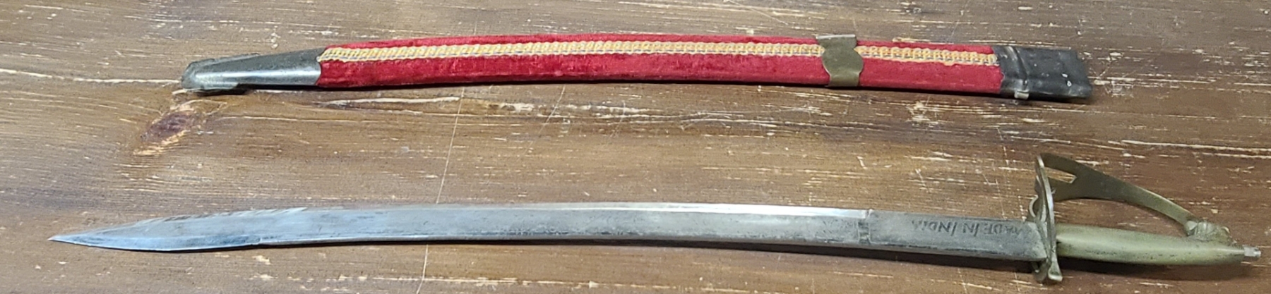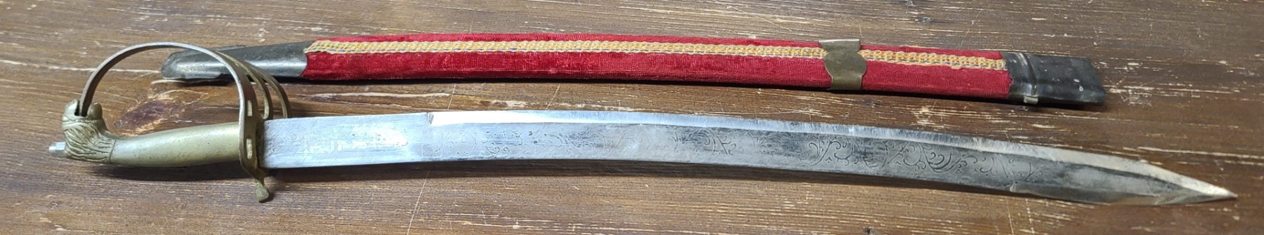 Vintage Sword With 20" Etched Blade With Lion Head Handle & Velvet Sheath