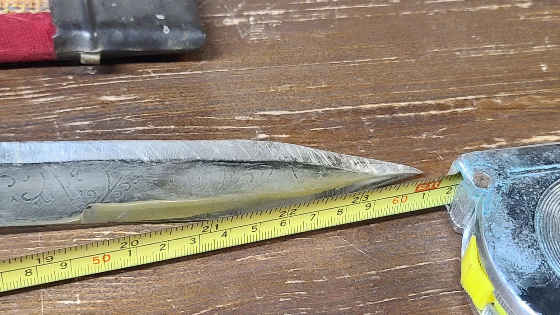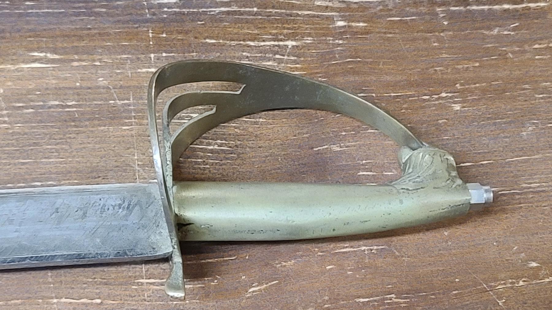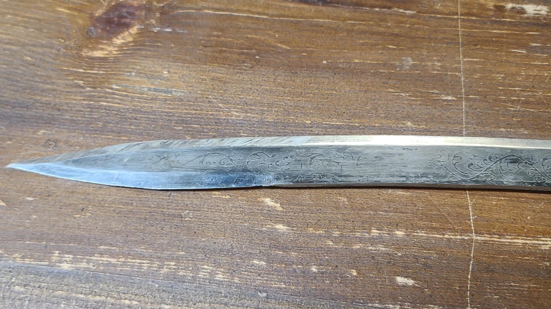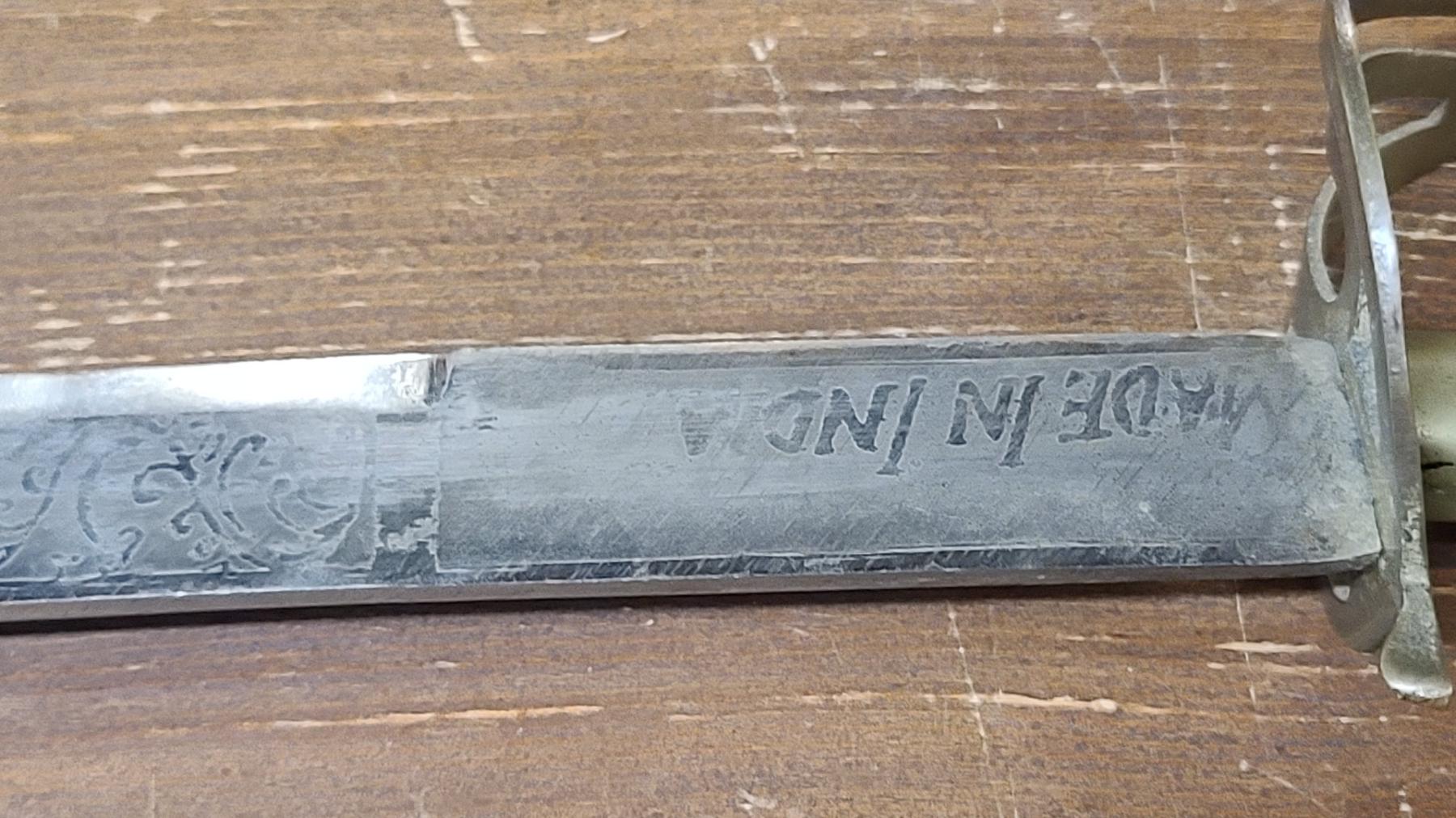 Vintage Sword With 20" Etched Blade With Lion Head Handle & Velvet Sheath