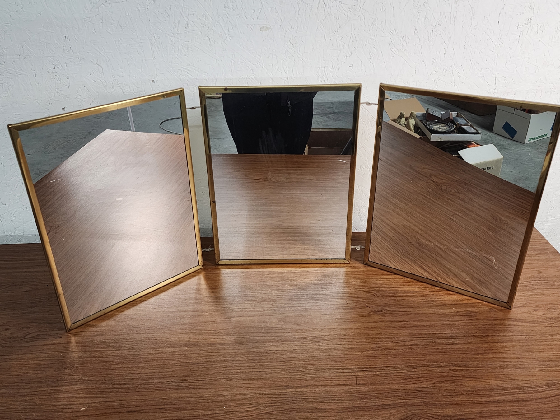 Vintage Tri-Fold Vanity Mirror with Gold-Tone Back - Each Pane is 12x16in