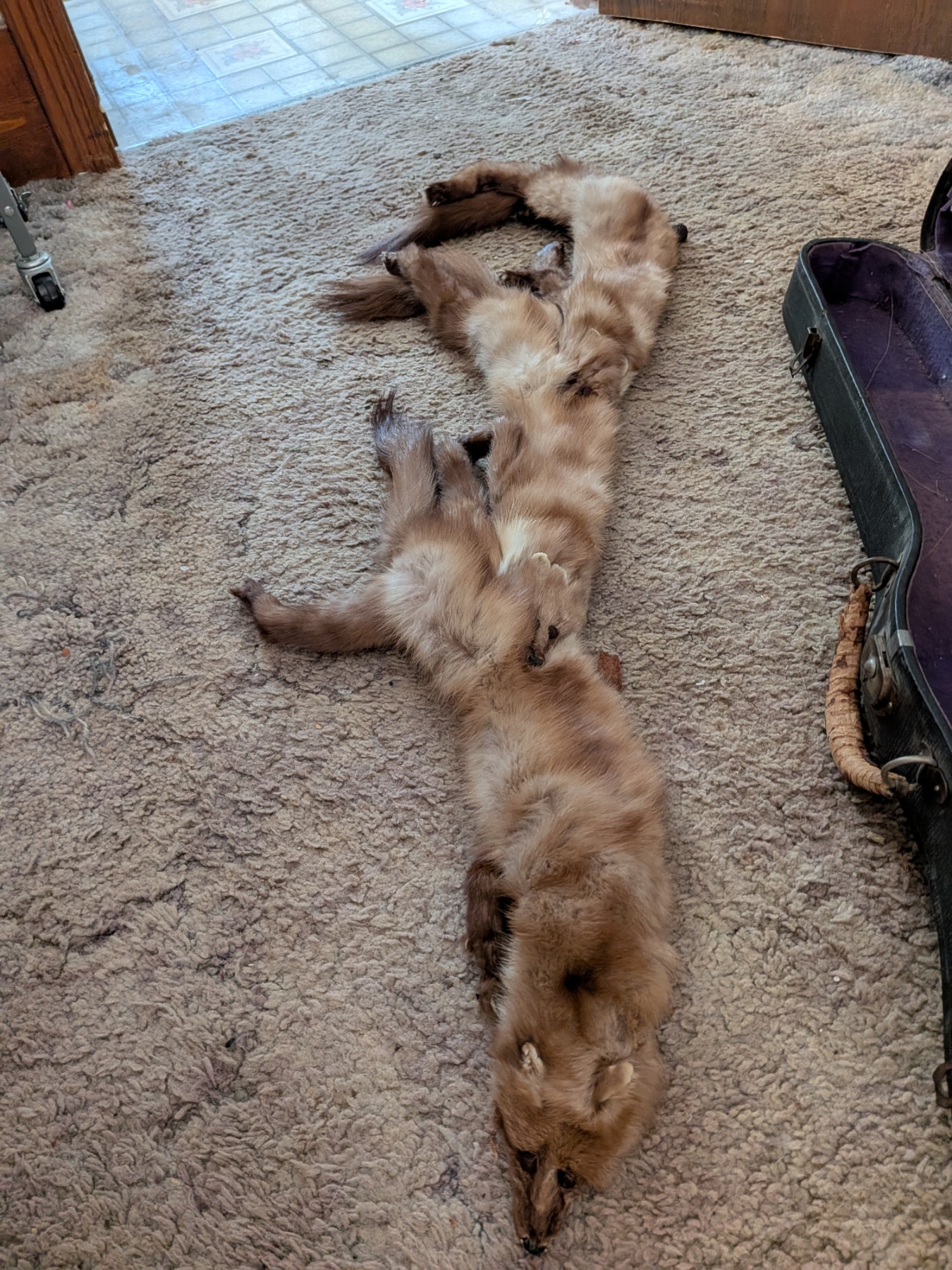 Vintage Violin Case And Fur Hat, Scarf And Handwarmer
