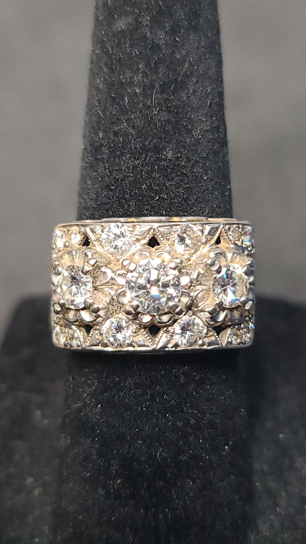 Vintage Womens 14K White Gold Wide Diamond Band Ring - Size: 5 - Weight: 7.5g