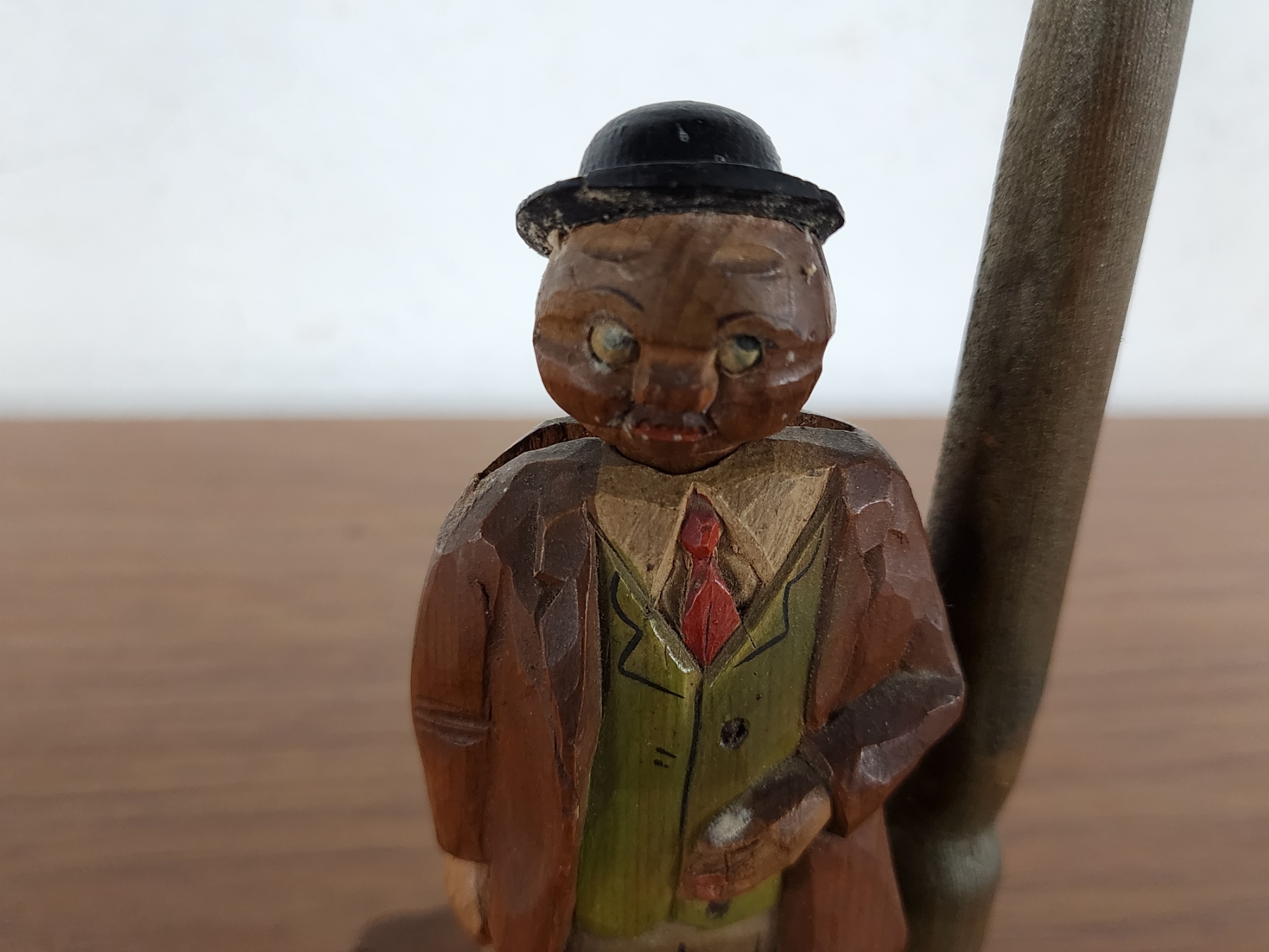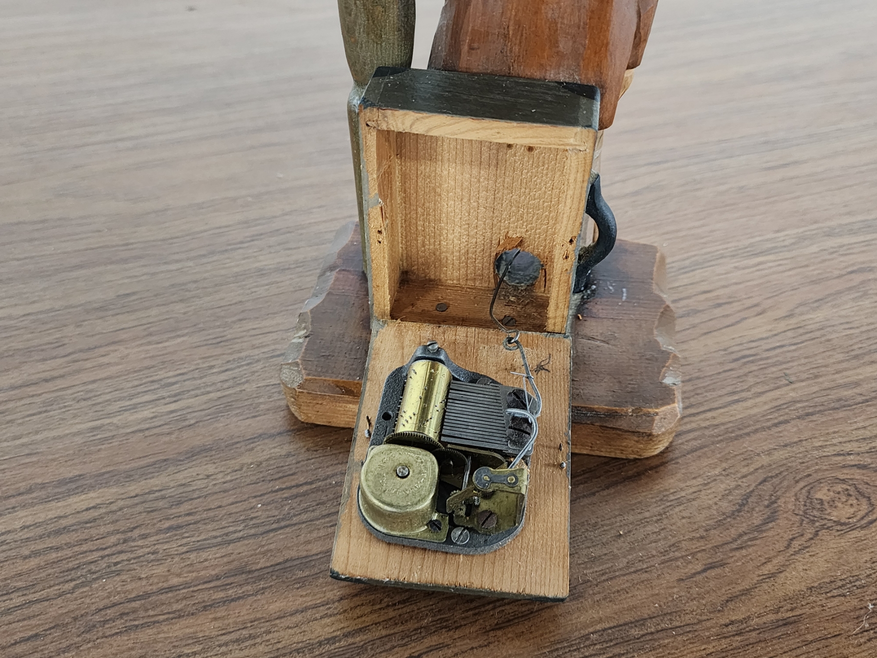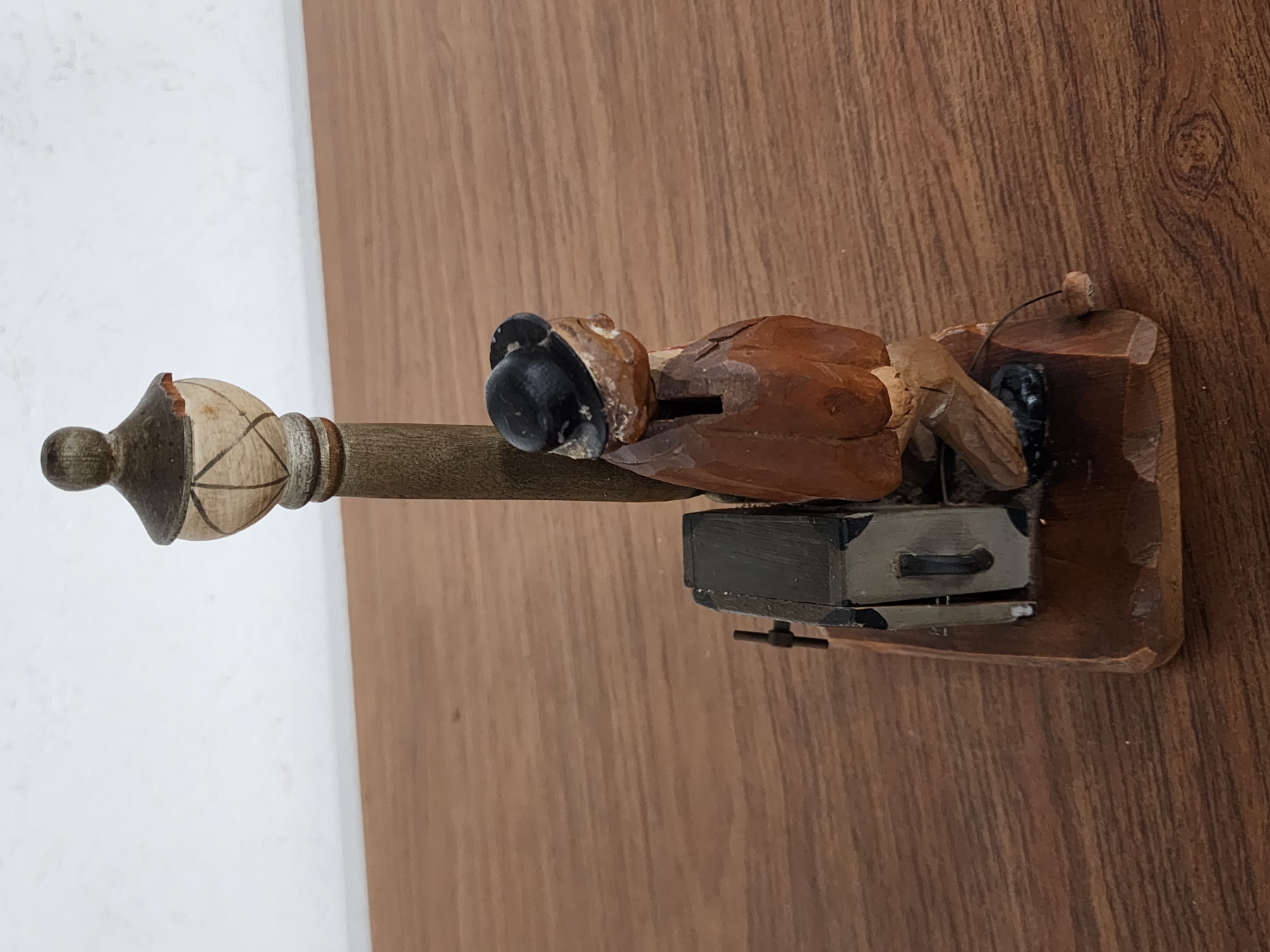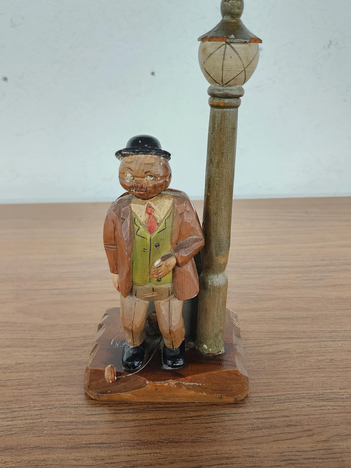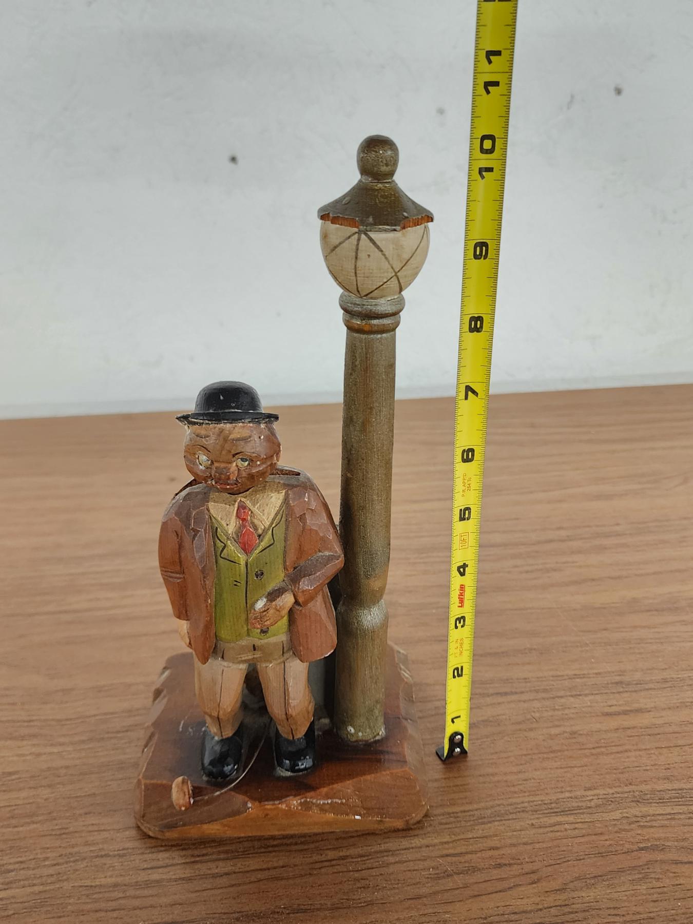 Vintage Wood Carved Man by Lamp Post Working Music Box - 10.5in