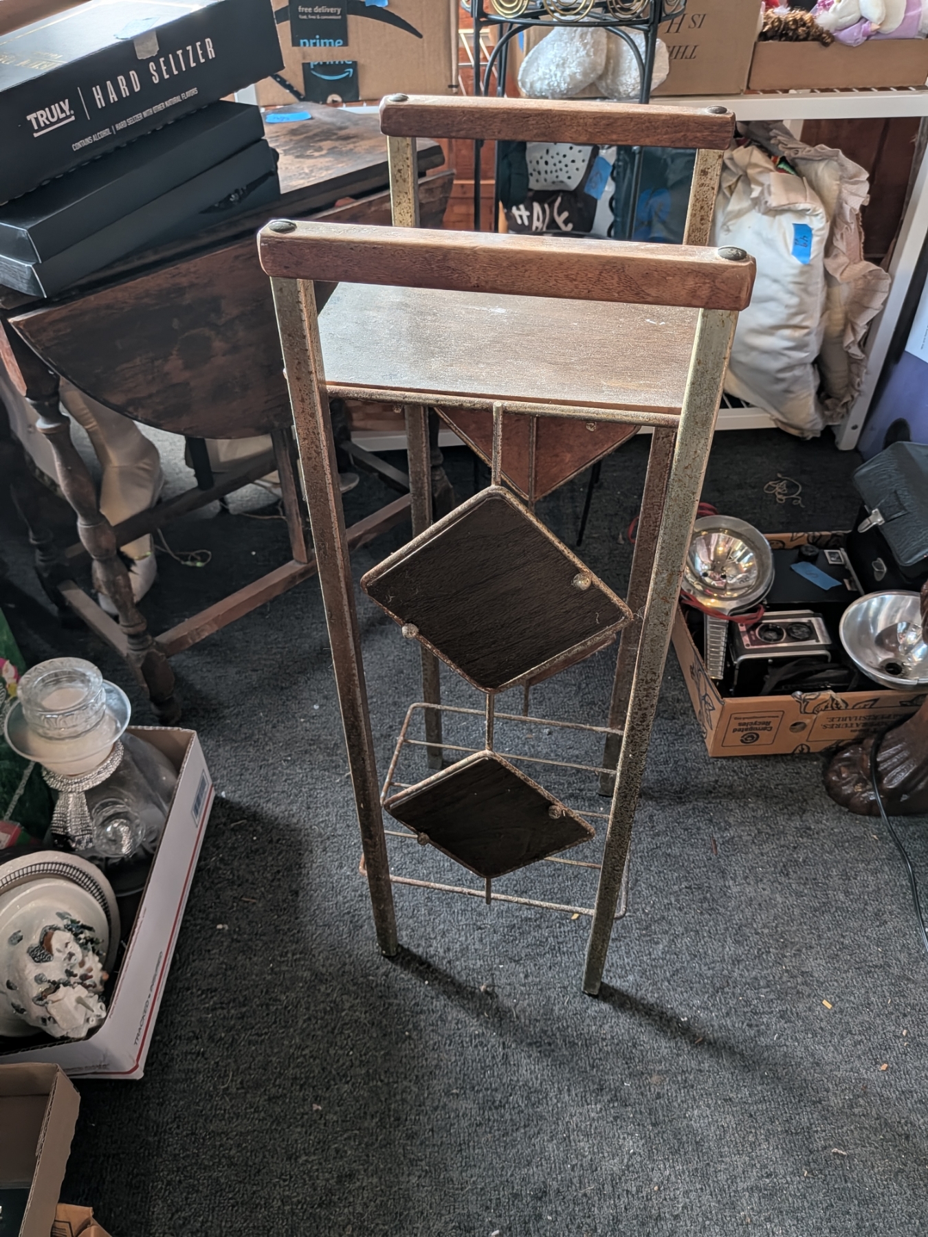 Vintage Wood Look W Metal Plant Stand 10;x26'