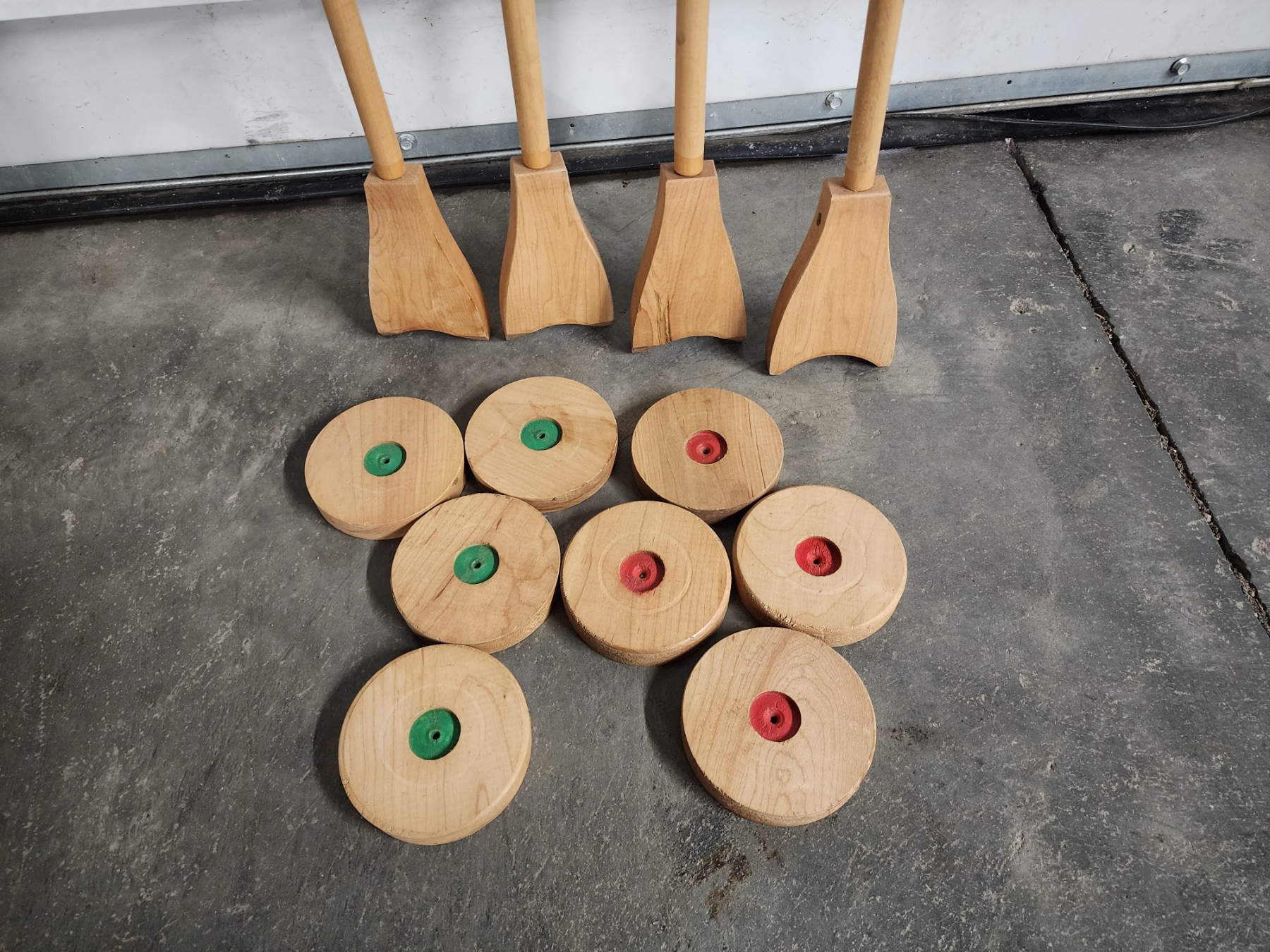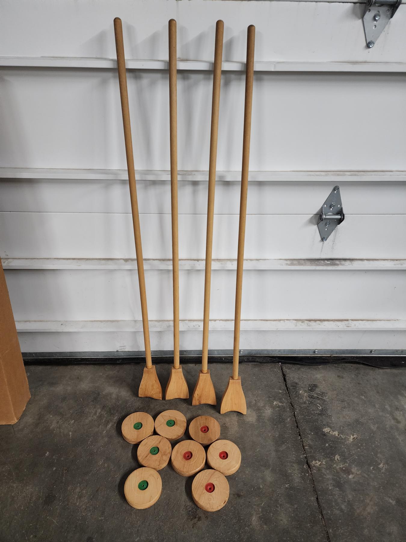Vintage Wooden Shuffleboard Set - Poles are approx. 45in long