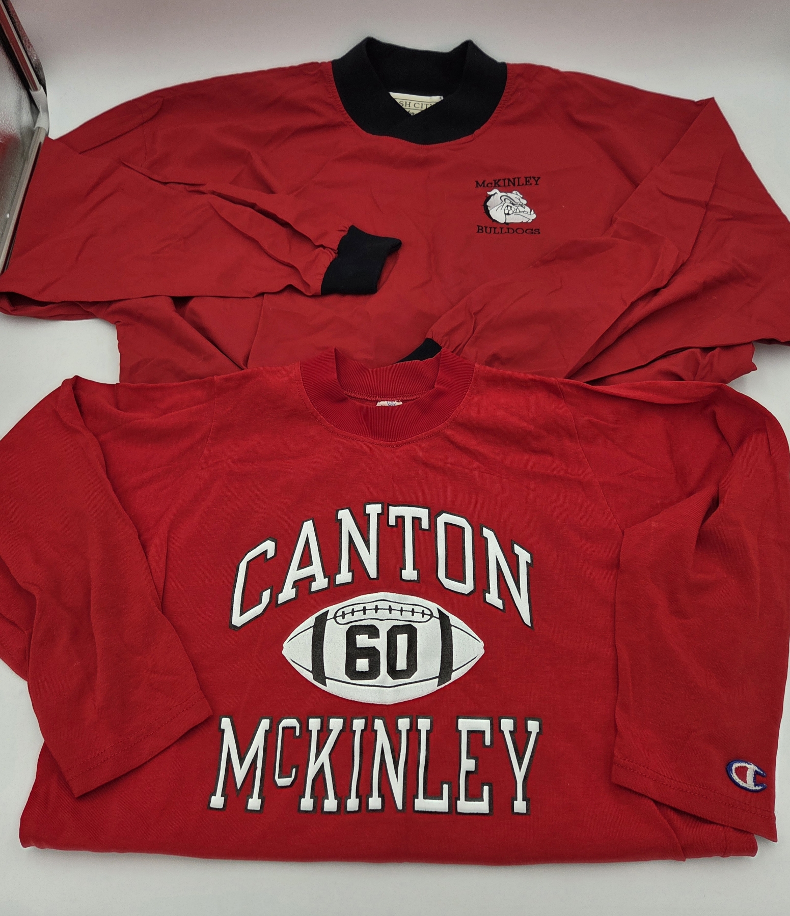 Vintage XL McKinley Bulldogs 3/4 Length Sleeve Heavy Weight Red Shirt And Vintage Large Bulldogs Pullover Jacket