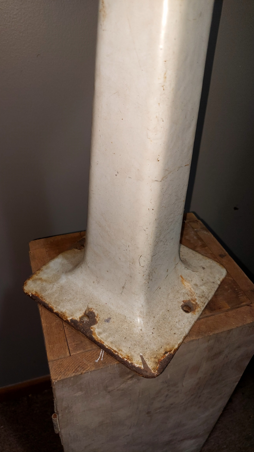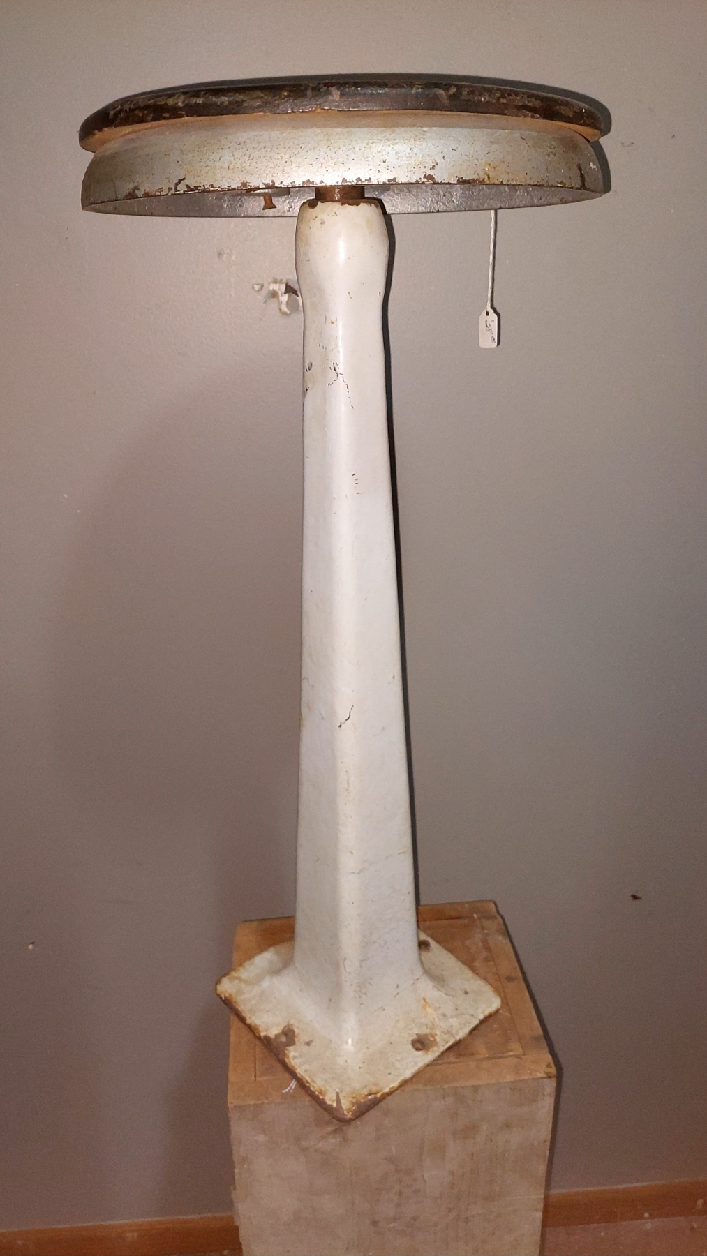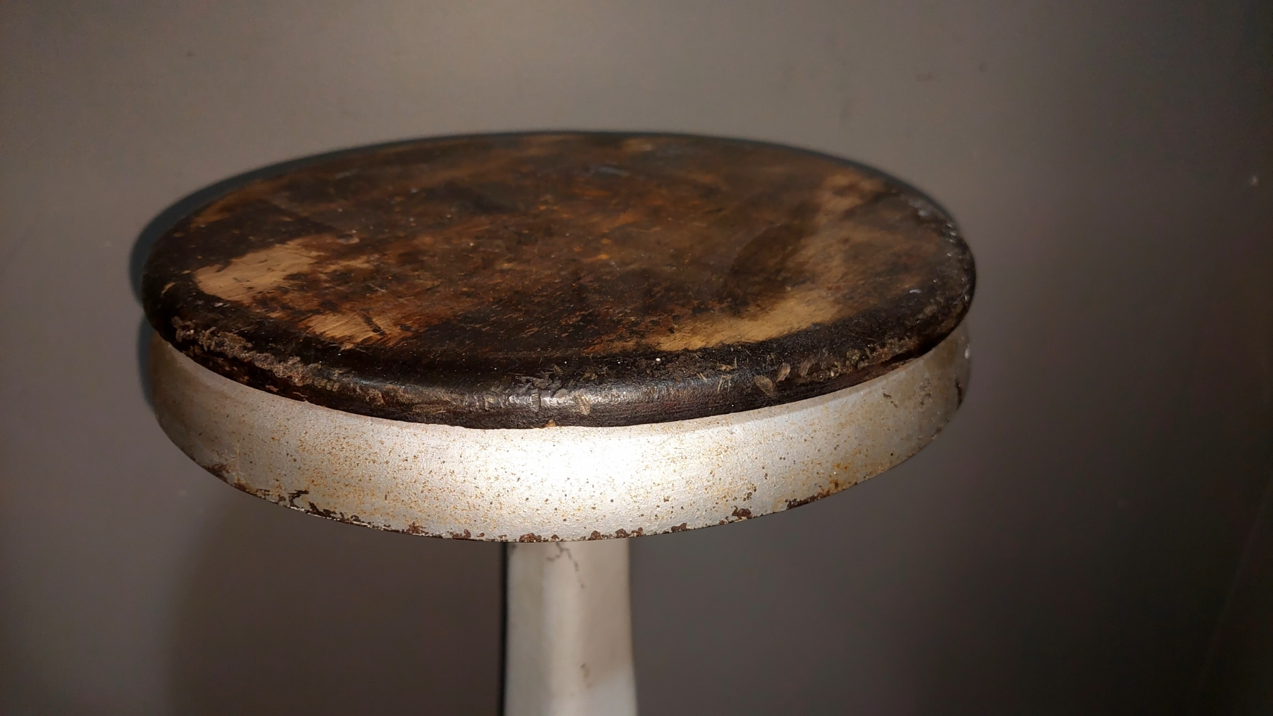 Vintage ca 1940s Cast Iron / Porcelain Enamel Ice Cream Counter Or Bar Stool - Wooden Seat Top 25 Tall - 11.5 Width