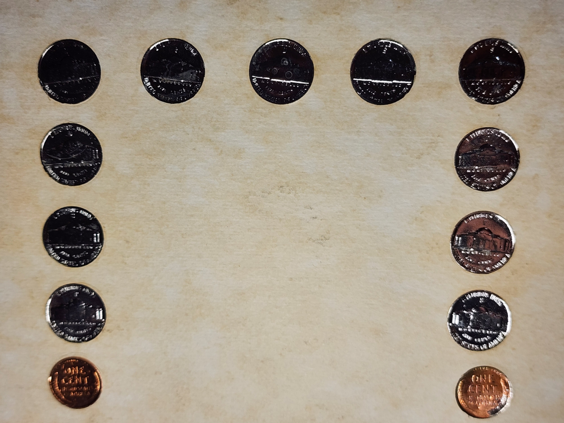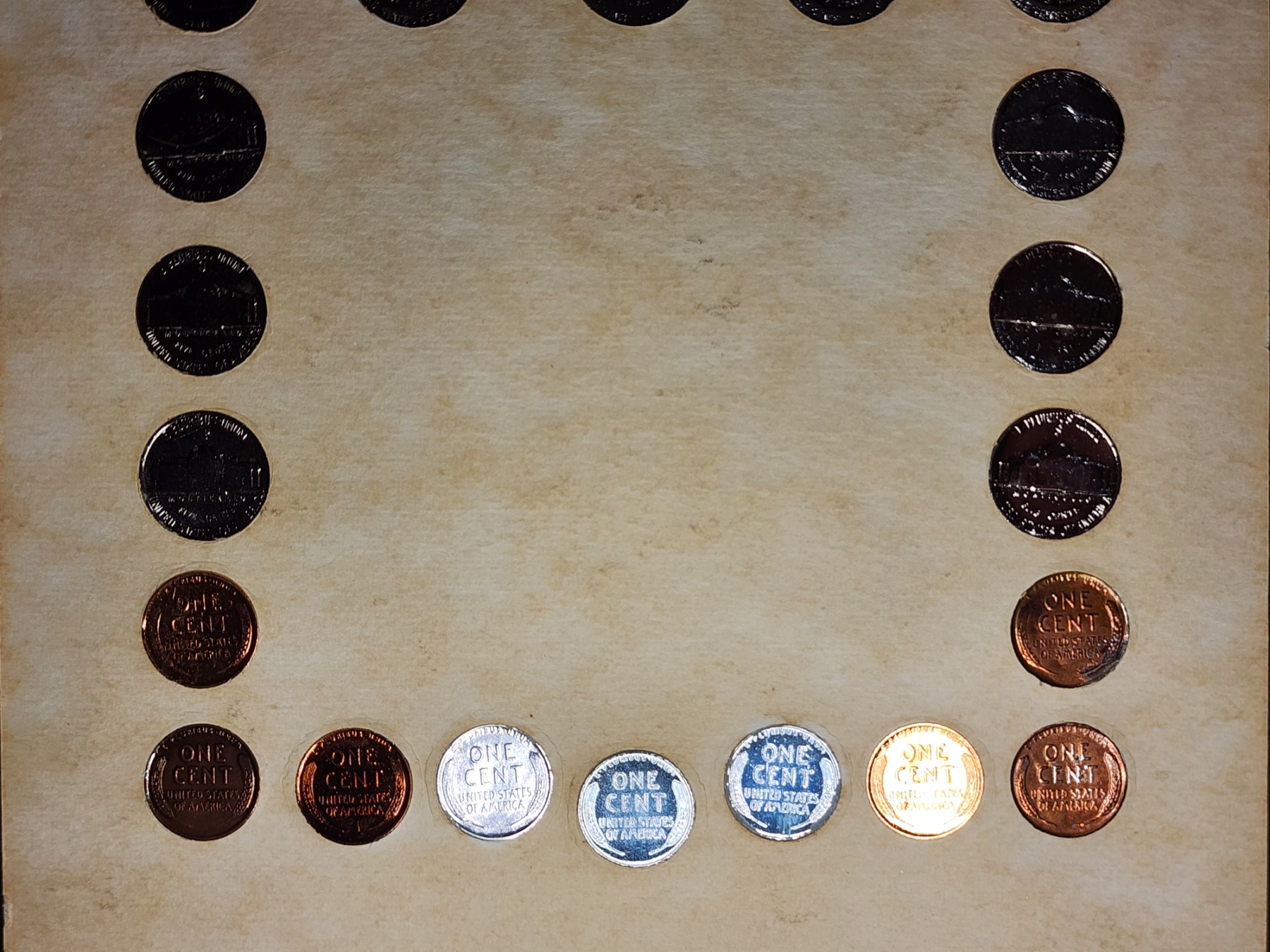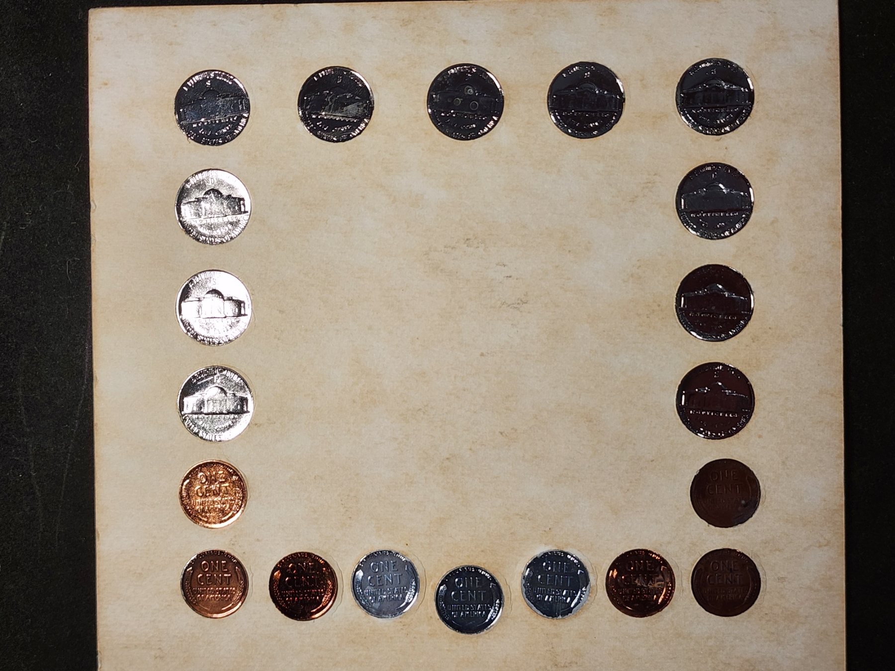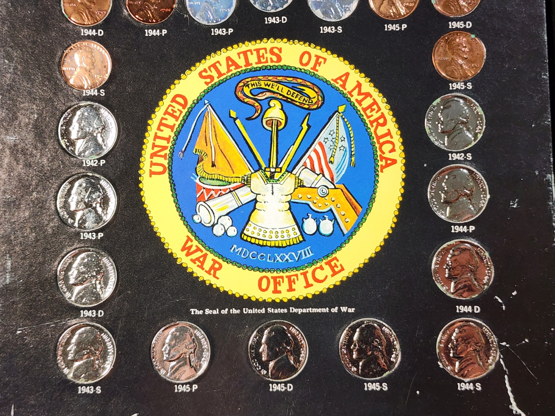 Wartime Coinage Display Ft. Wheat & Steel Pennies Along With Silver Wartime Nickels - Total Face Value = $0.64