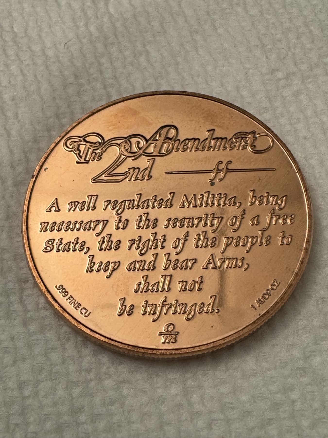"We The People" 2nd Amendment .999 Fine Copper Troy Ounce Coin - Mint Condition