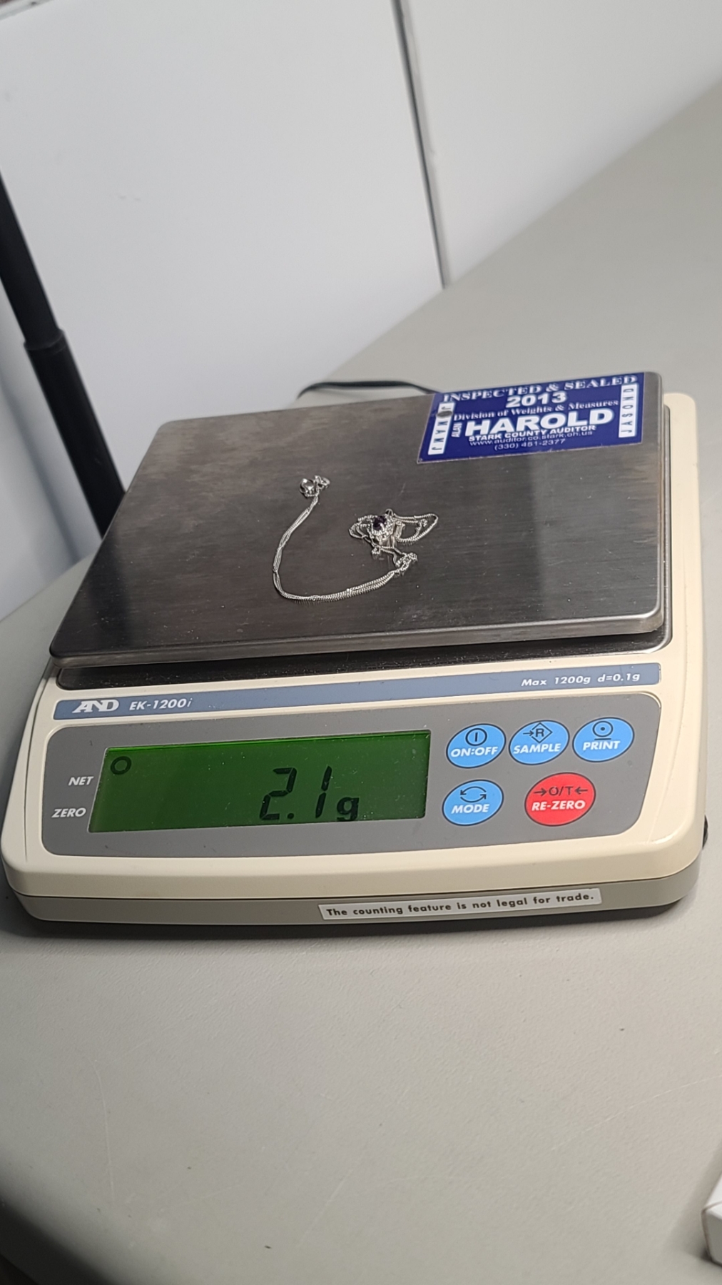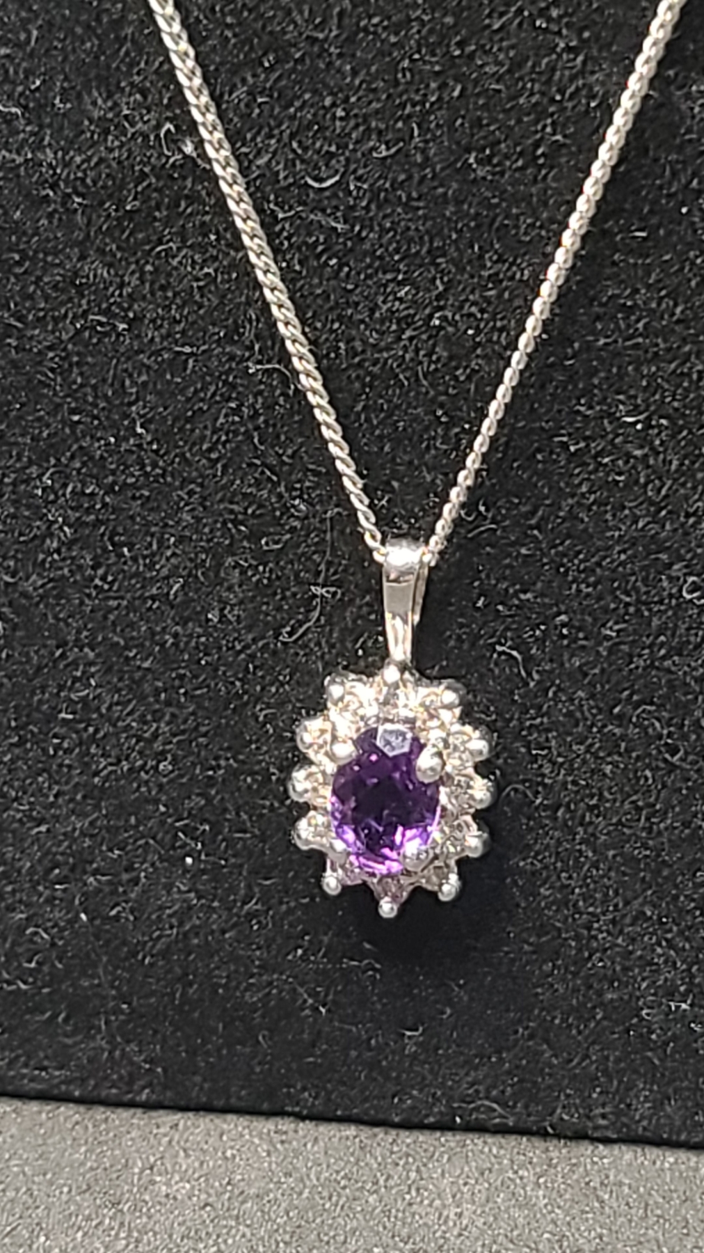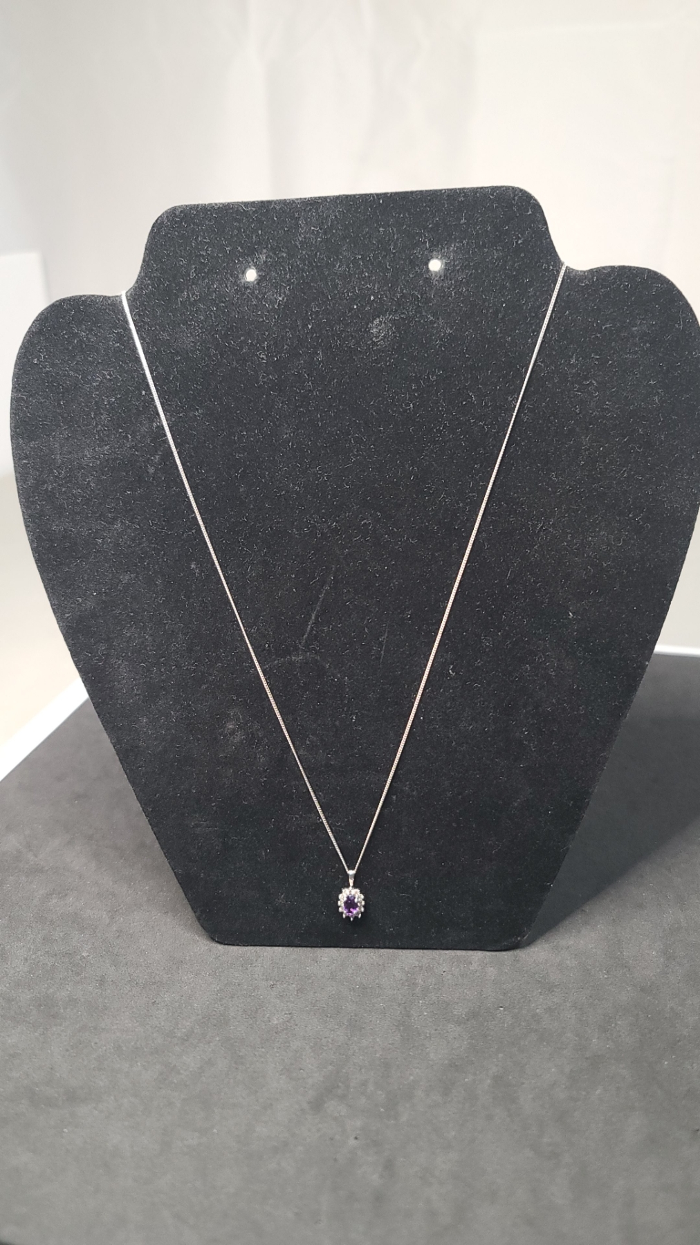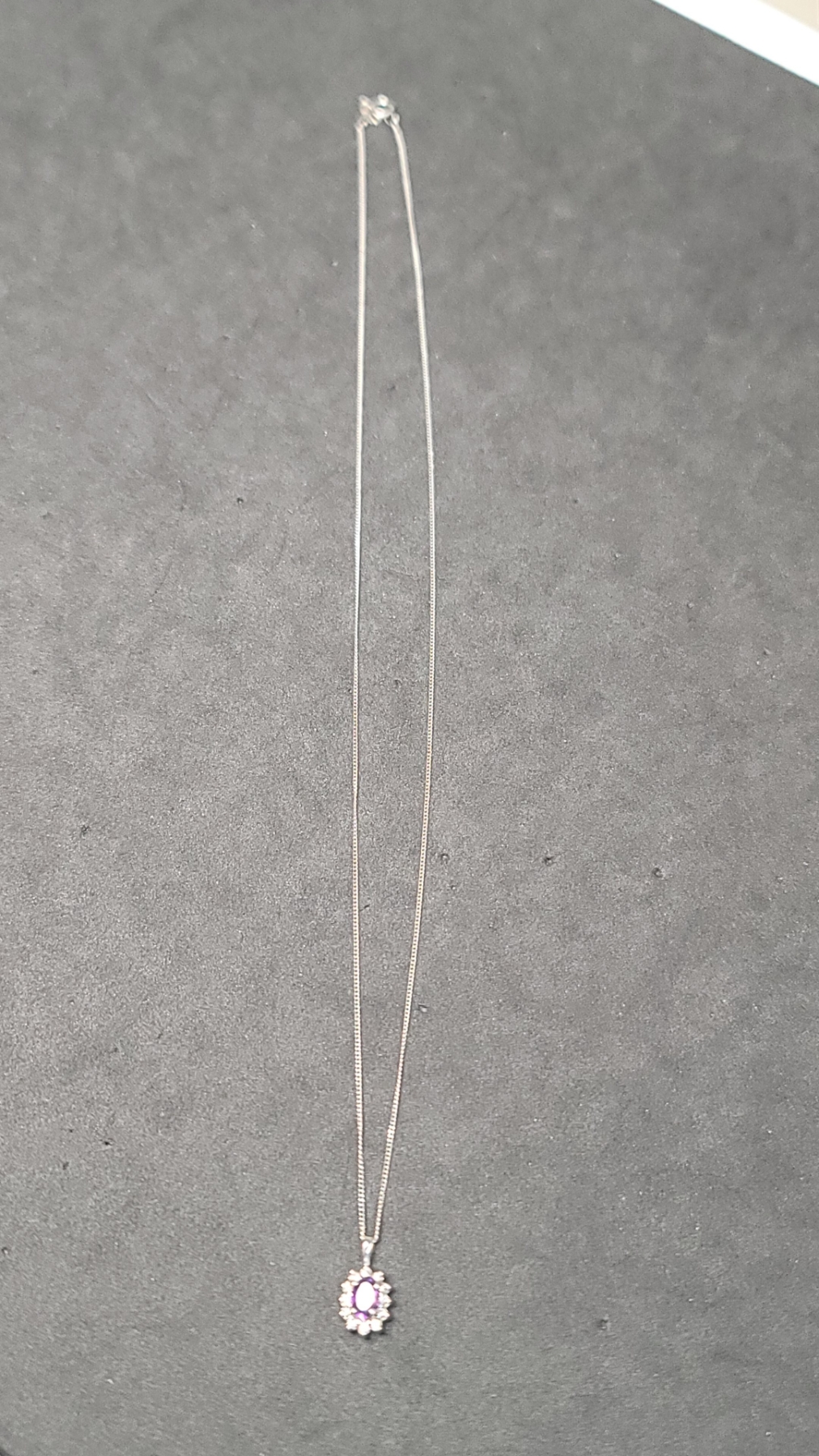 Women's 10K White Gold Necklace With Clear & Purple Stones - Weight: 2.1g