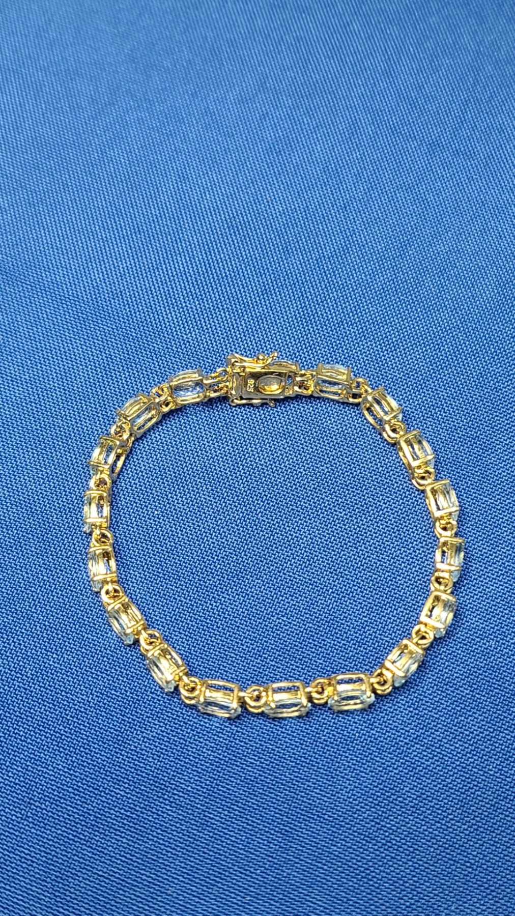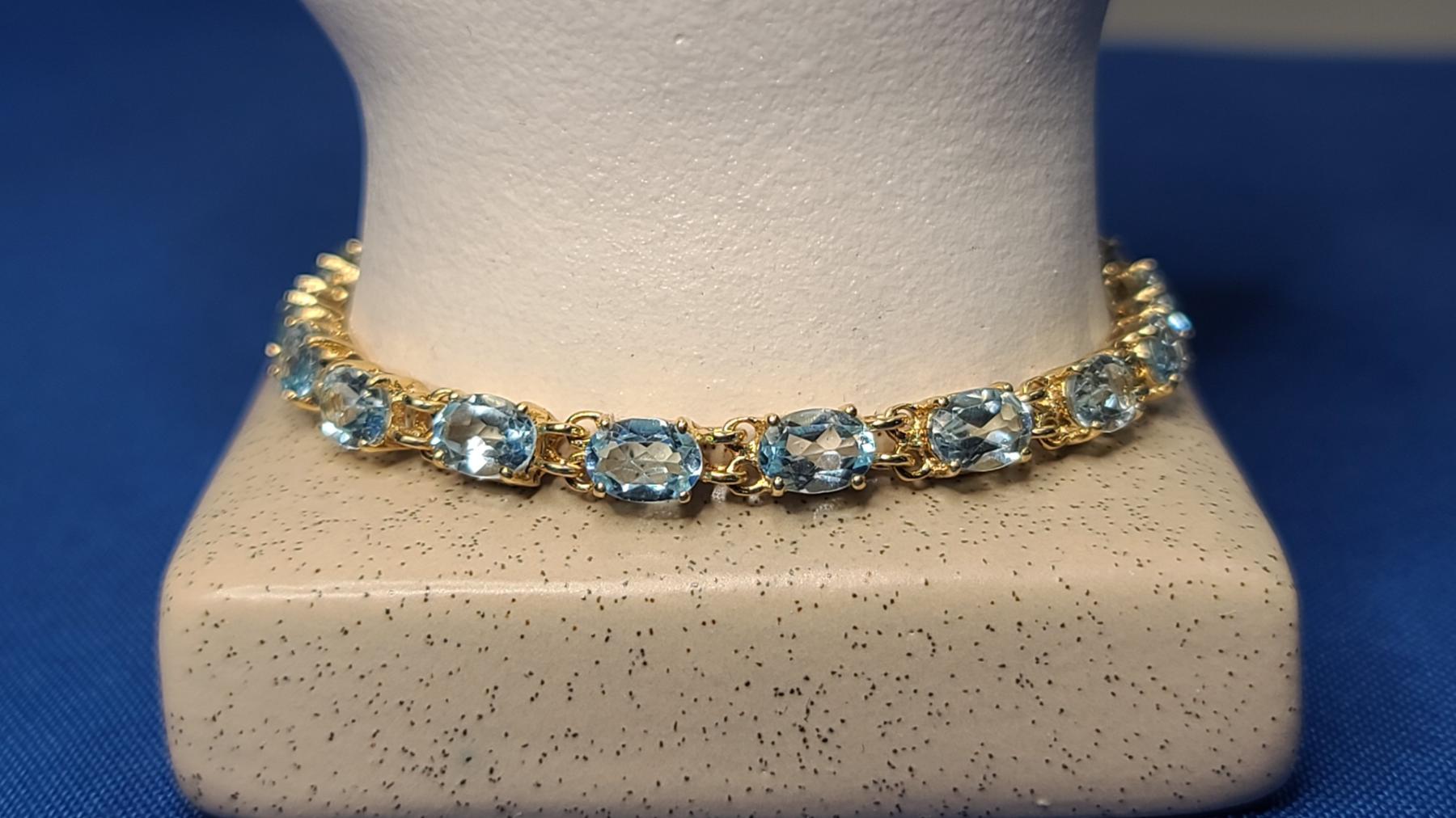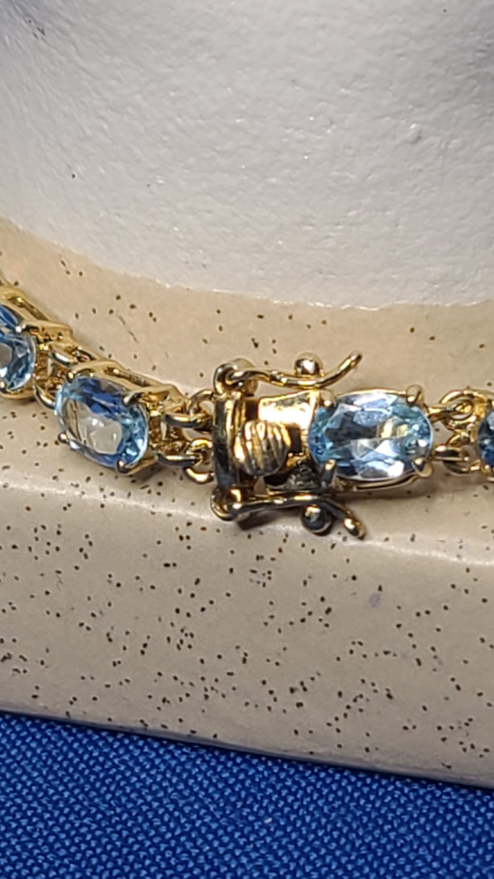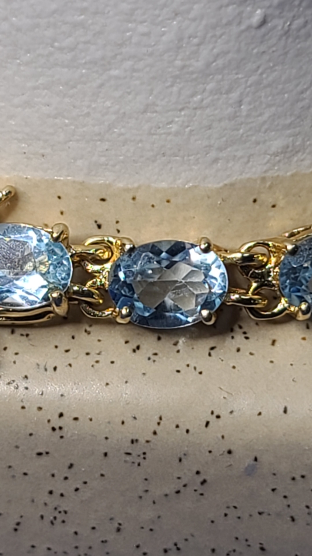 Women's Sterling Silver Bracelet With Blue Oval Stones - Total Weight: 12.2g
