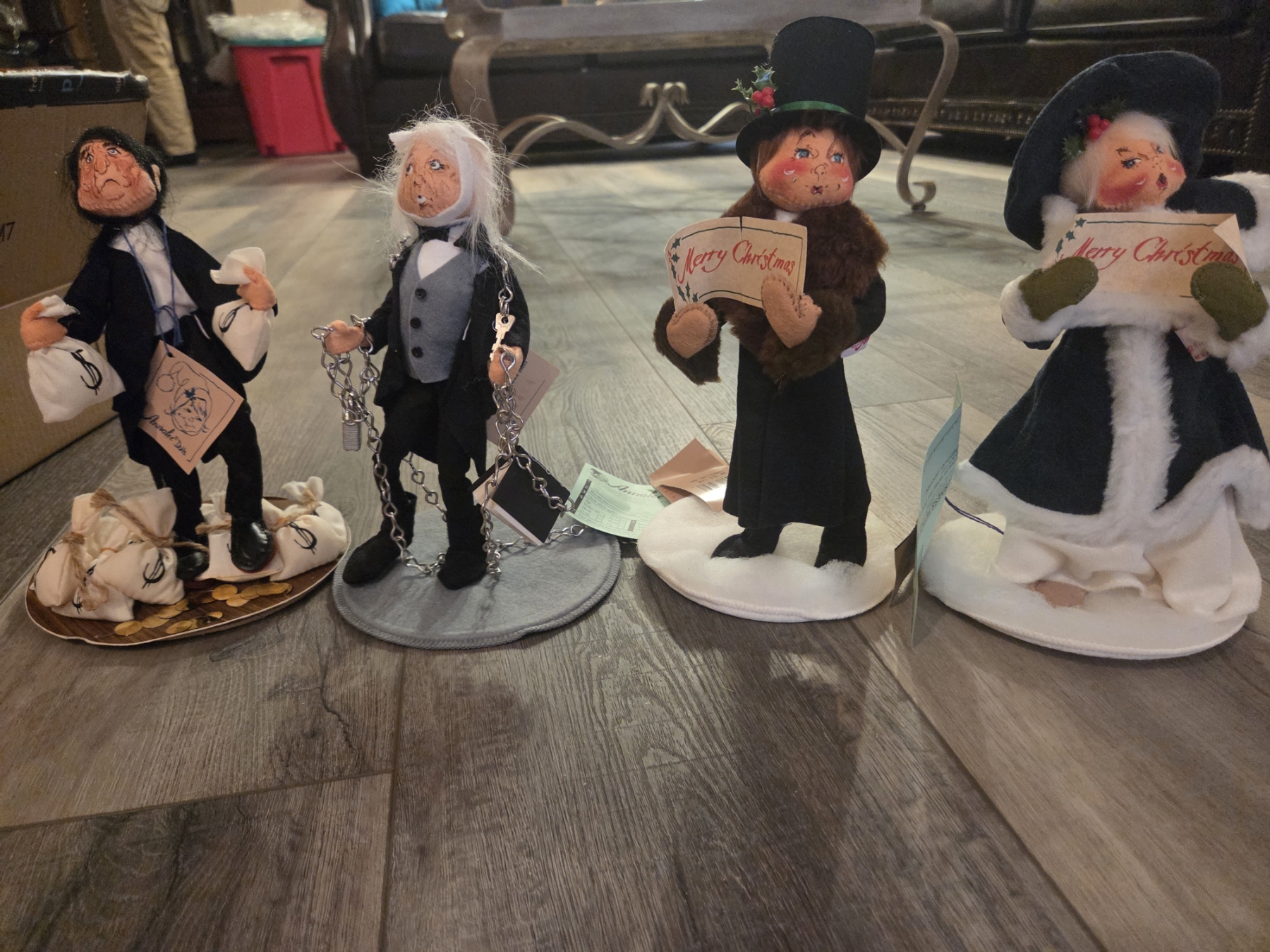 Wonderful Opportunity To Have A Great Collection Of Rare Famous Annalee Felt Dolls. Including Scrooge, Carolers, Santa & More!