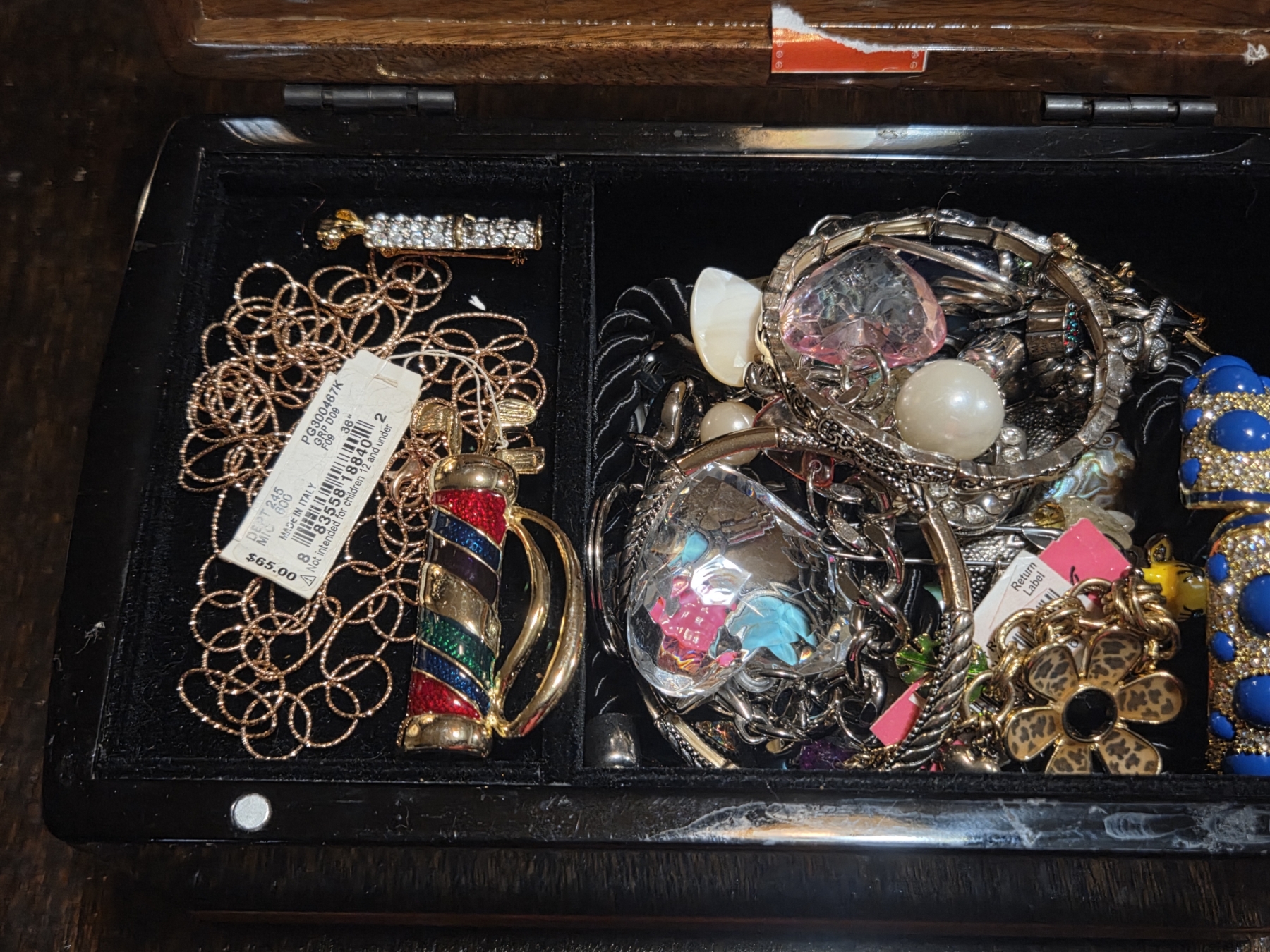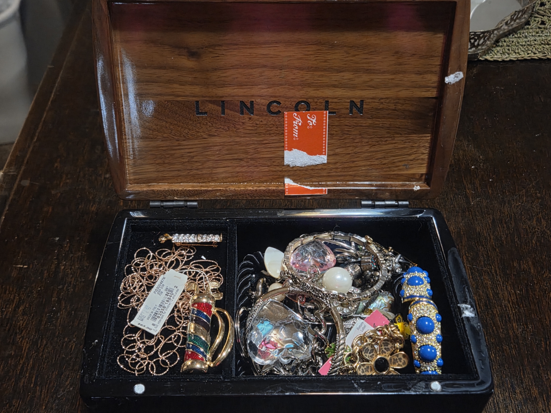 Wooden Box Of Nicer Costume Jewelry