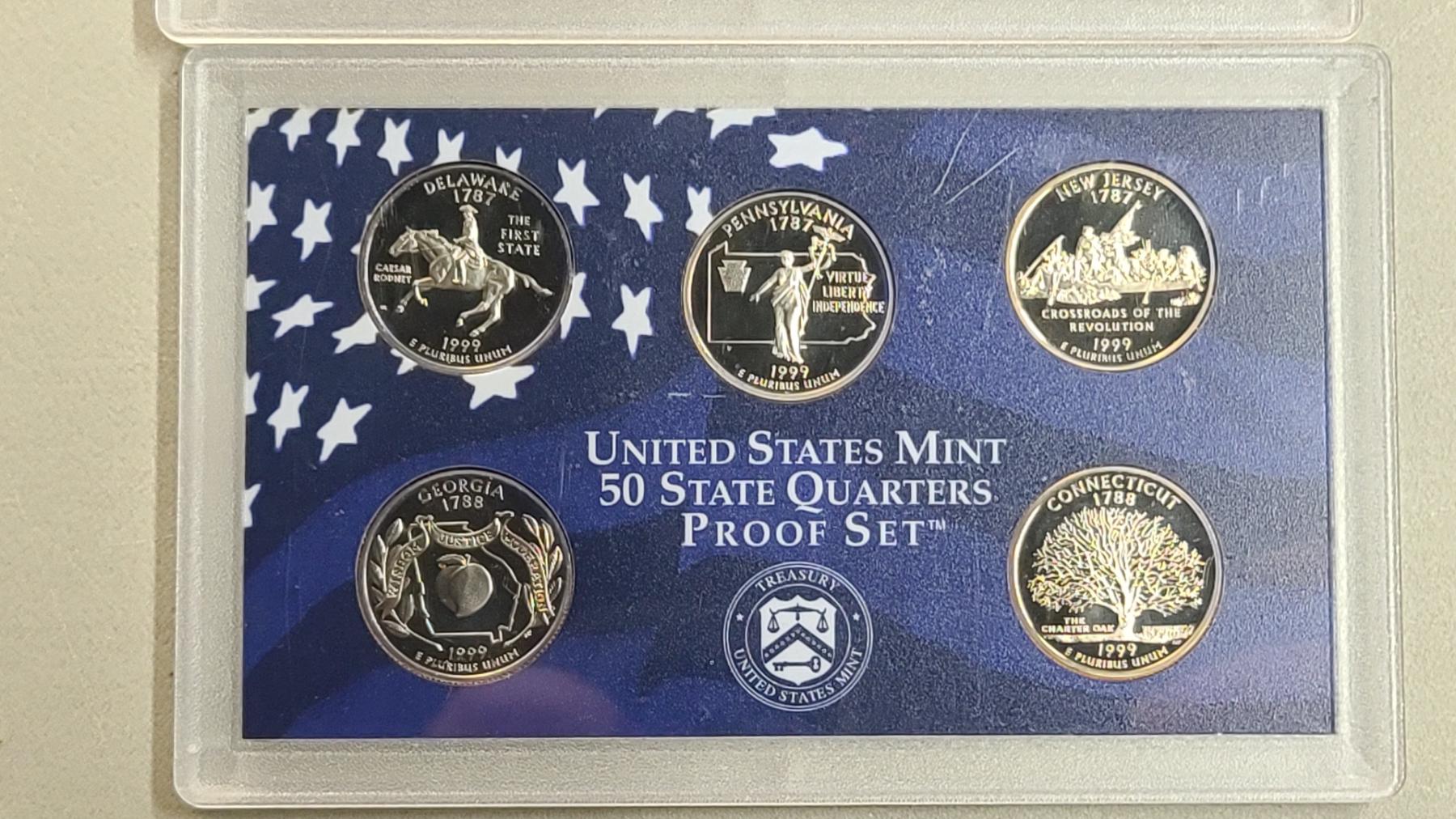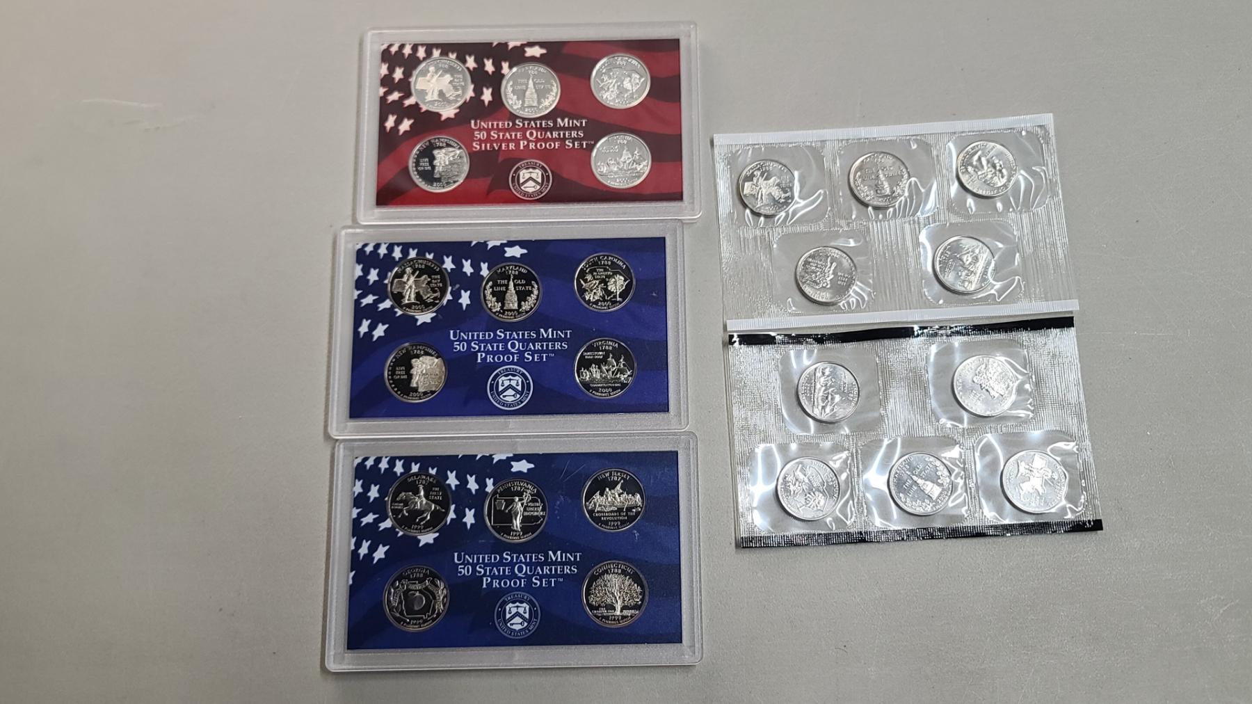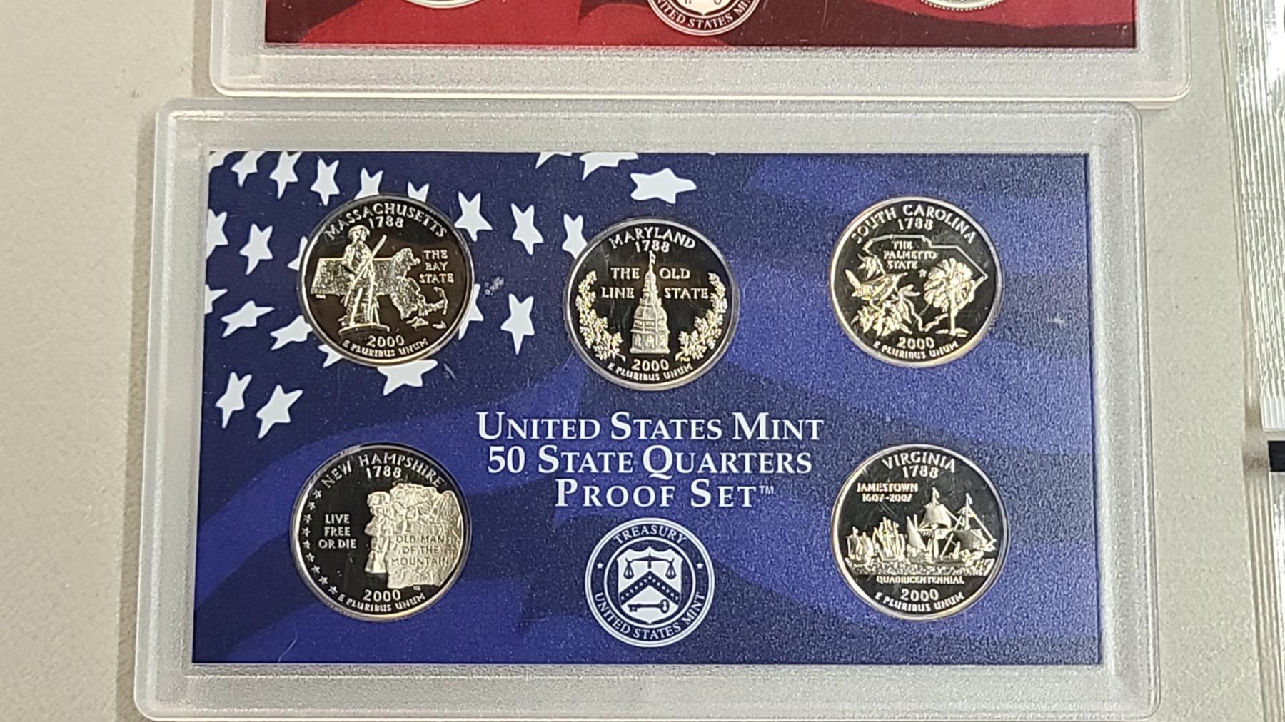 Years 1999, 2000 U.S Mint 50 State Quarters Proof Sets & (2) Year 2000 Uncirculated U.S Mint Coin Sets