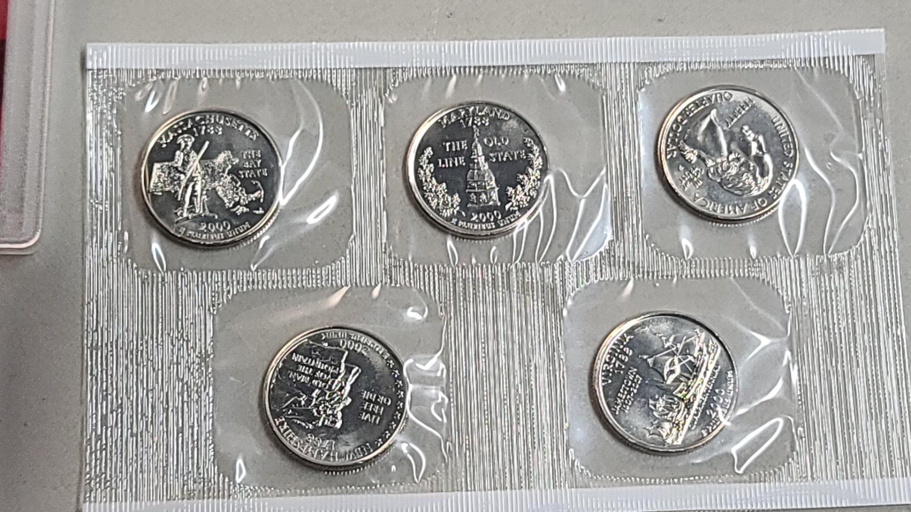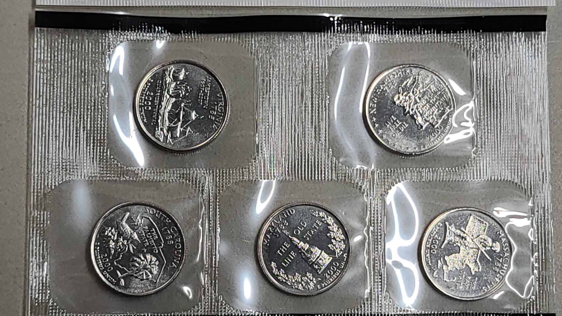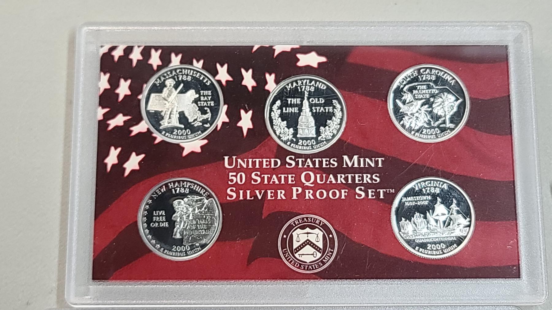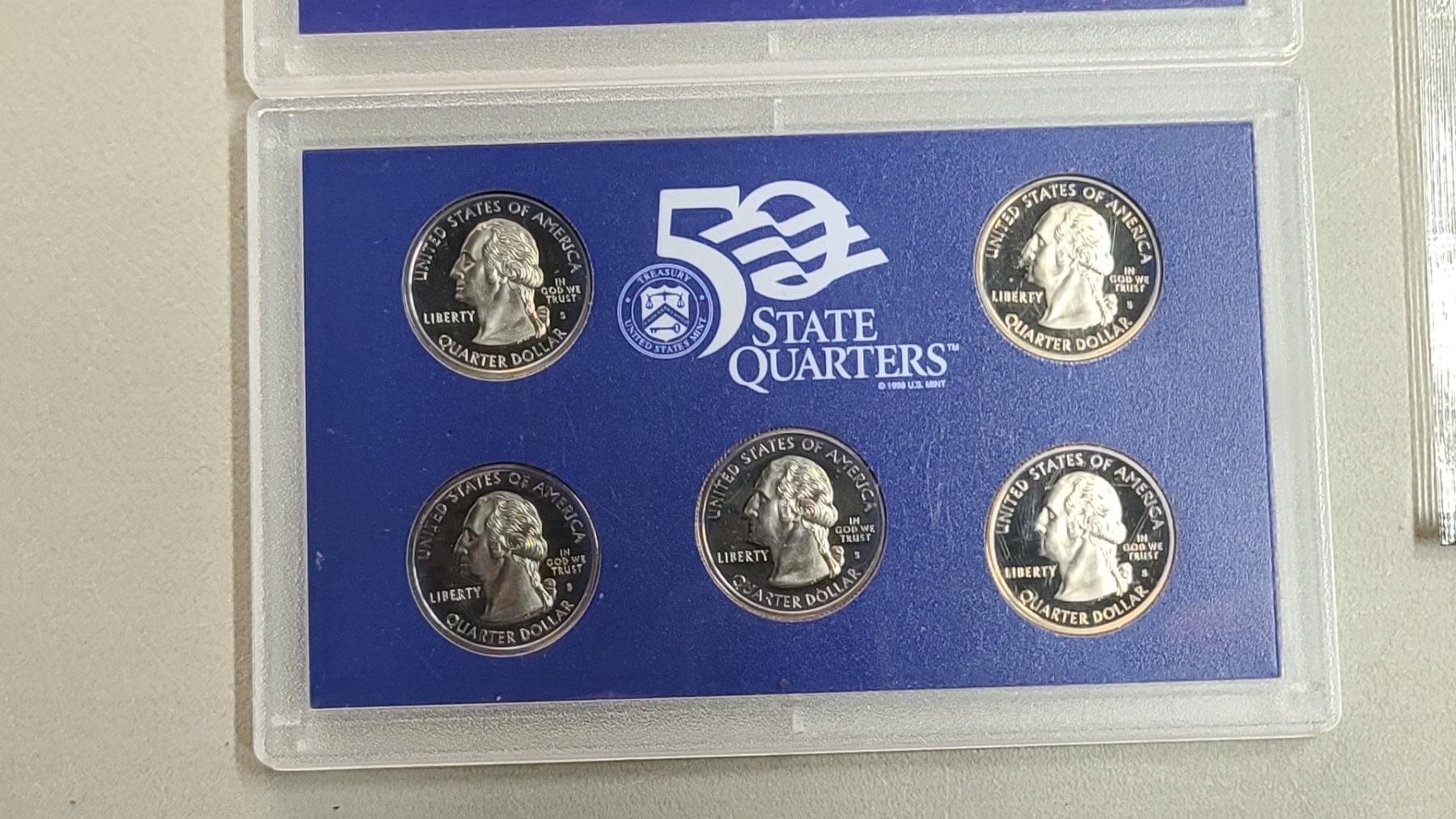 Years 1999, 2000 U.S Mint 50 State Quarters Proof Sets & (2) Year 2000 Uncirculated U.S Mint Coin Sets