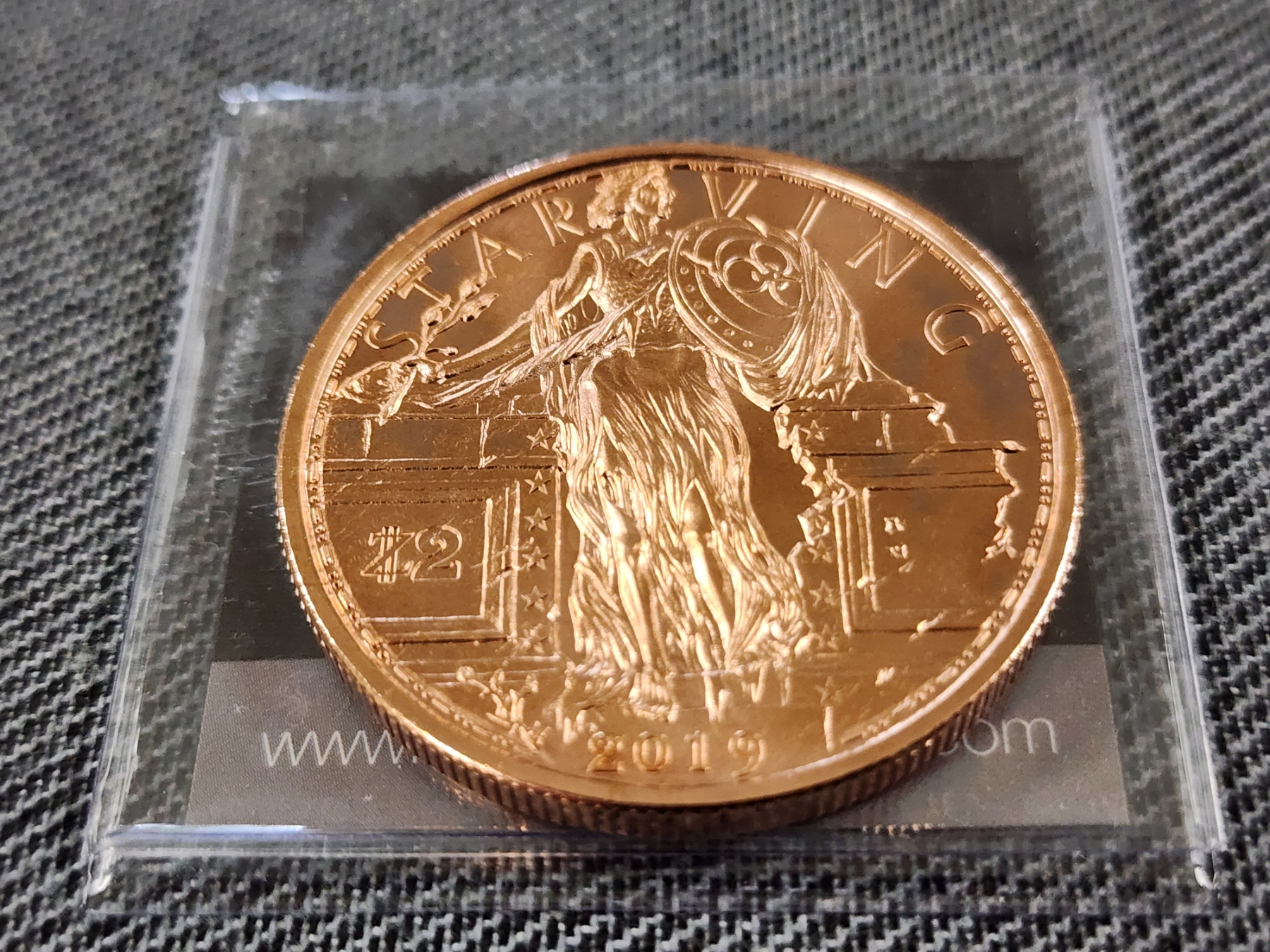 Zombucks 1 ADVP oz .999 Fine Copper Round - 2019 Starving Liberty