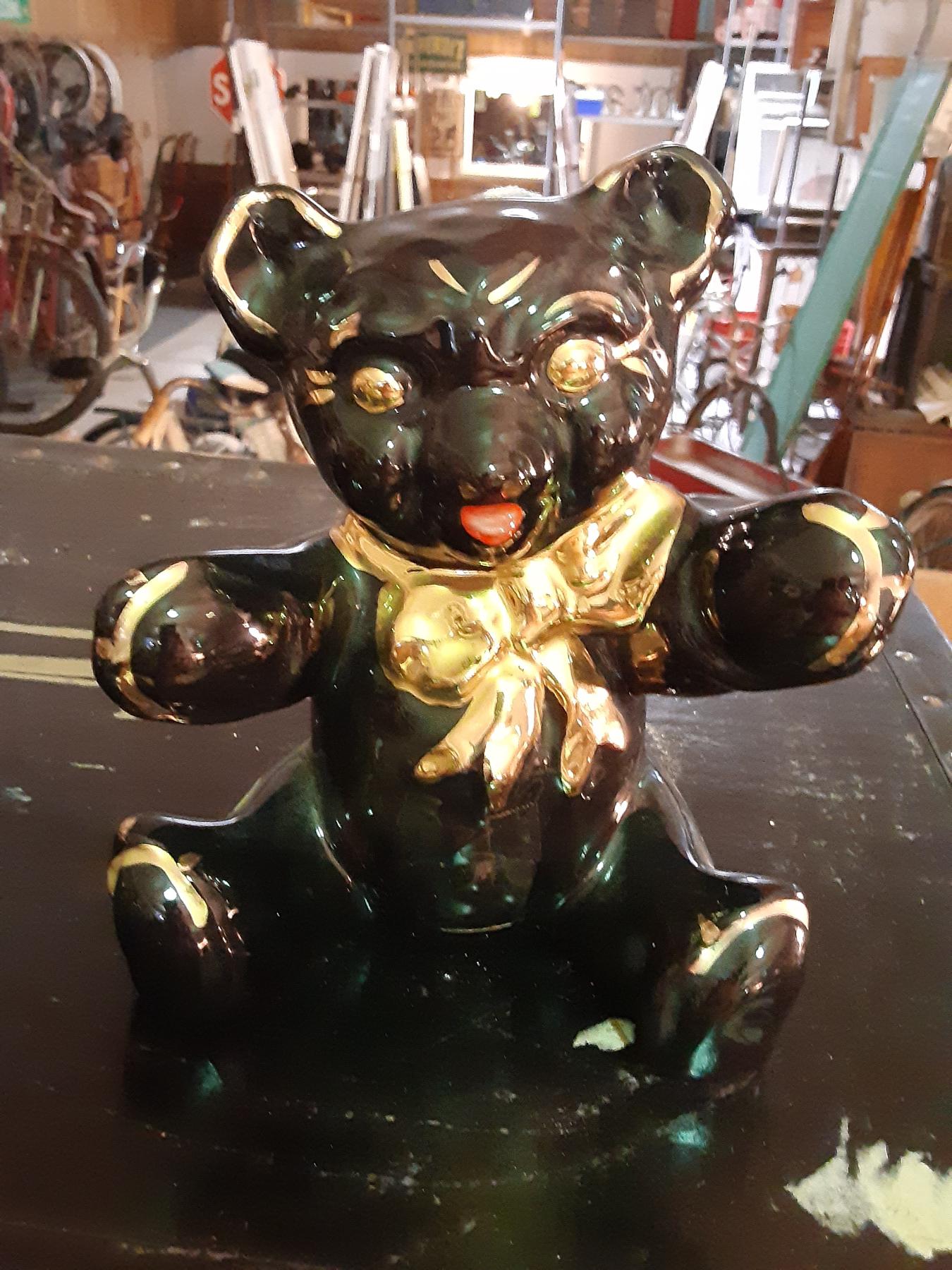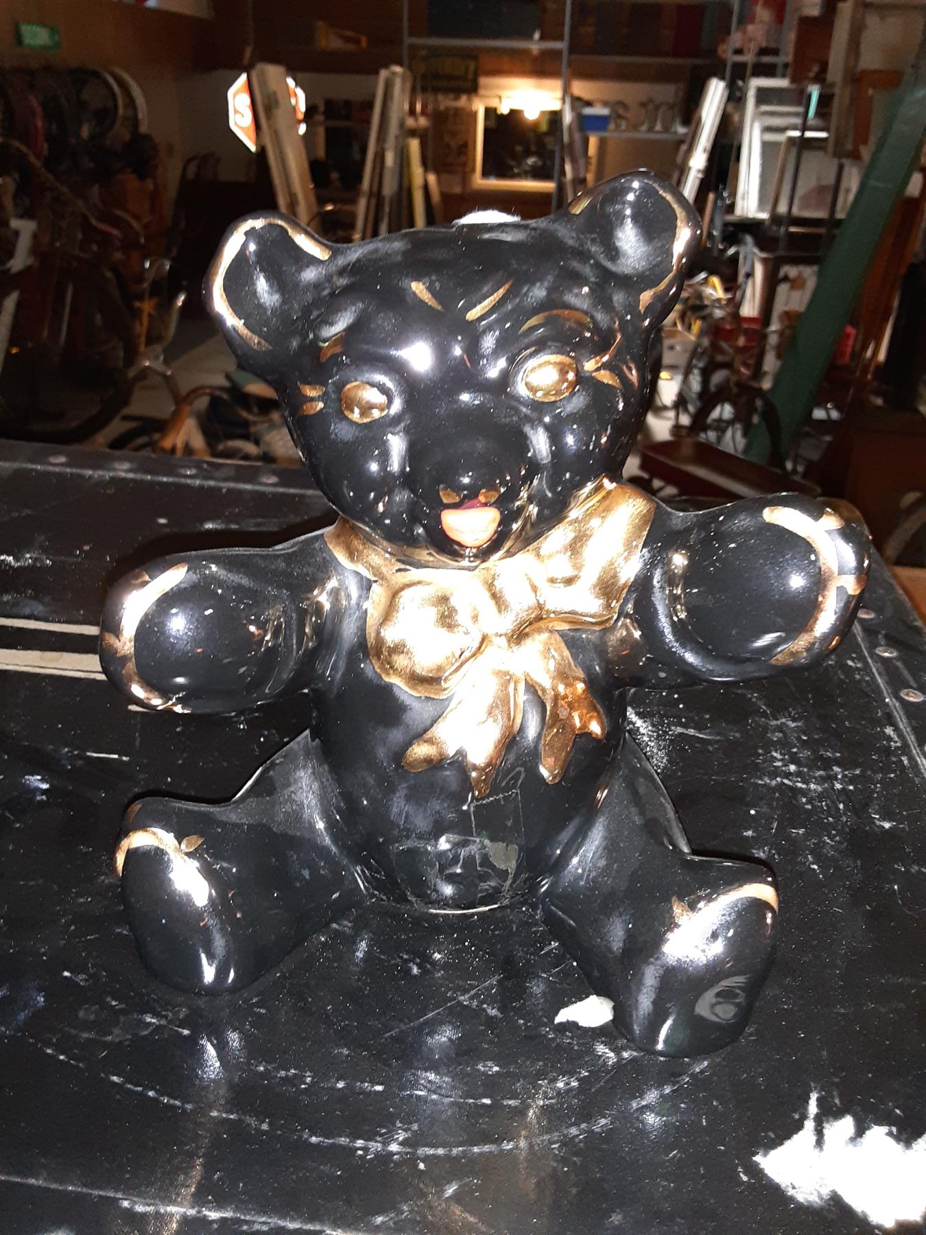 ca 1950s - Gold & Black Enameled Bear figure 8" Tall