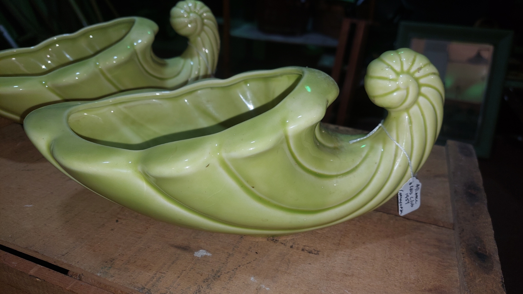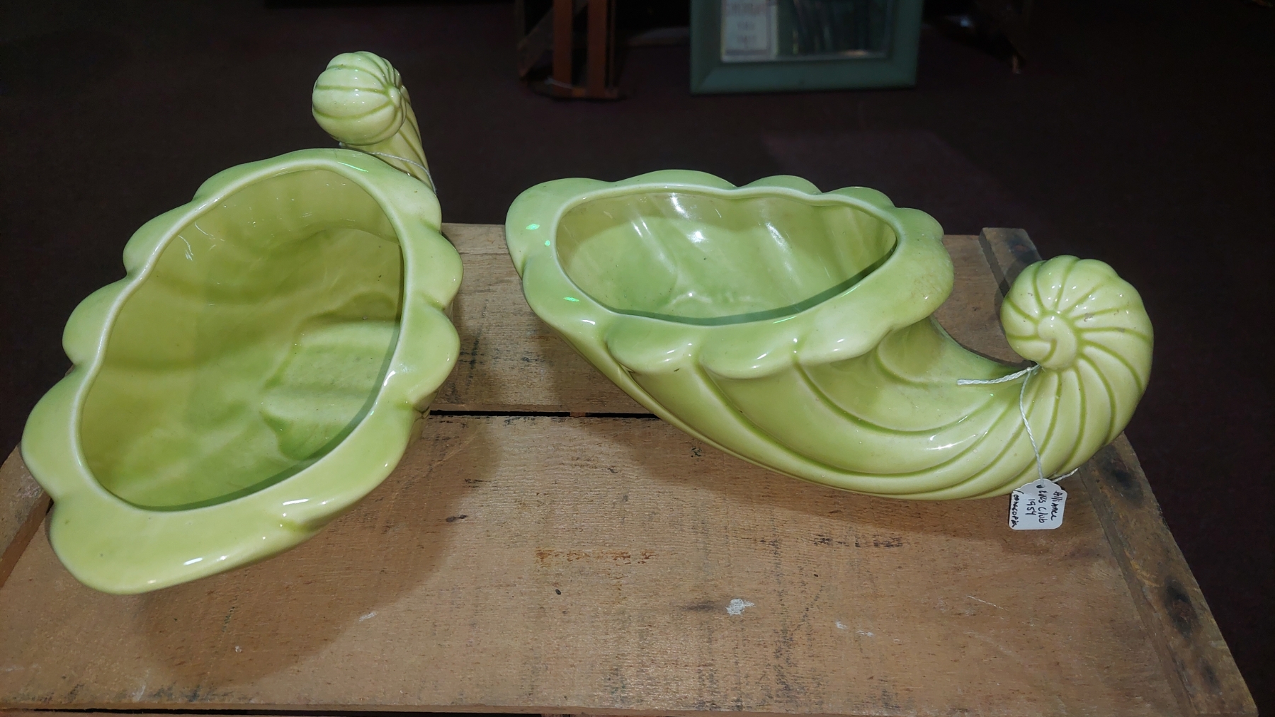 ca 1954 2 Pc Vintage Porcelain Cornucopia Planters - Specially Made For Elks Club Event - See Pics