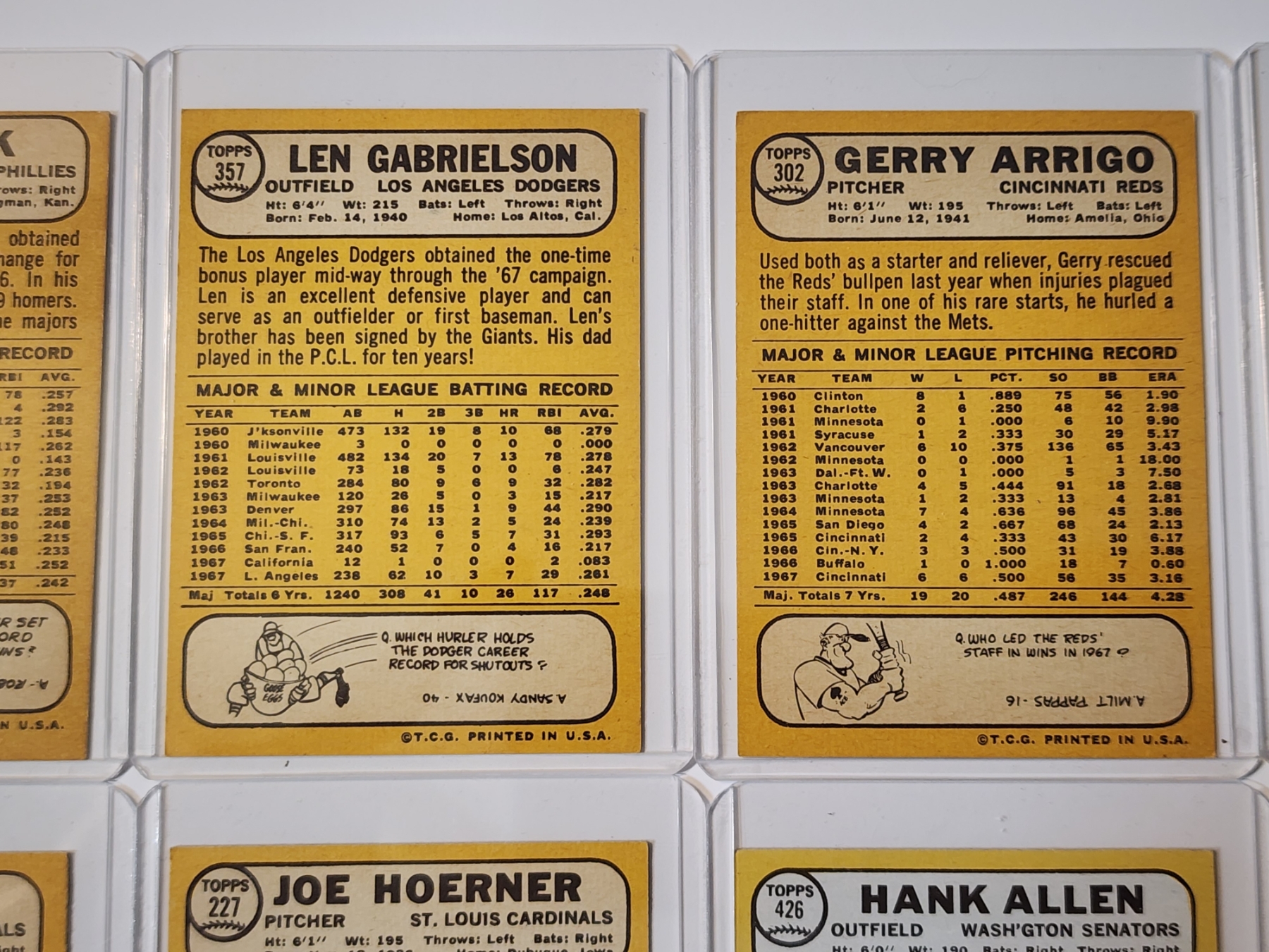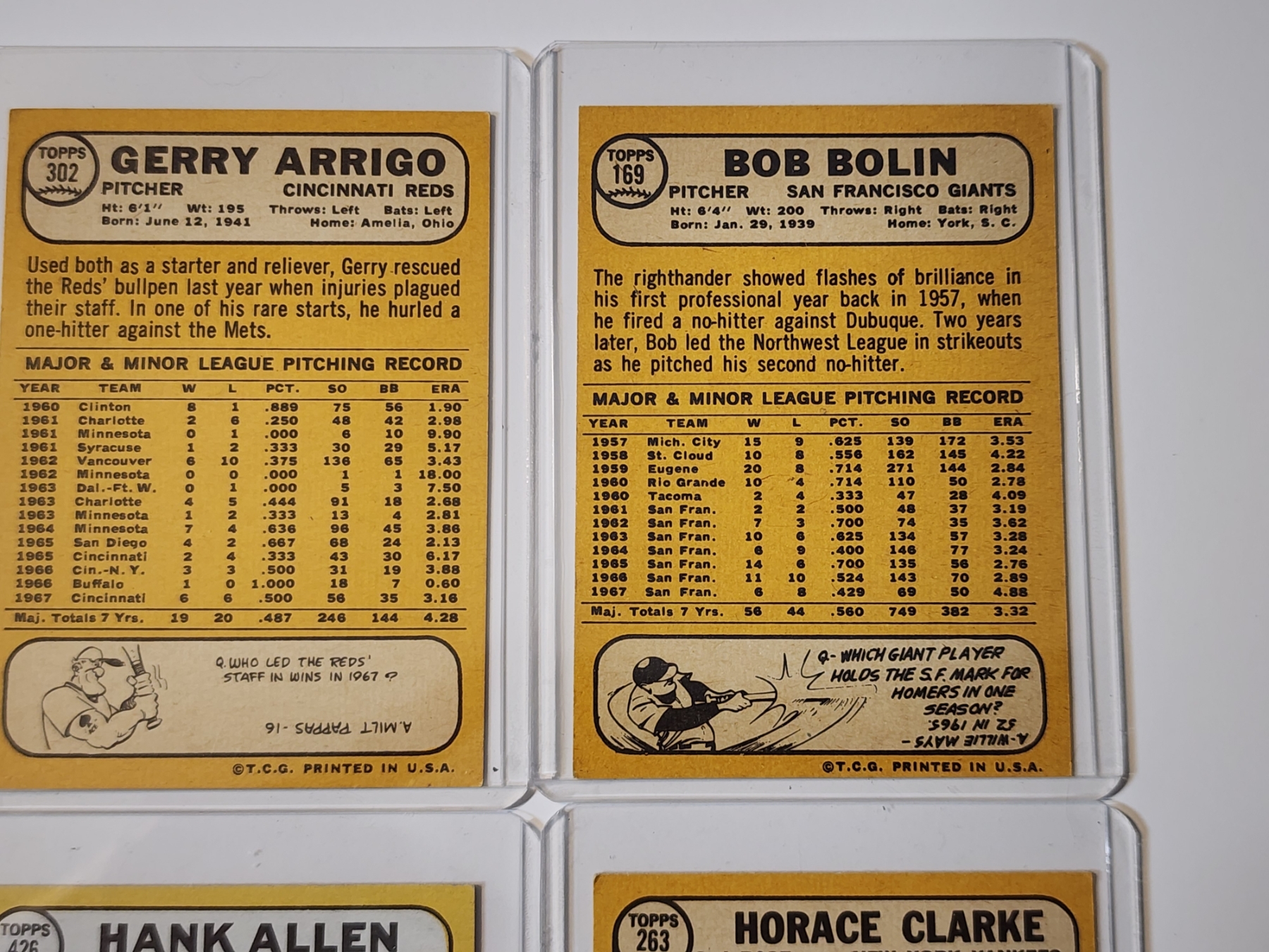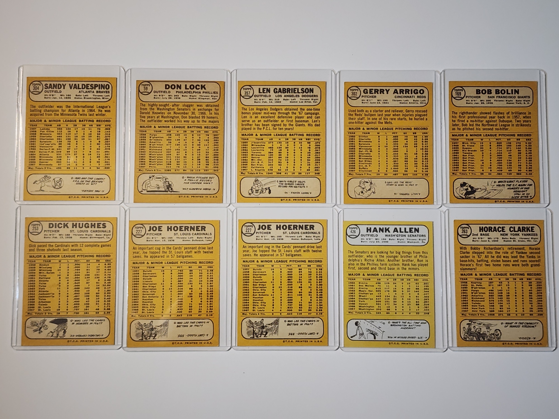 Sandy Valdespino, Joe Hoerner, Hank Allen, Horace Clarke, Joe Hoerner, Dick Hughes, Len Gabrielson, Gerry Arrigo, Bob Bolin, Don Lock
