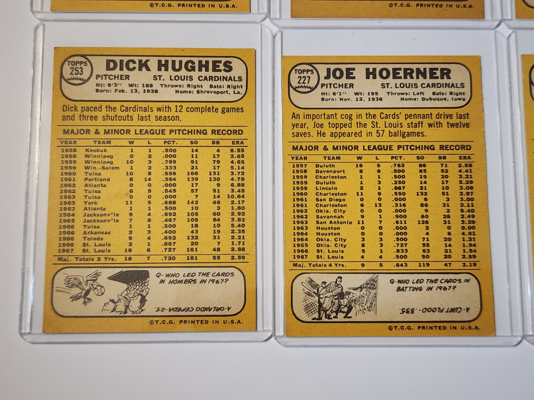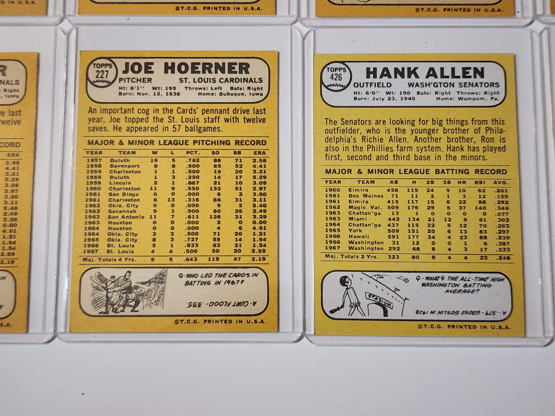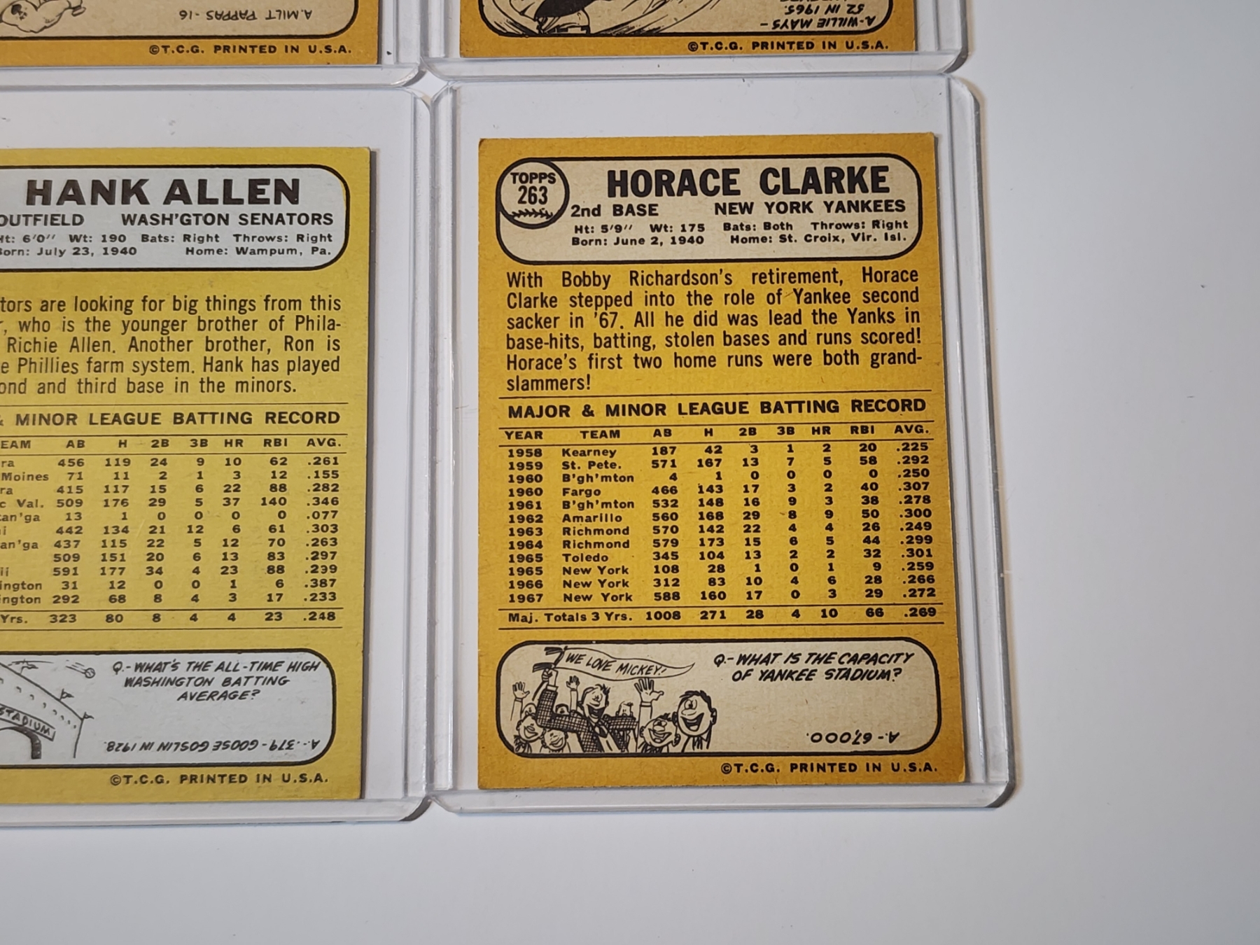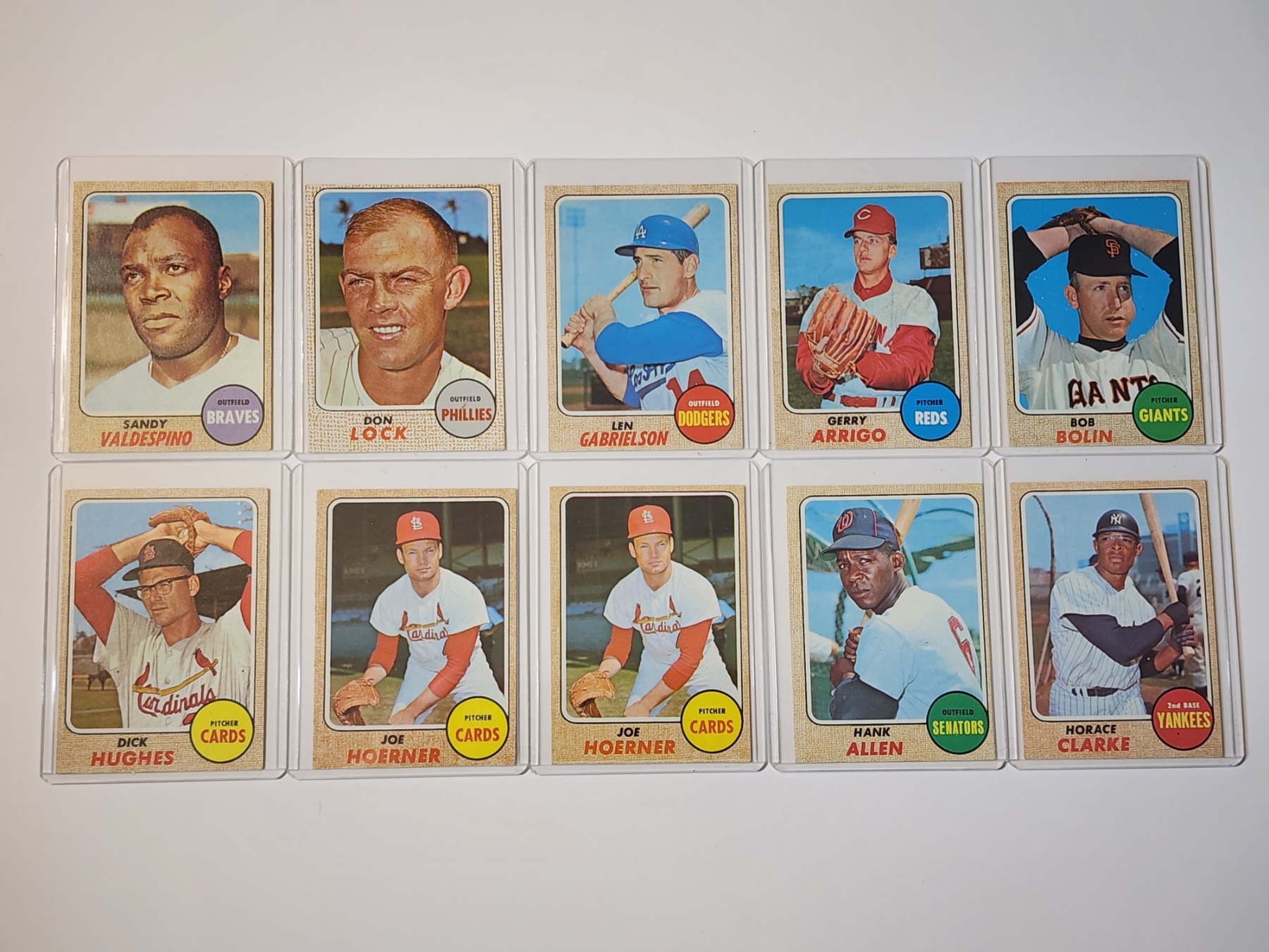 x10 Assorted 1968 Topps Baseball Trading Cards - Excellent Condition in Card Holders