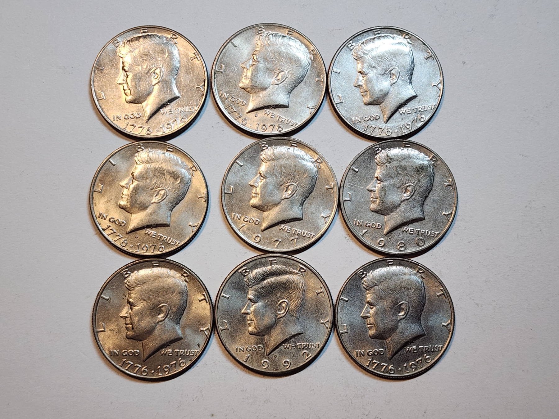 x10 Assorted Years 40% Silver Kennedy Half Dollars FV: $5.00