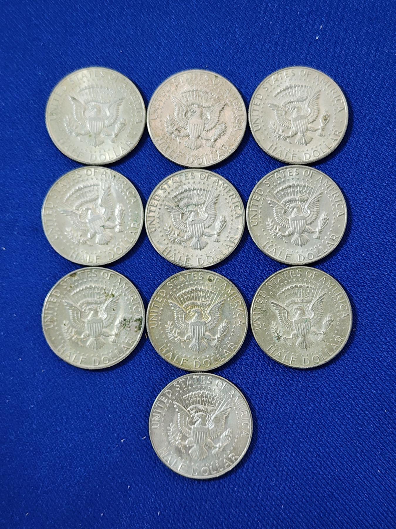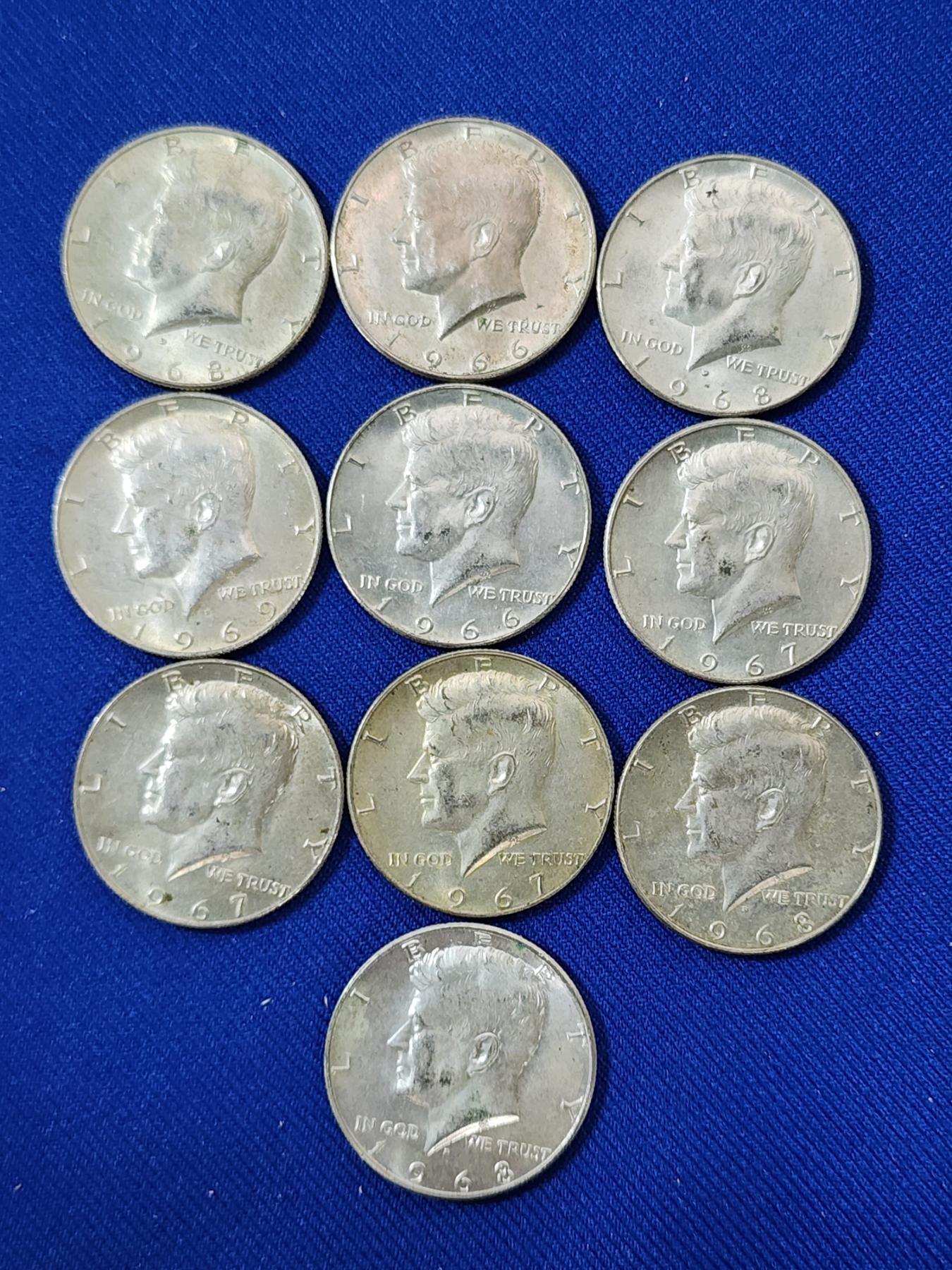x10 Assorted Years 40% Silver Kennedy Half Dollars FV: $5.00