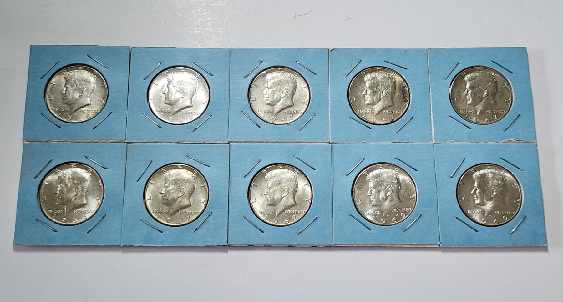 x10 Assorted Years 40% Silver Kennedy Half Dollars FV: $5.00