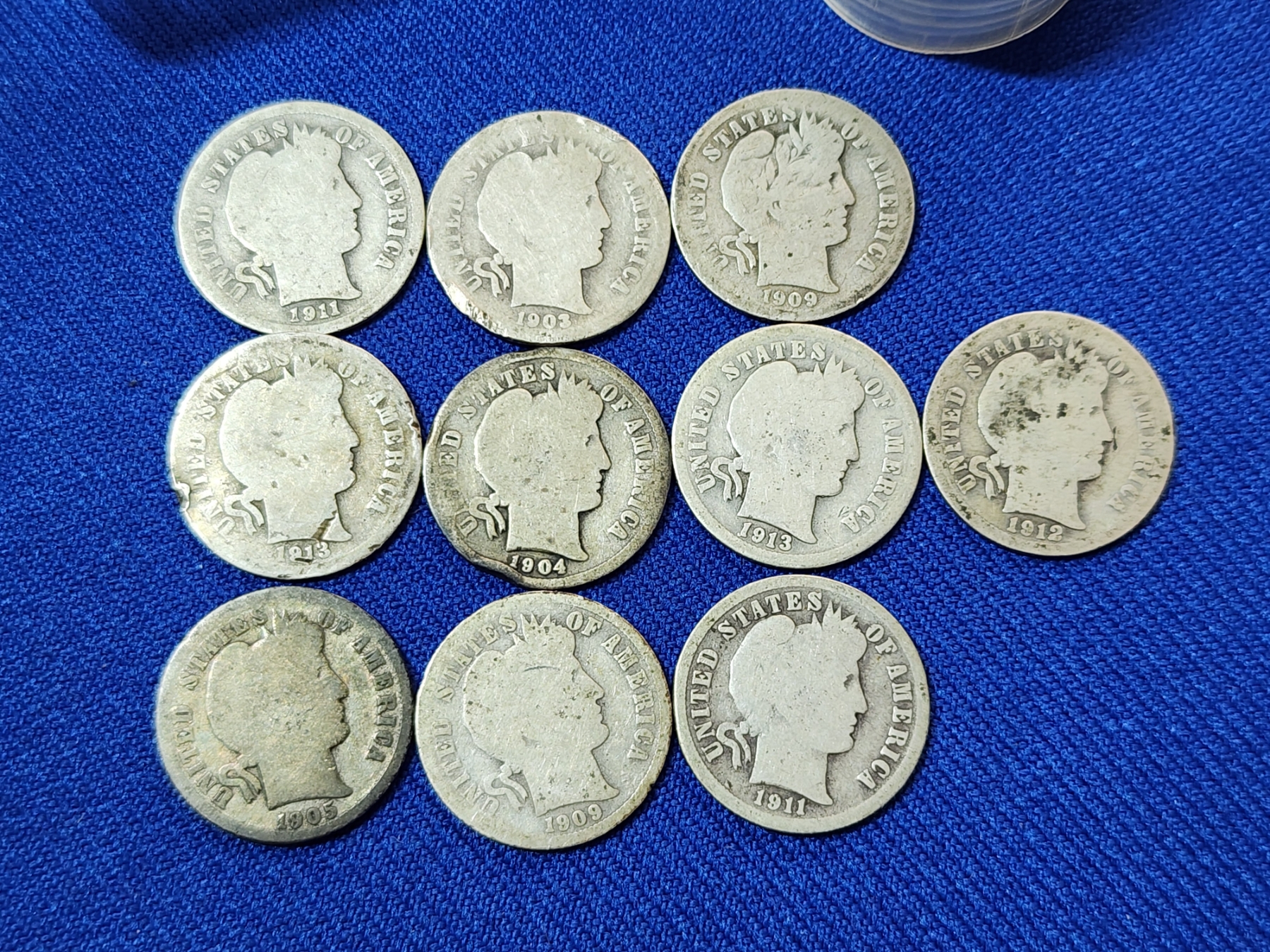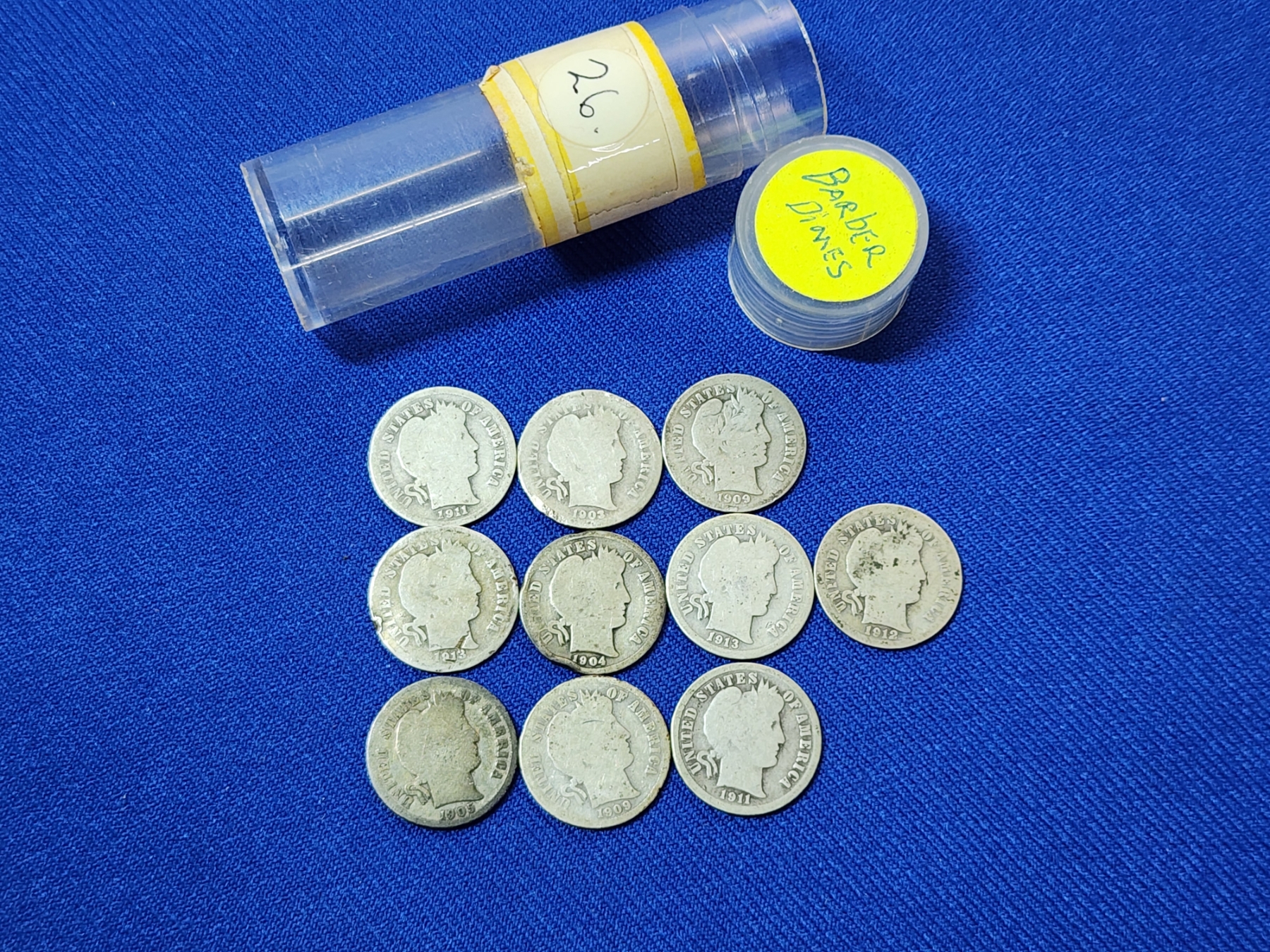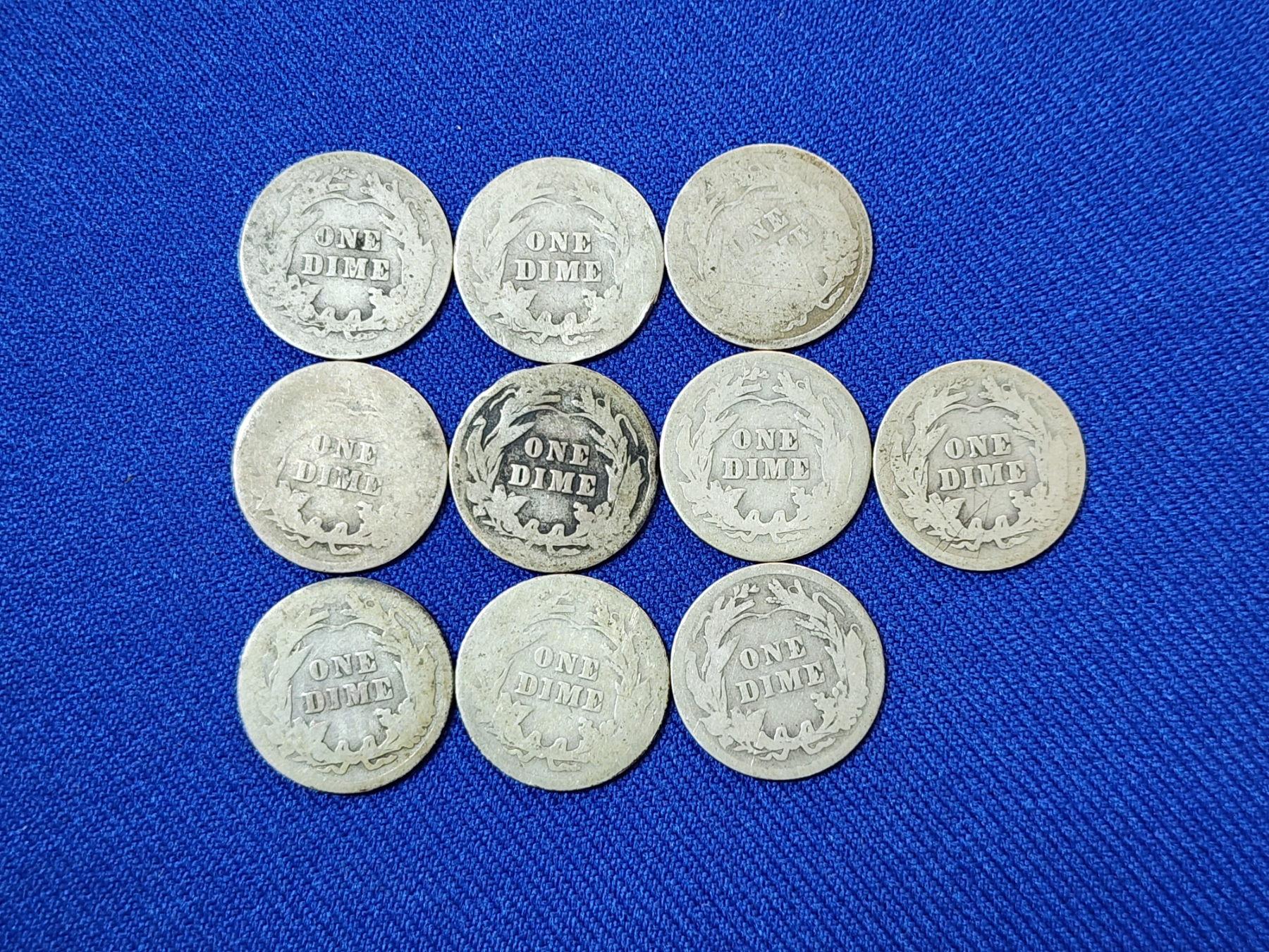 x10 Assorted Years 90% Silver Barber Dimes FV: $1.00