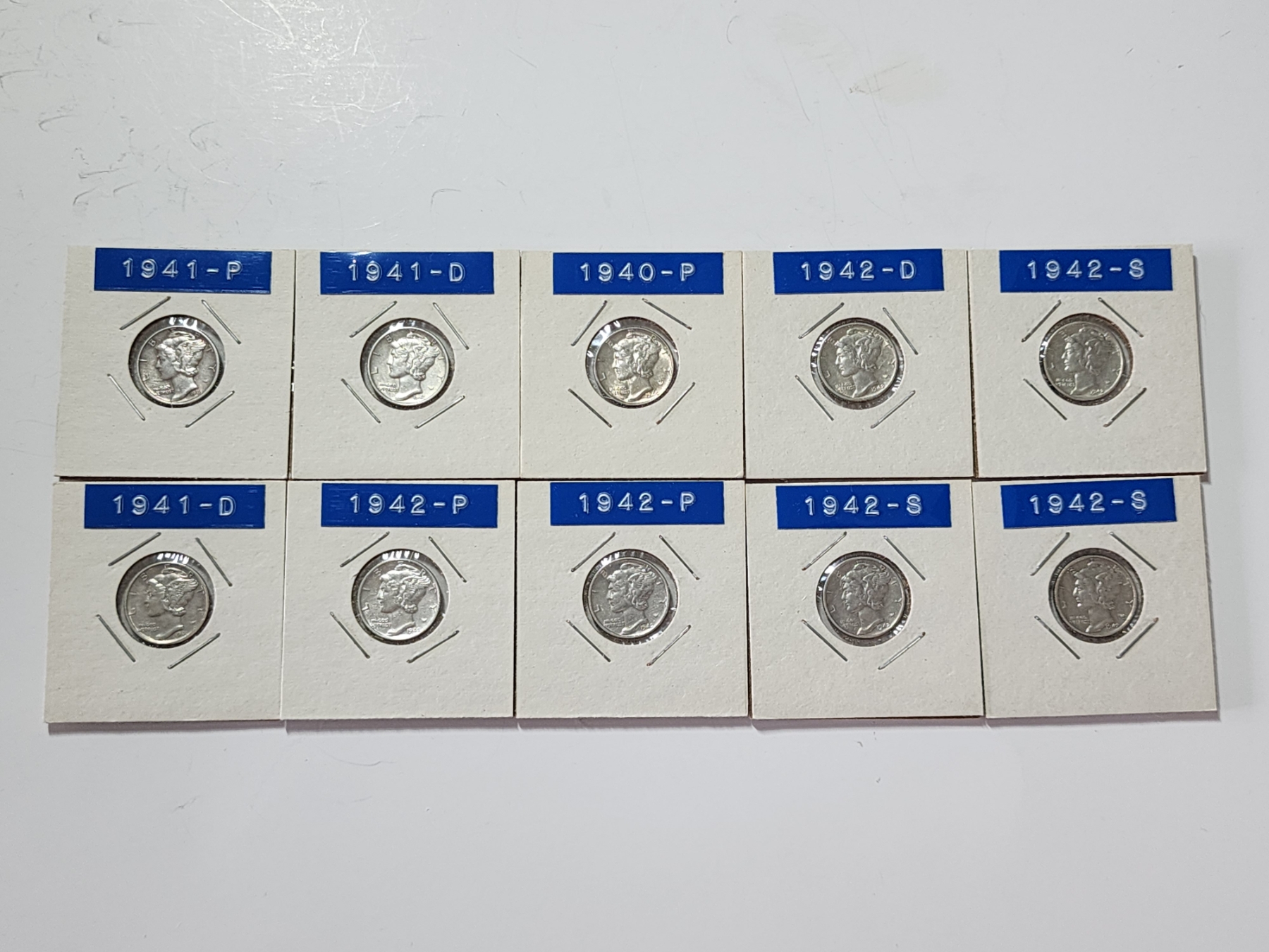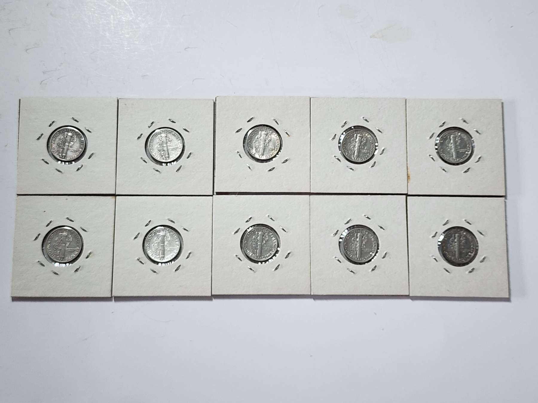 x10 Assorted Years 90% Silver Mercury Dimes FV: $1.00