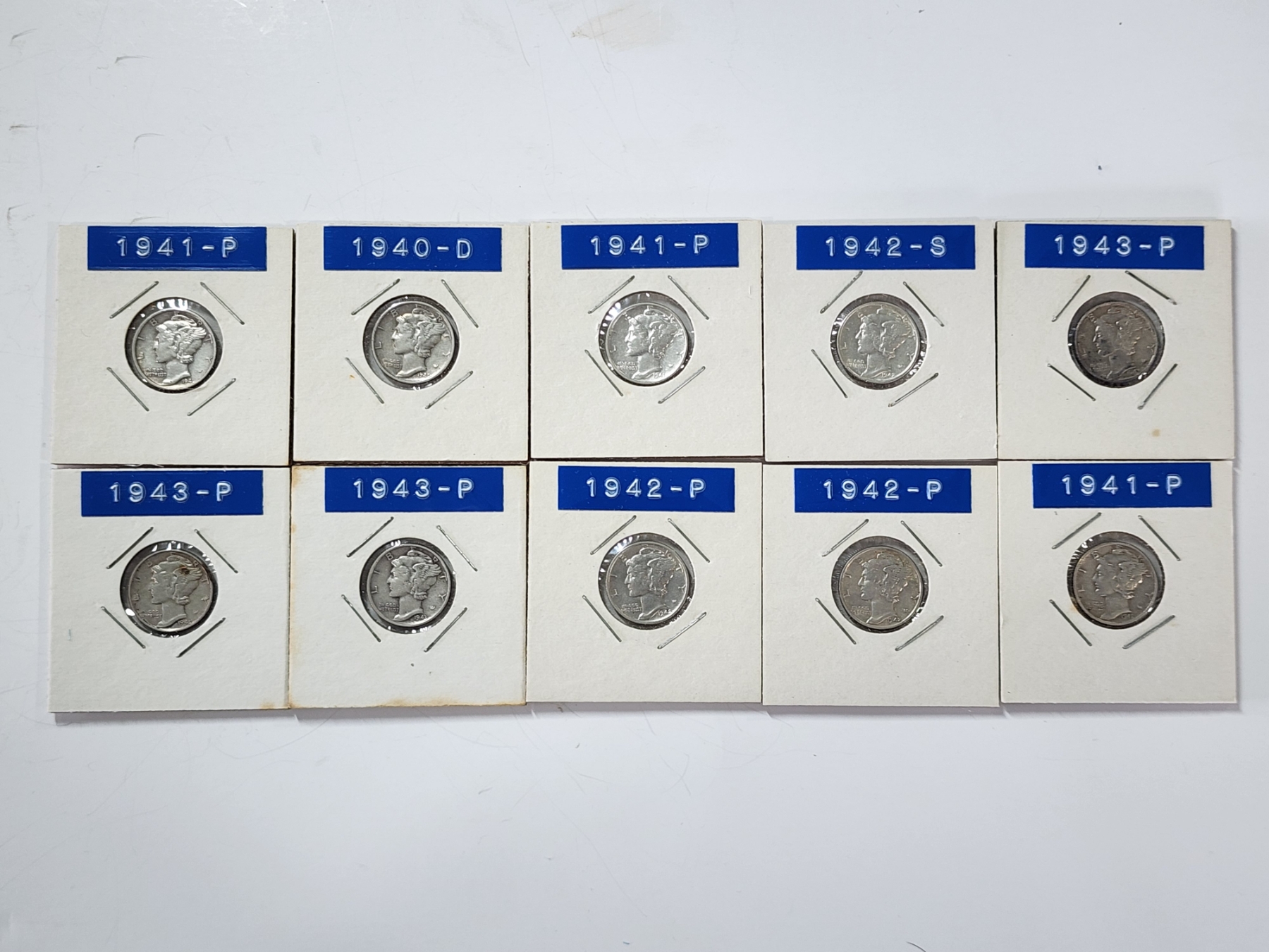x10 Assorted Years 90% Silver Mercury Dimes FV: $1.00