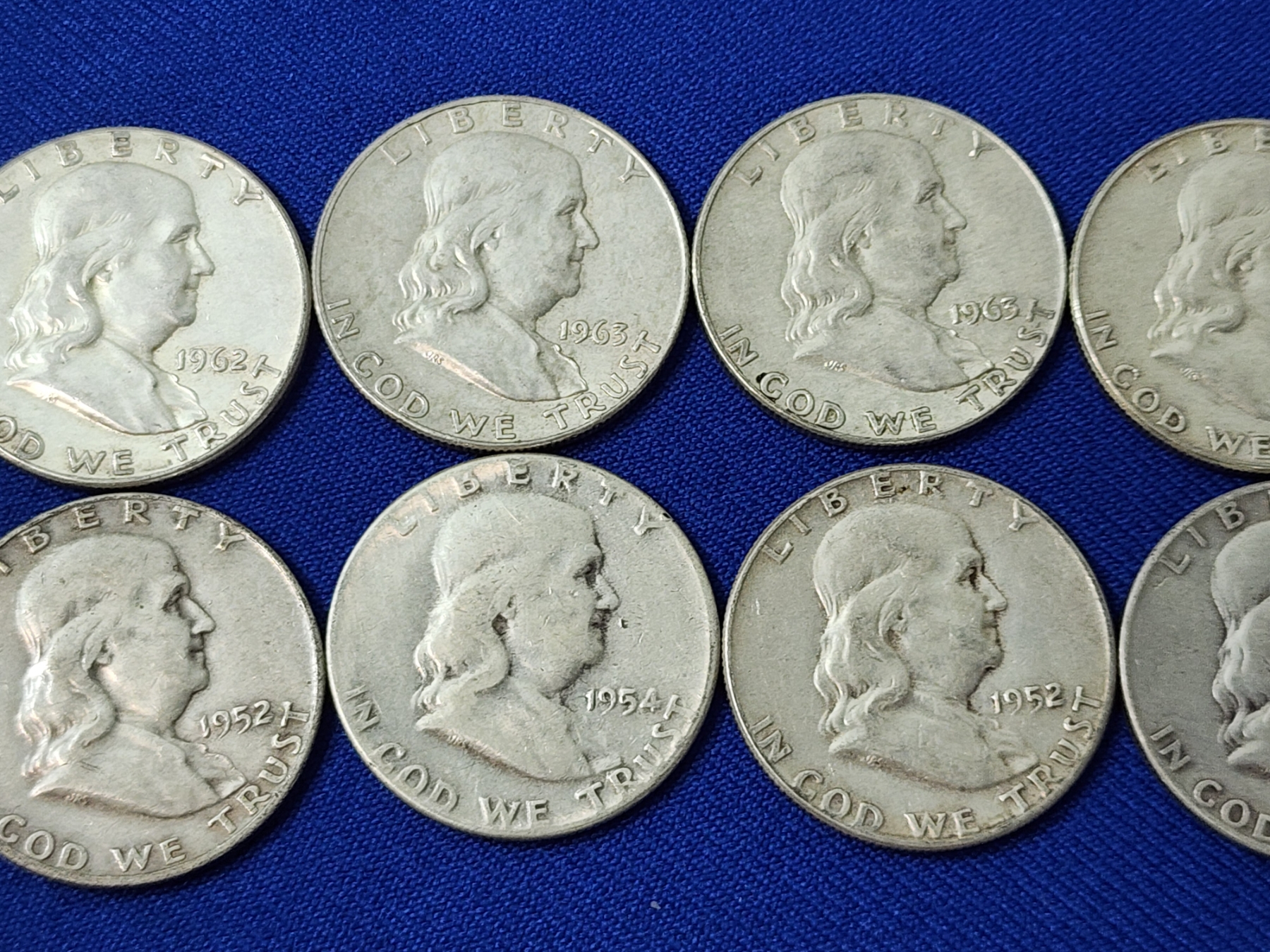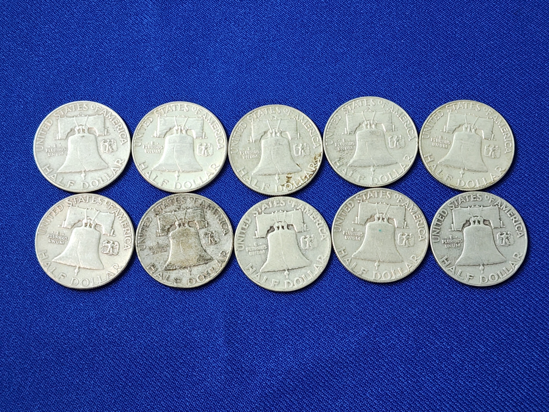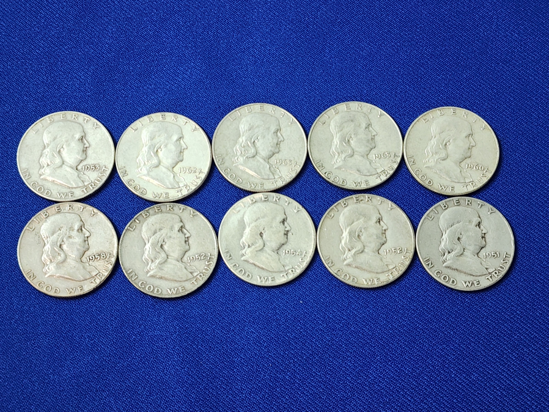 x10 Assorted Years Franklin Silver Half Dollars FV: $5.00