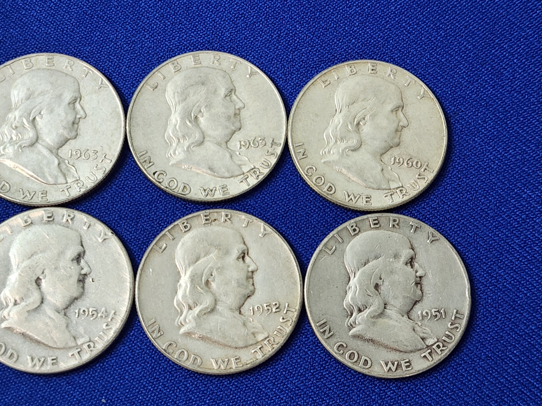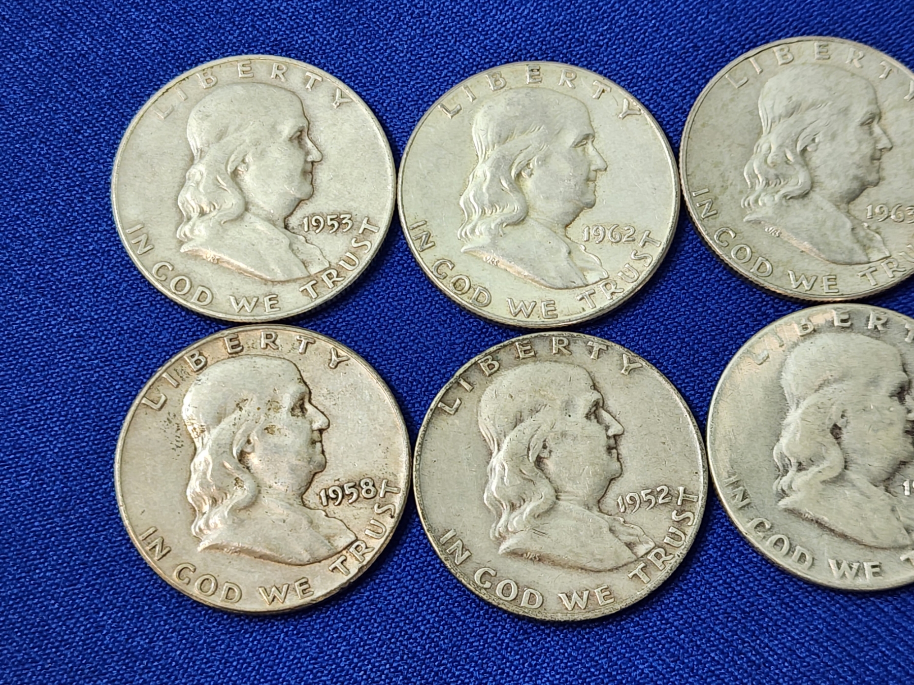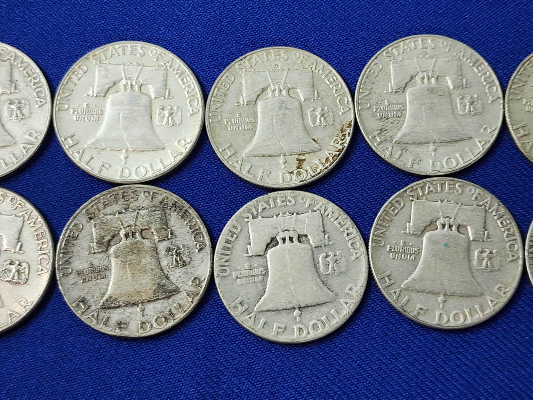 x10 Assorted Years Franklin Silver Half Dollars FV: $5.00