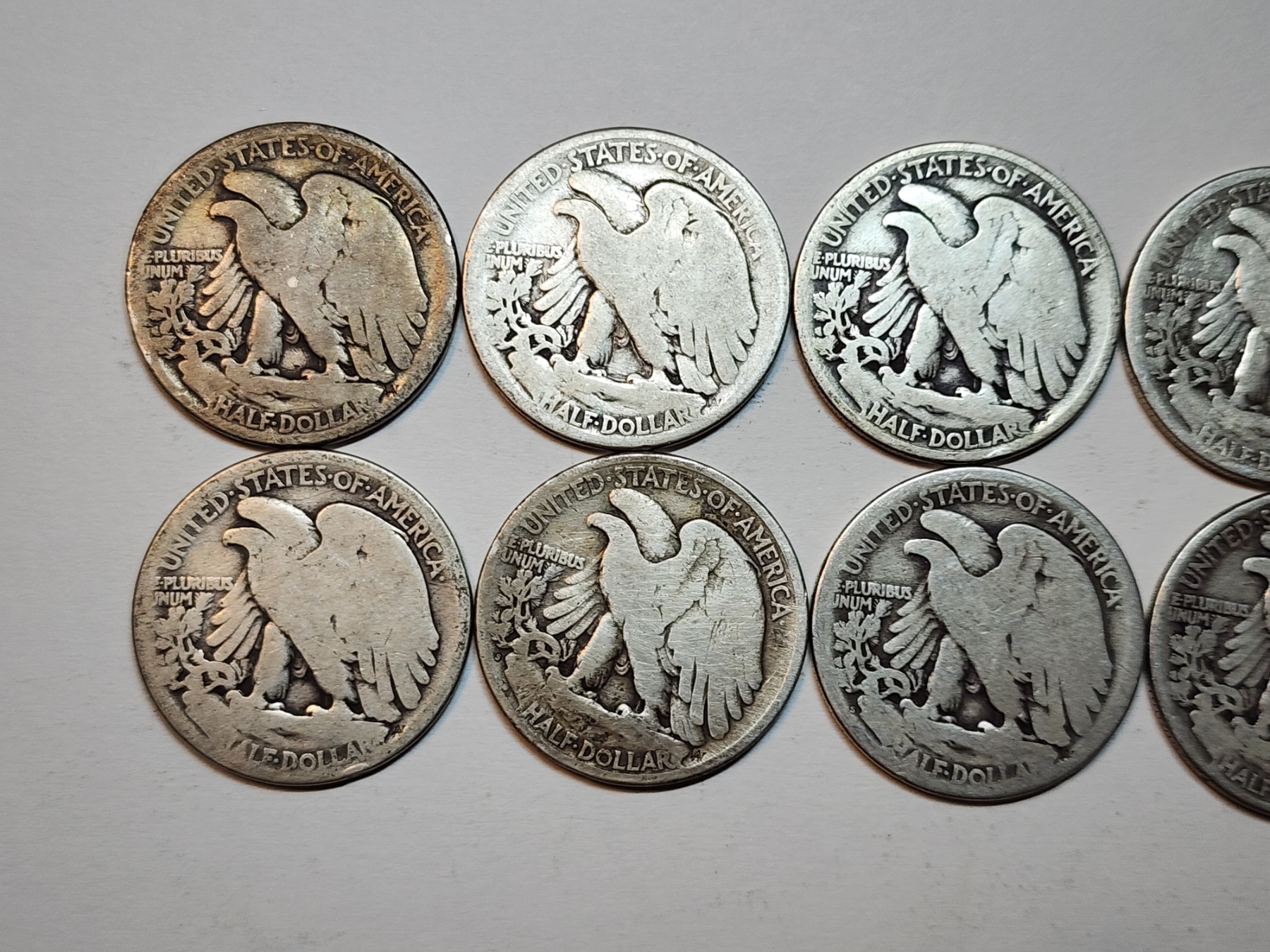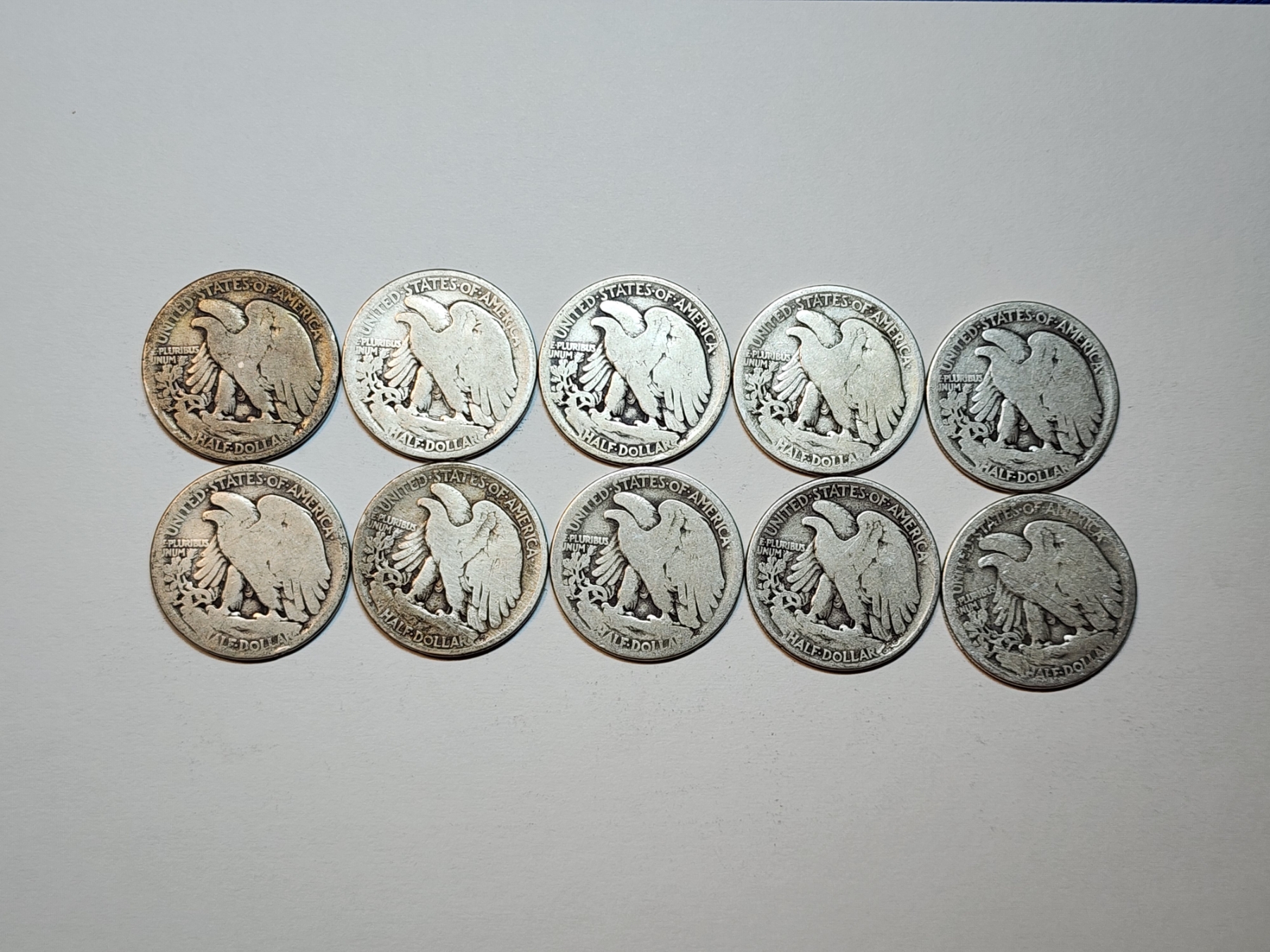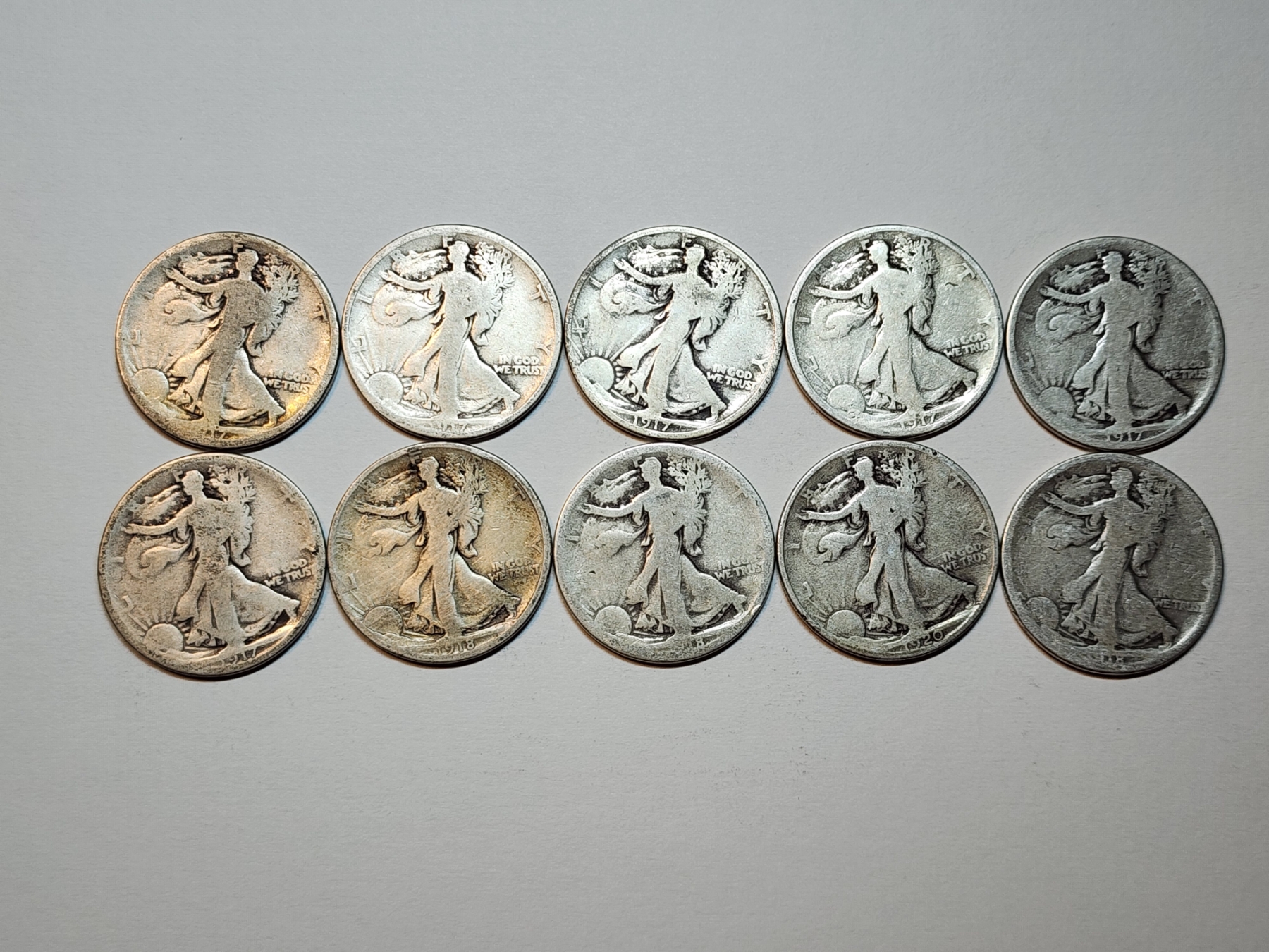 x10 Assorted Years Silver Walking Liberty Half Dollars Face Value: $5.00