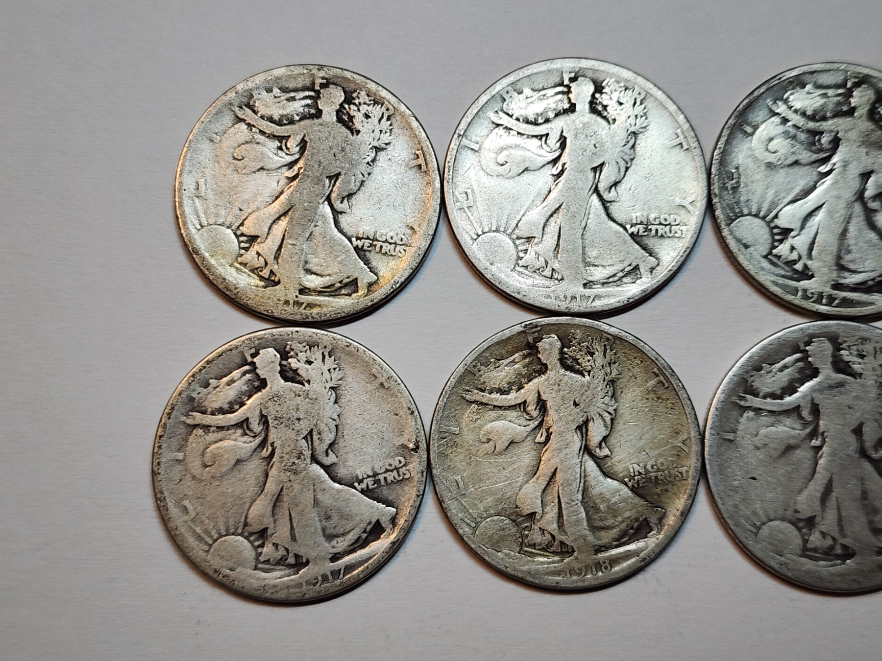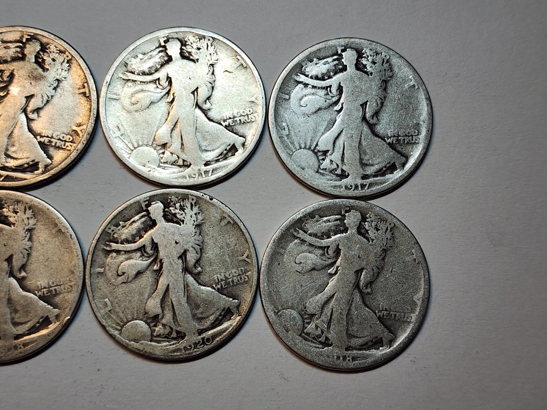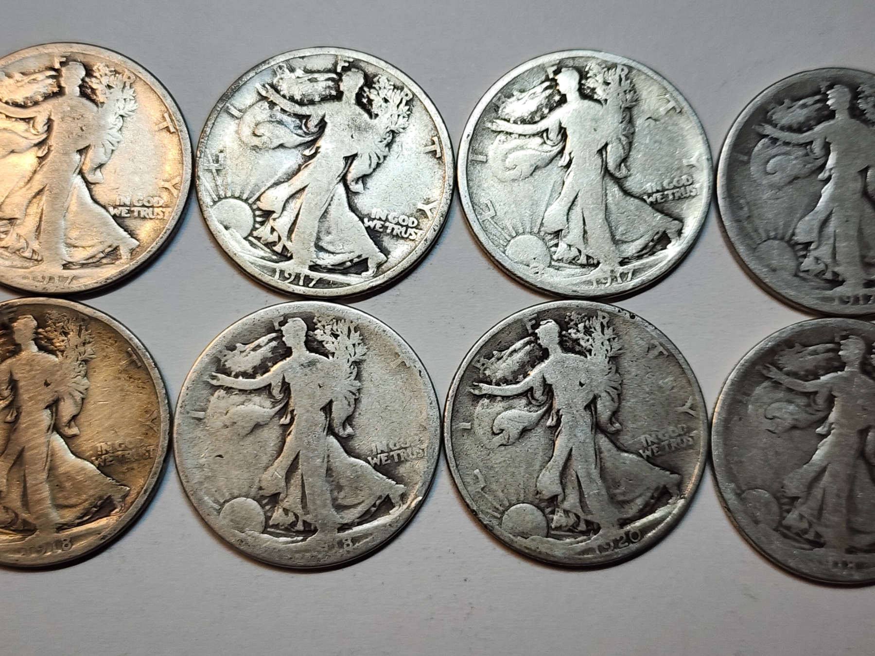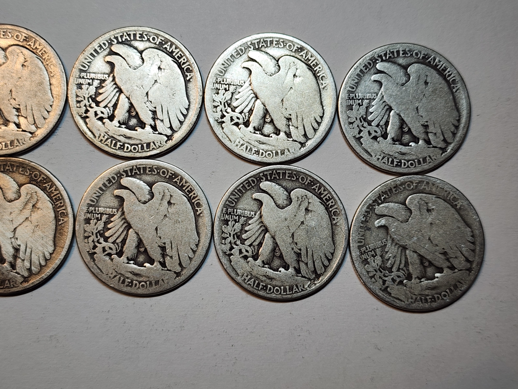 x10 Assorted Years Silver Walking Liberty Half Dollars Face Value: $5.00