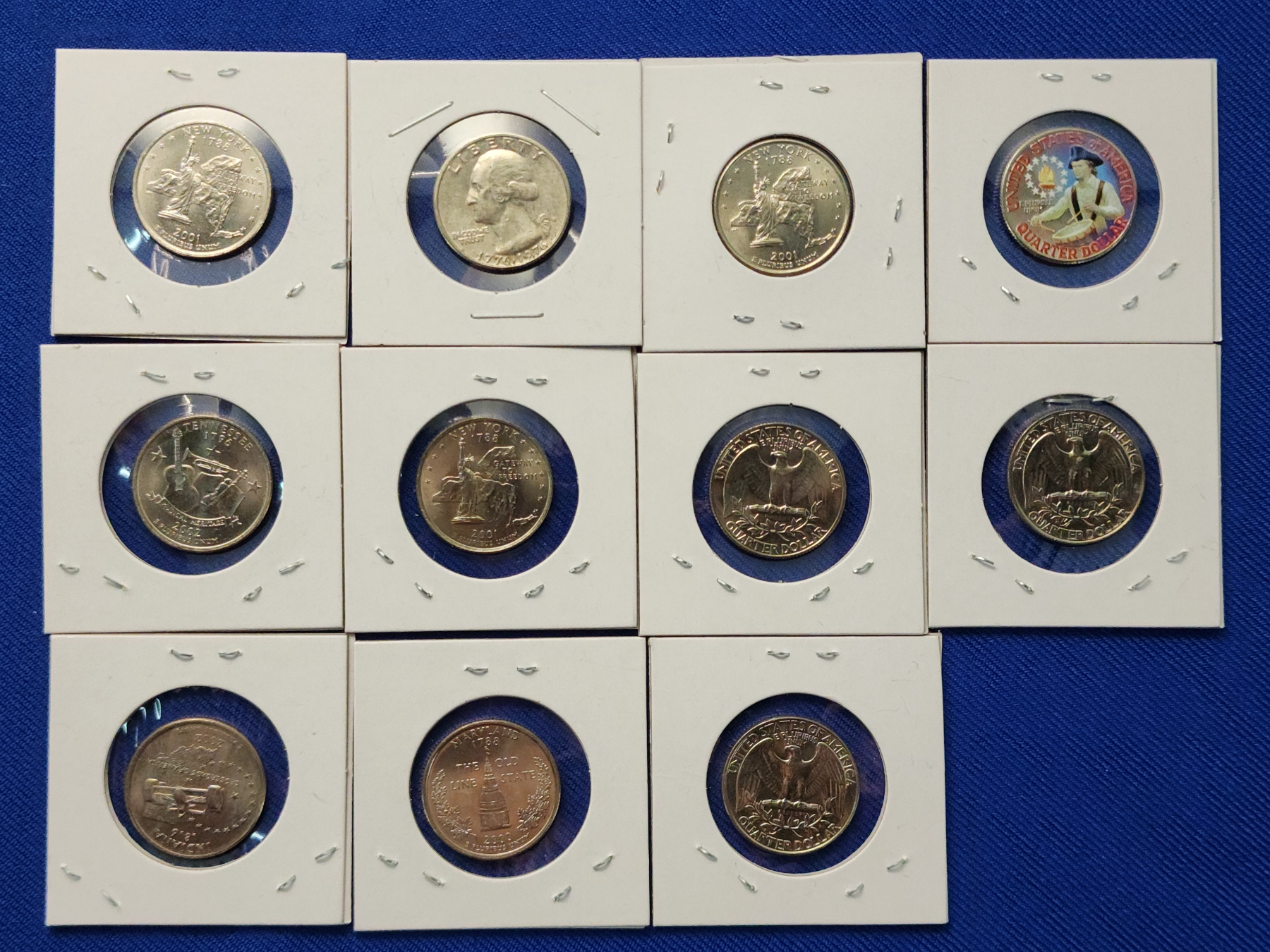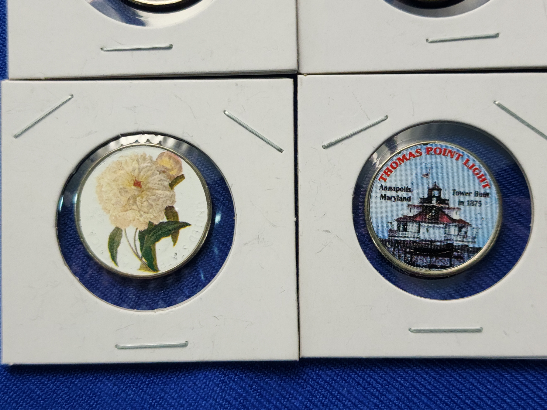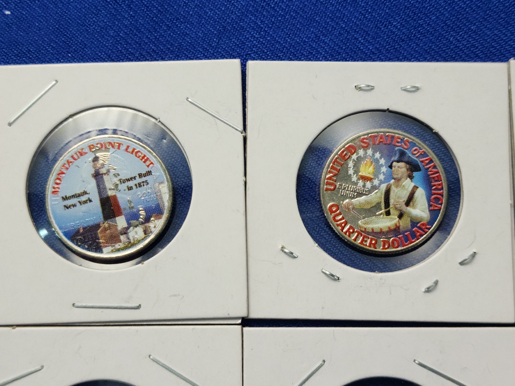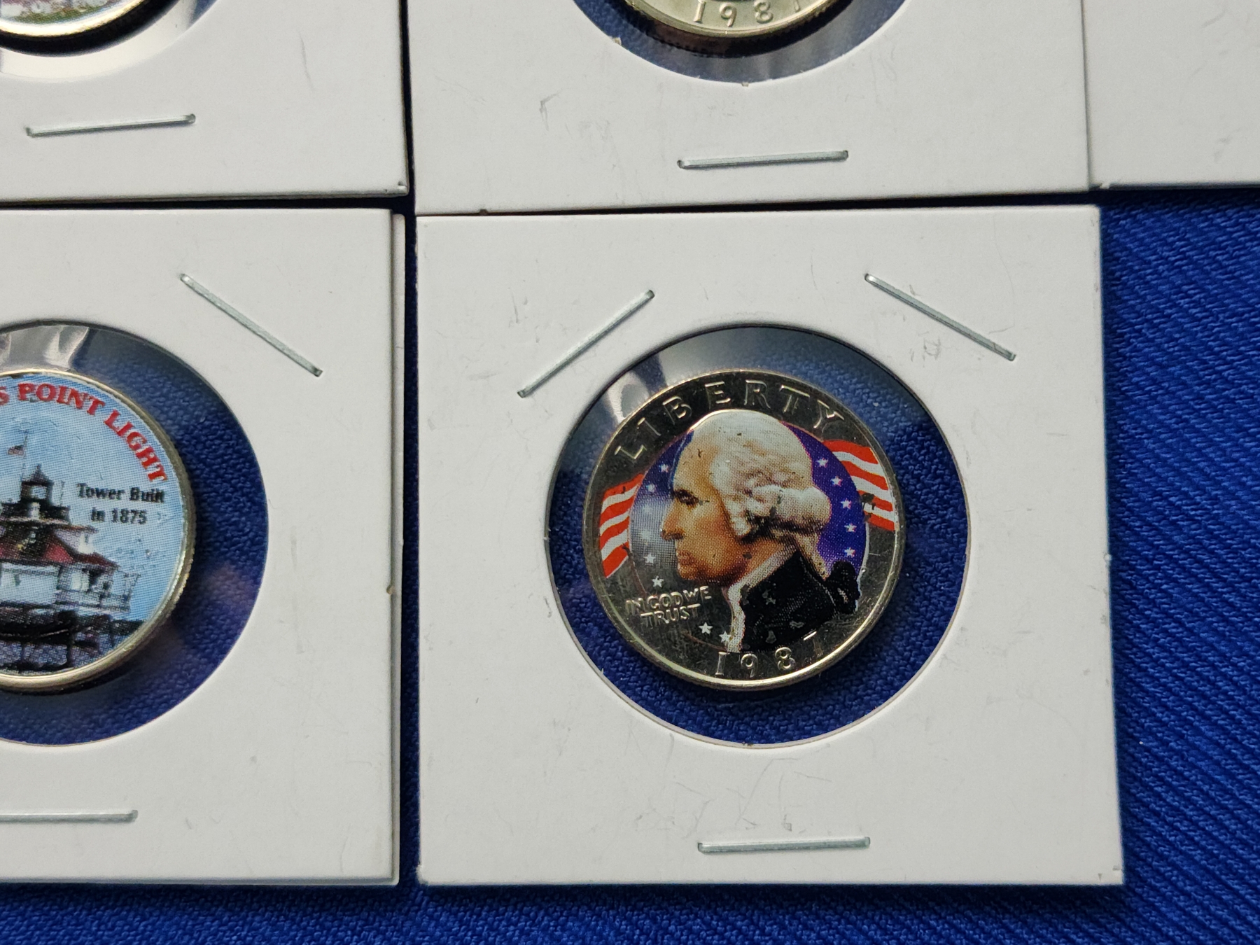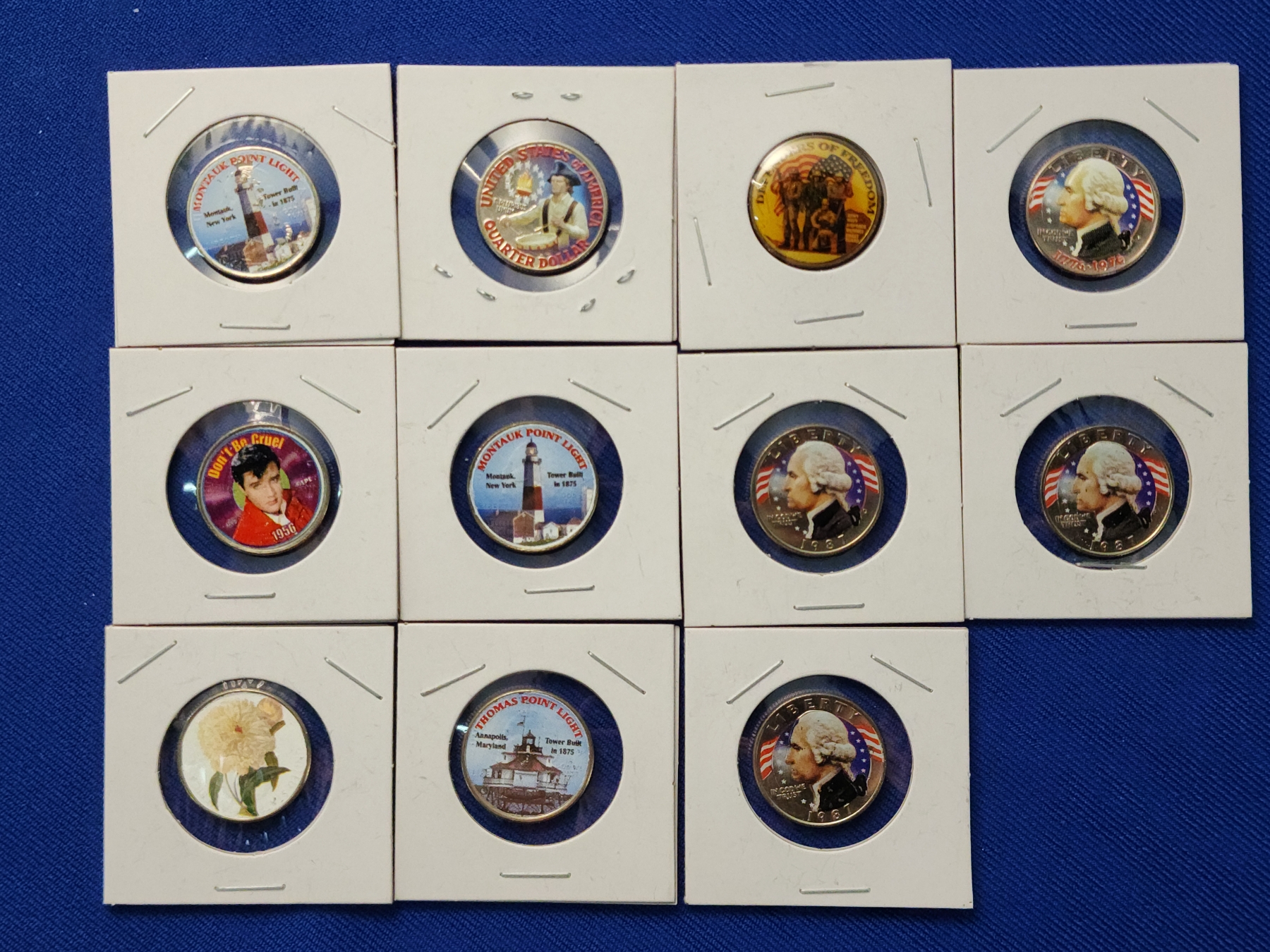 x11 Colorized Statehood Quarters Including Elvis Presley, Flowers, Lighthouses FV: $2.75