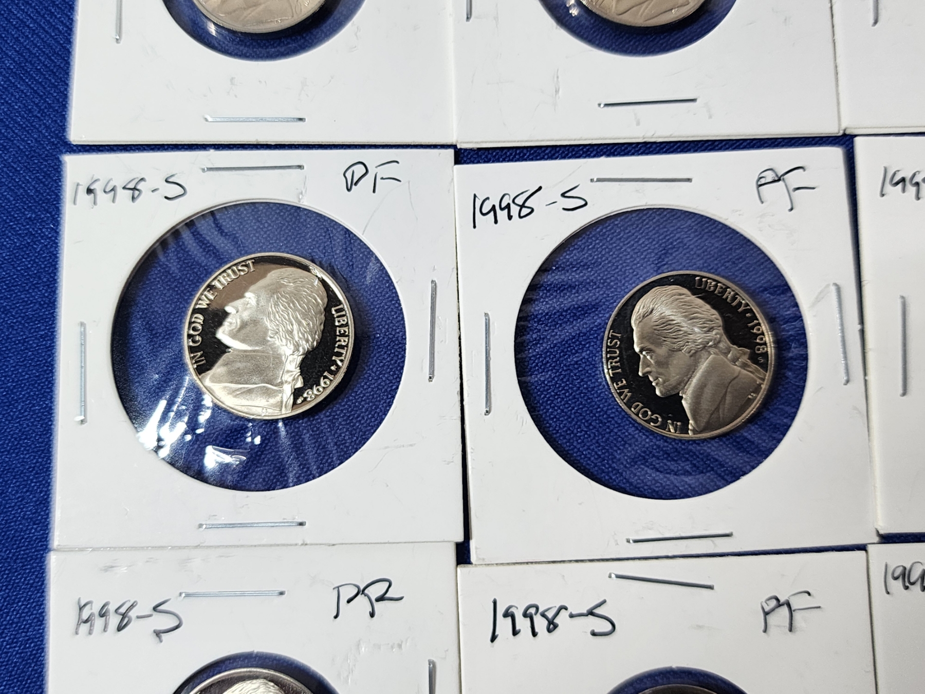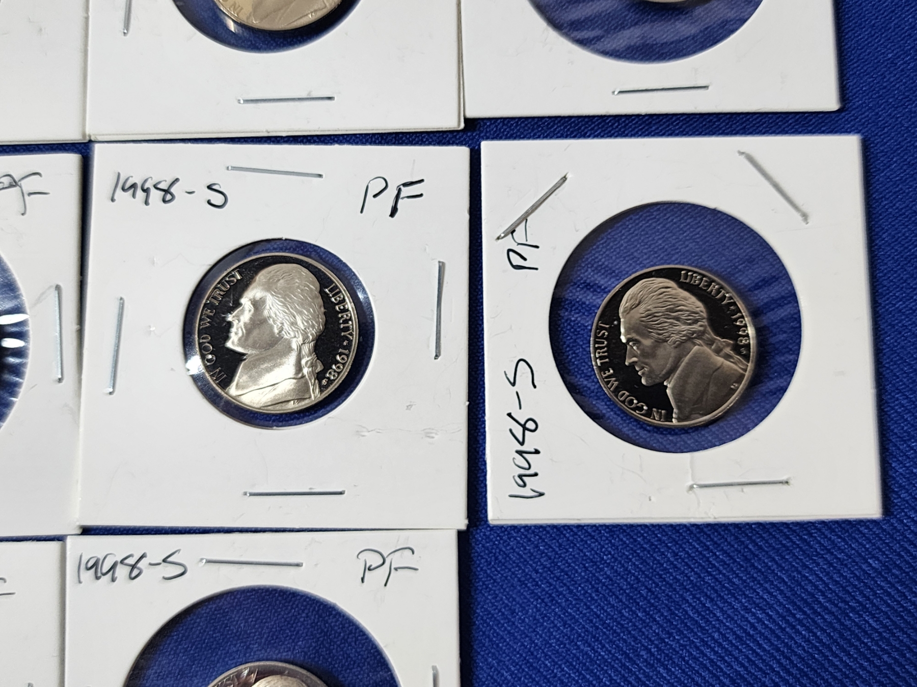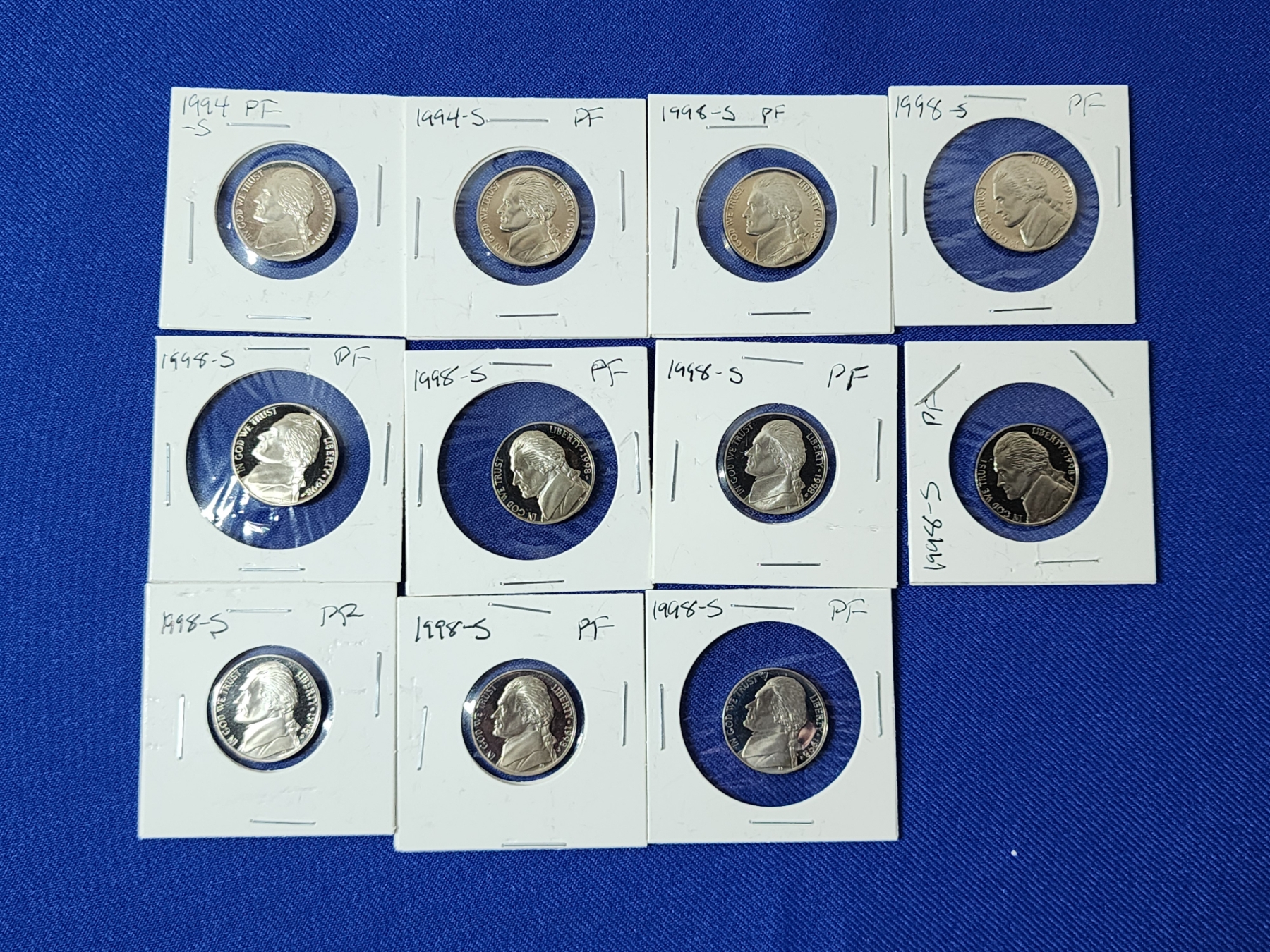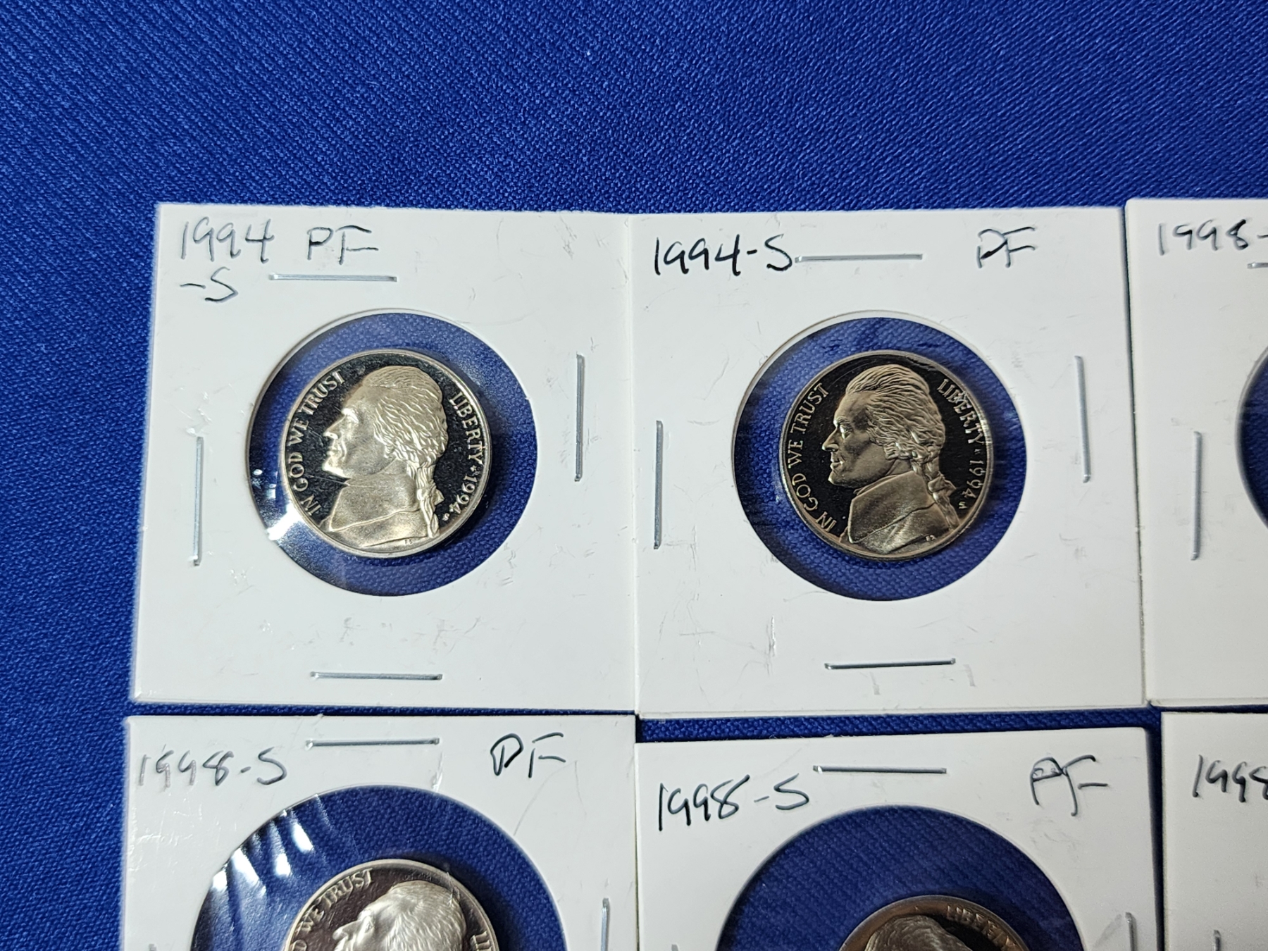 x11 Proof Jefferson Nickels - 1994-S and 1998-S FV: $0.55