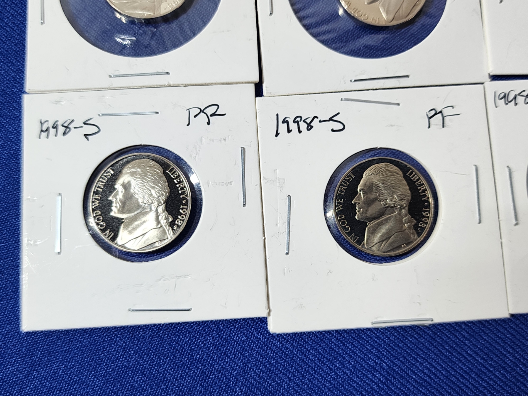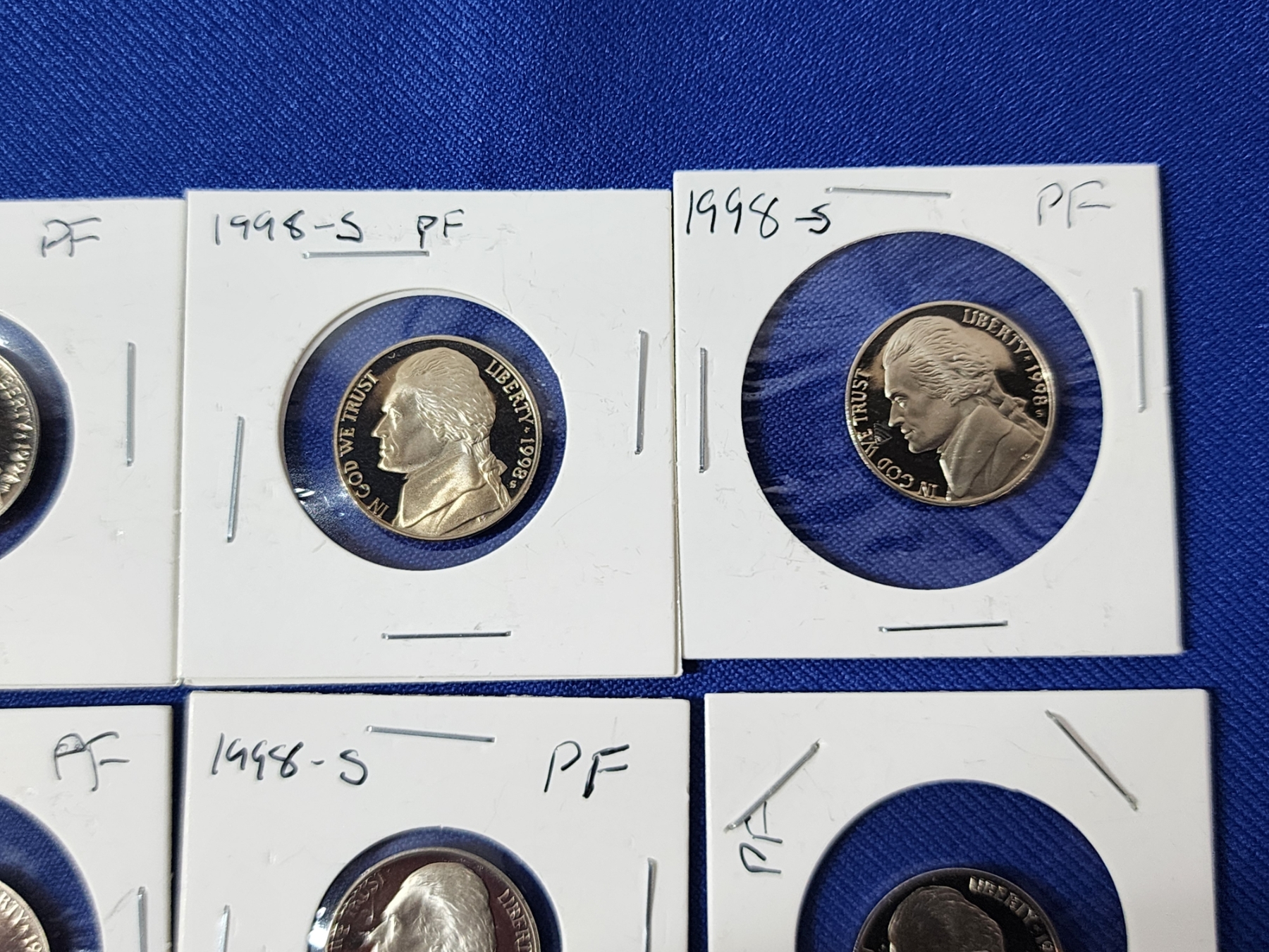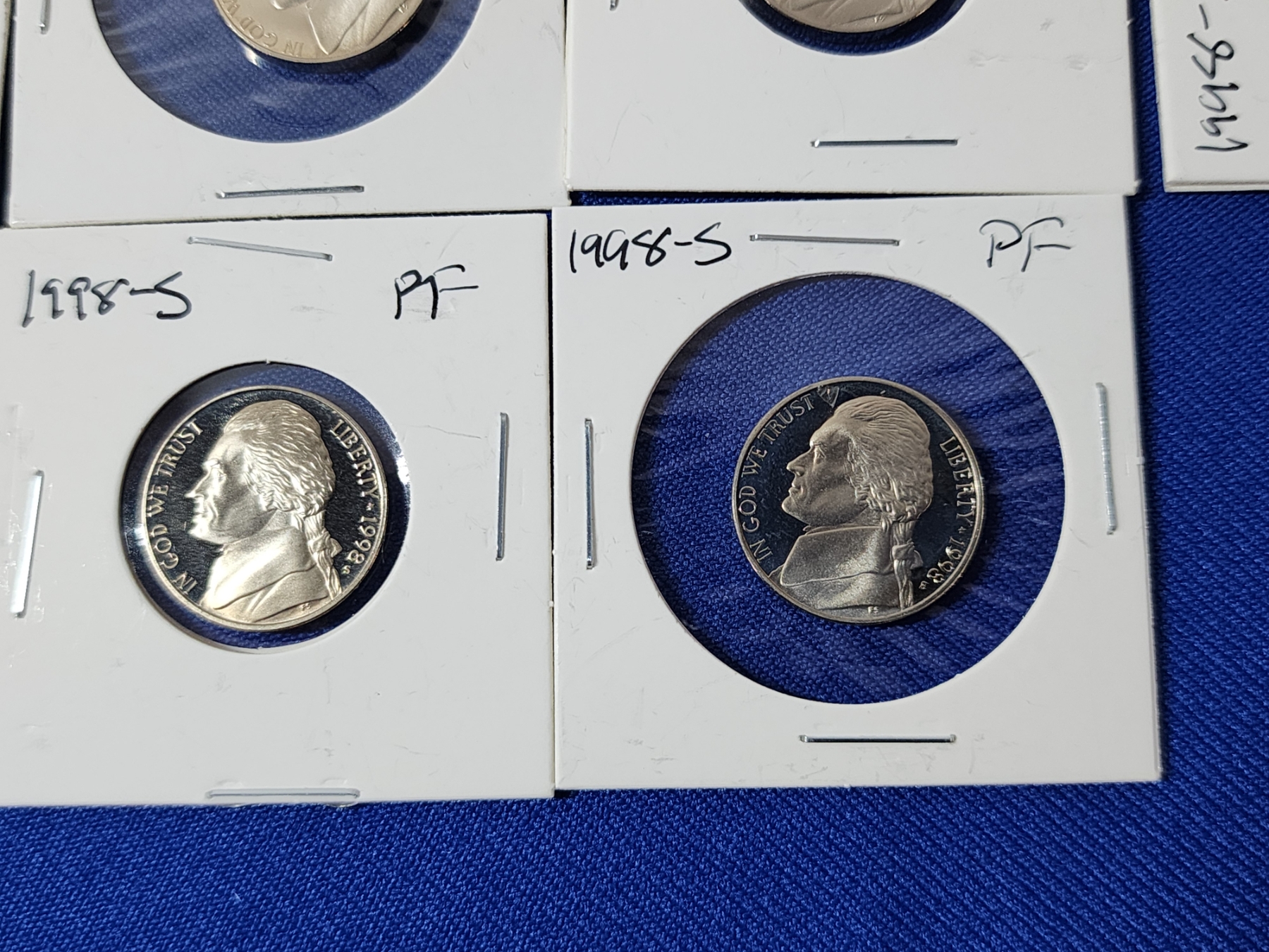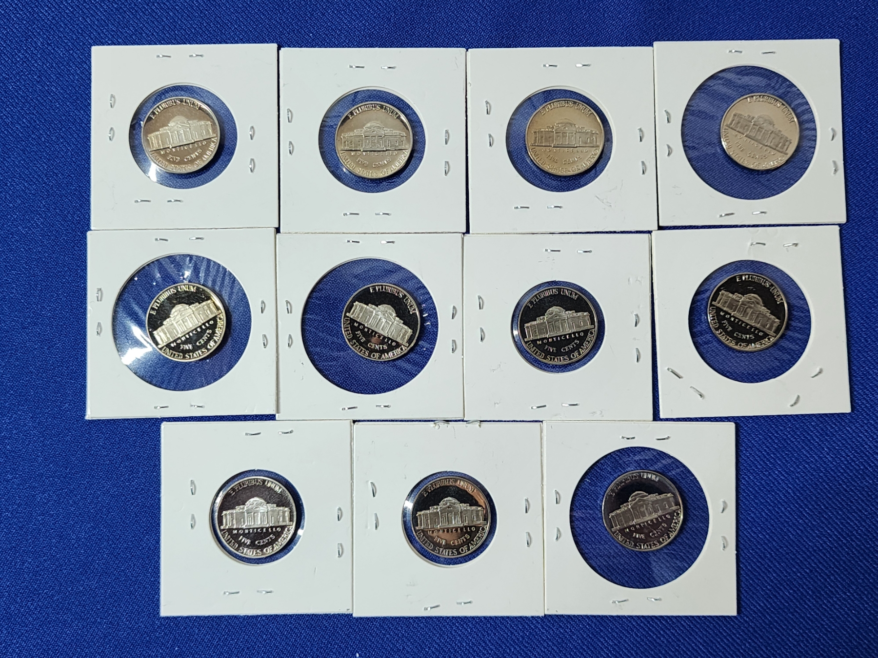 x11 Proof Jefferson Nickels - 1994-S and 1998-S FV: $0.55