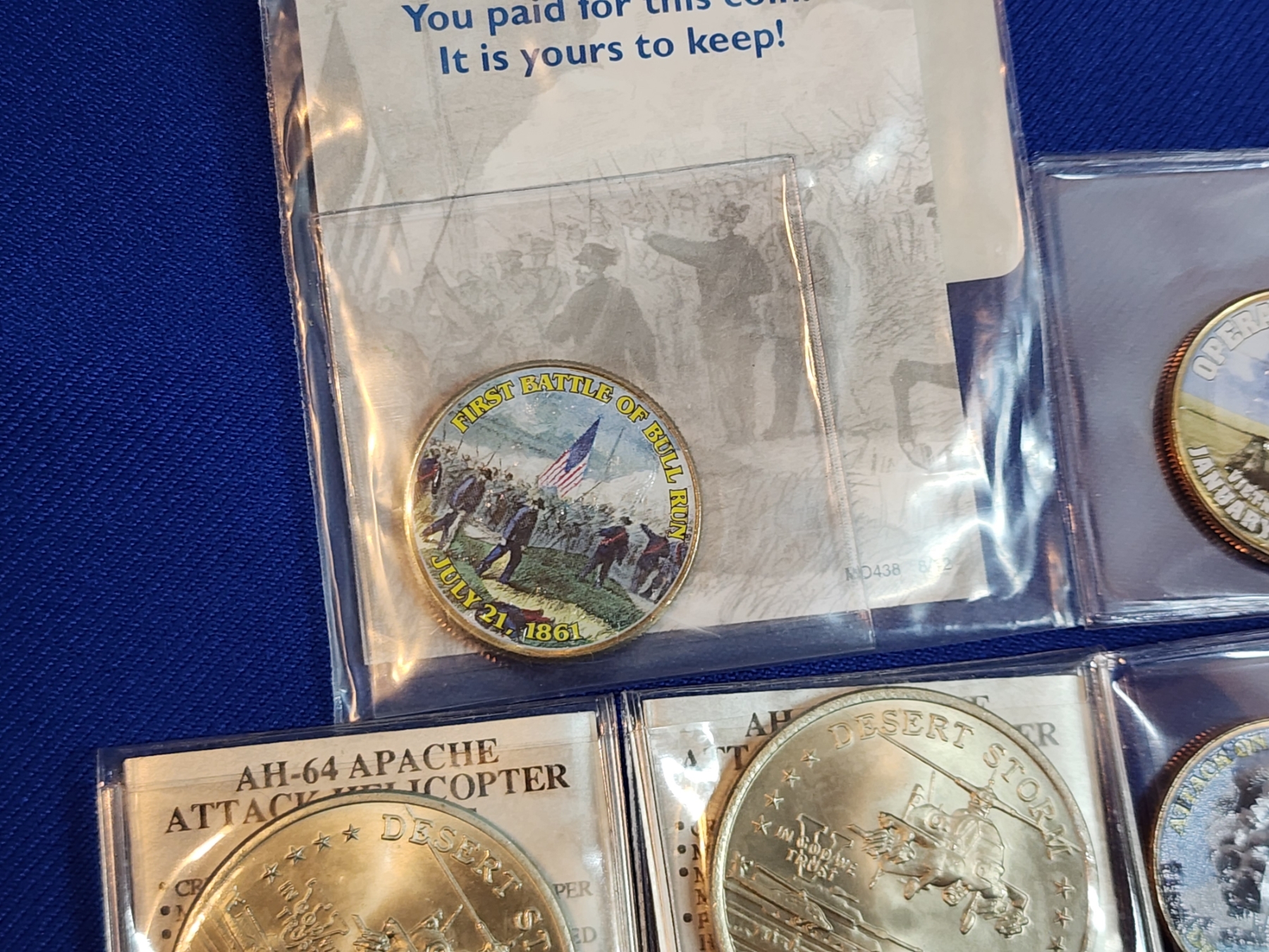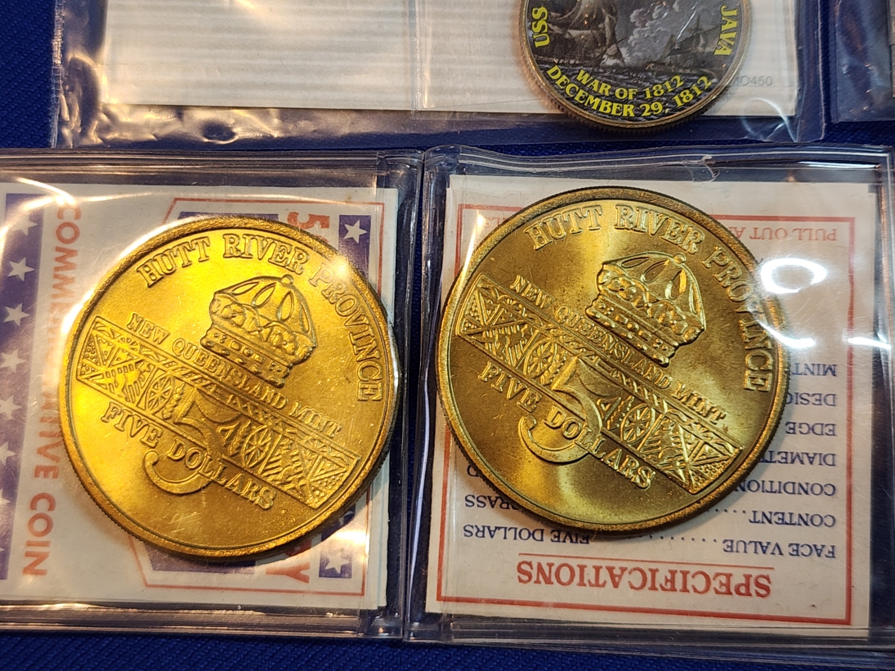 x12 Assorted Coins Including Commemorative U.S. Quarters, $5 U.S. Coins, Australia $5 - See Photos!