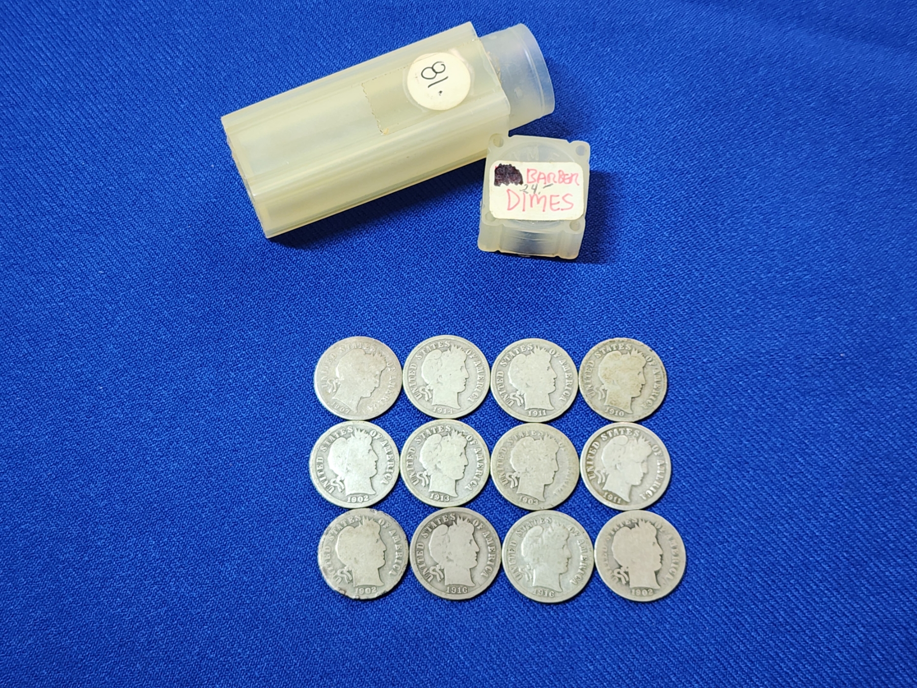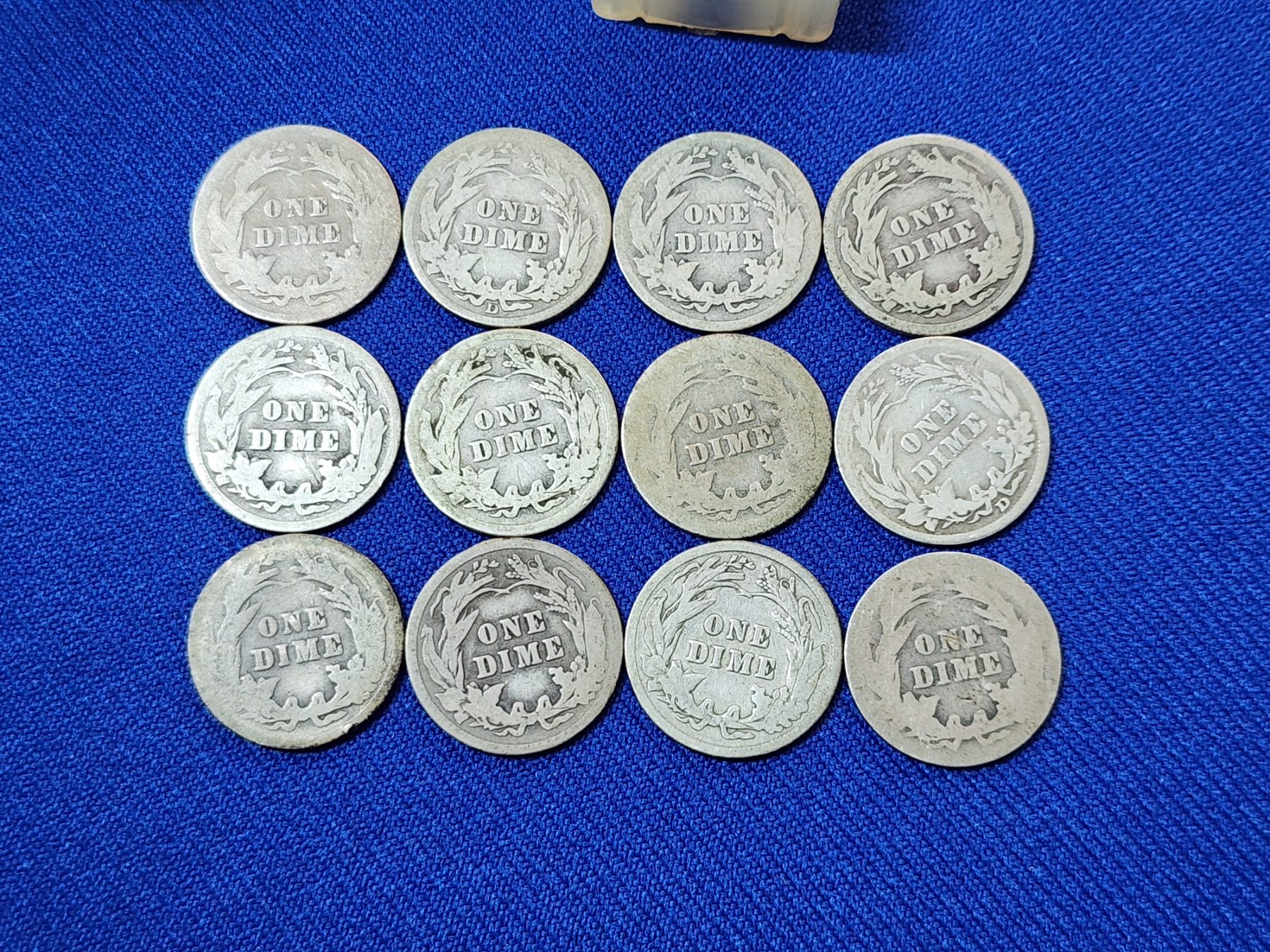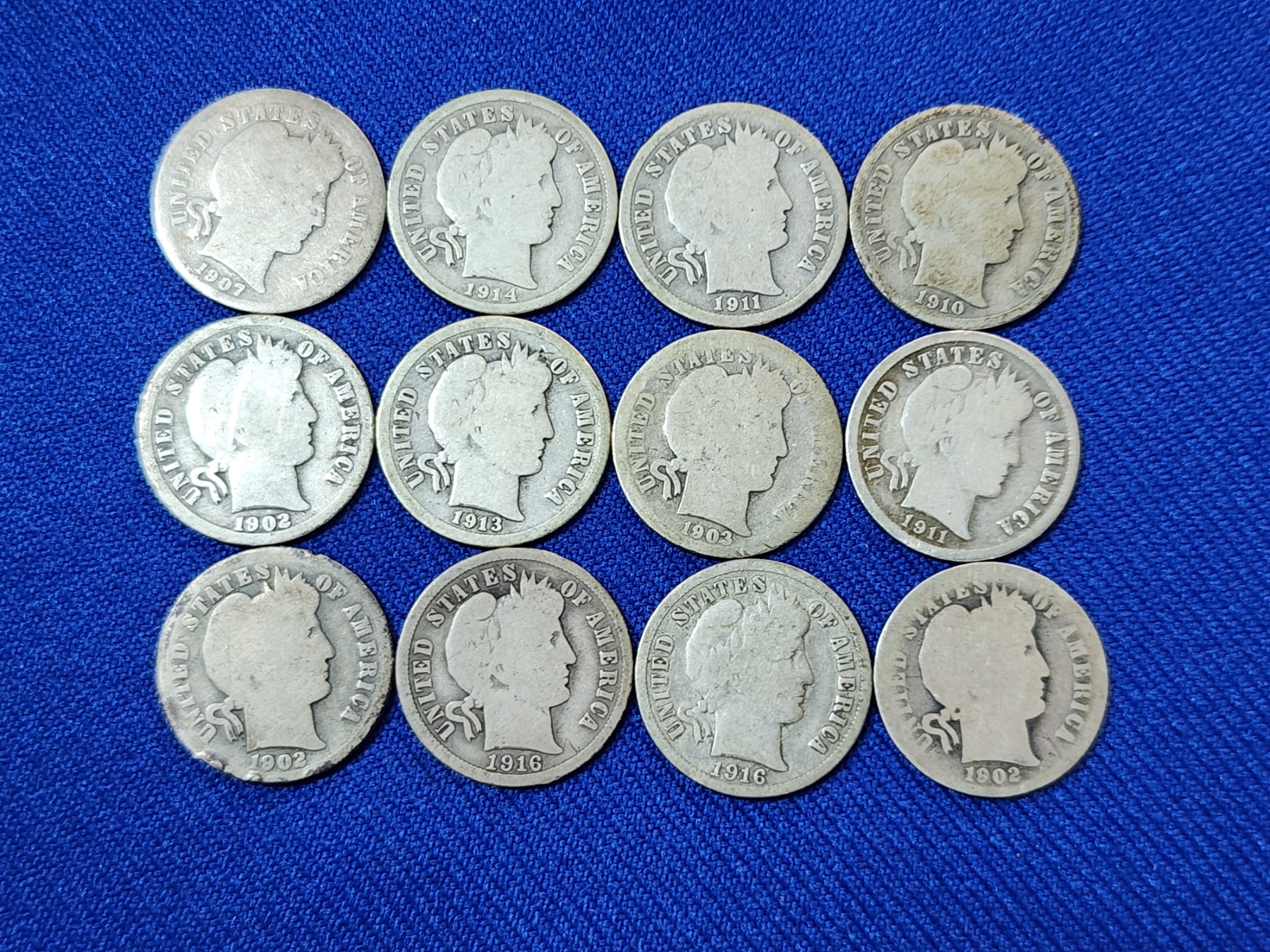 x12 Assorted Years 90% Silver Barber Dimes FV: $1.20