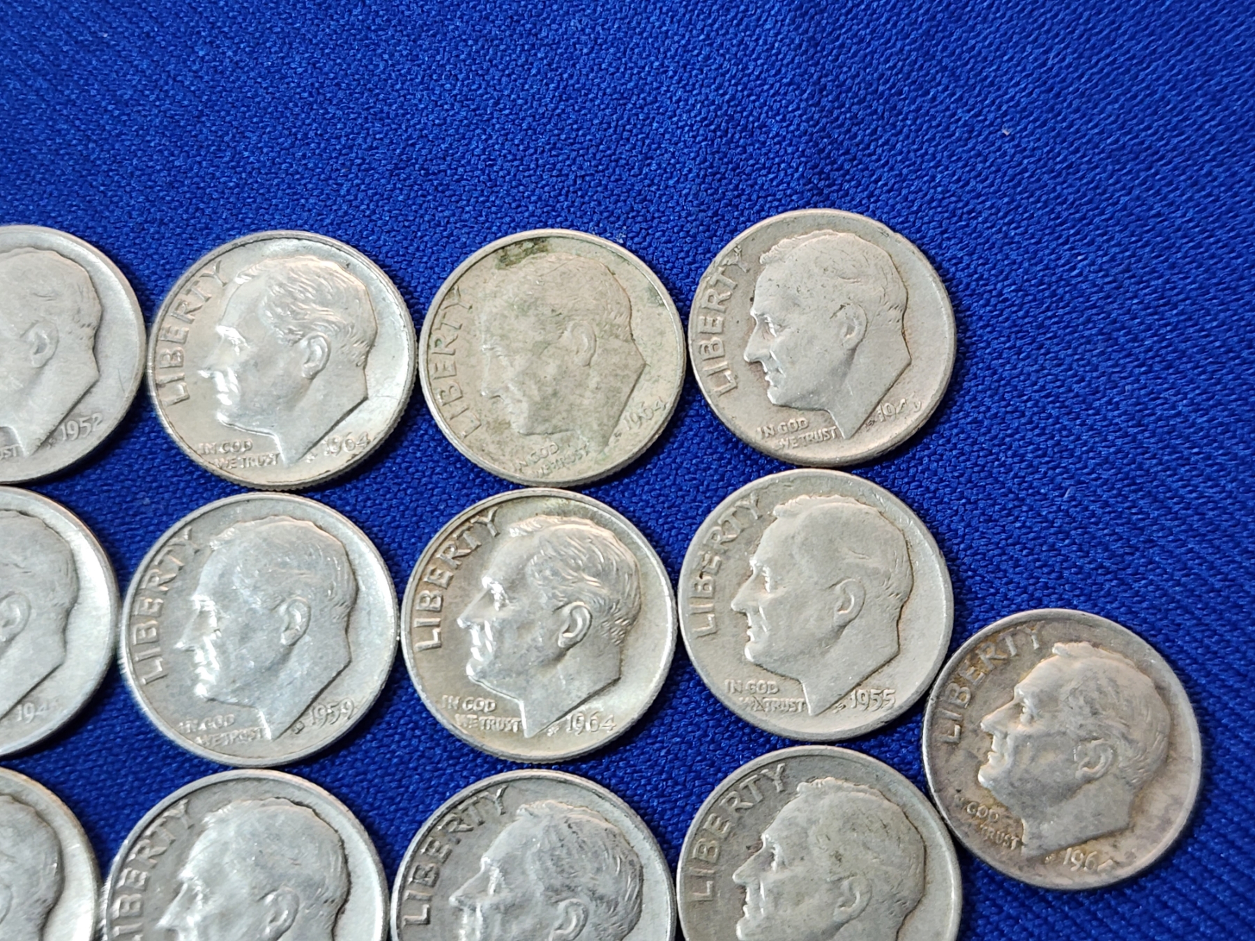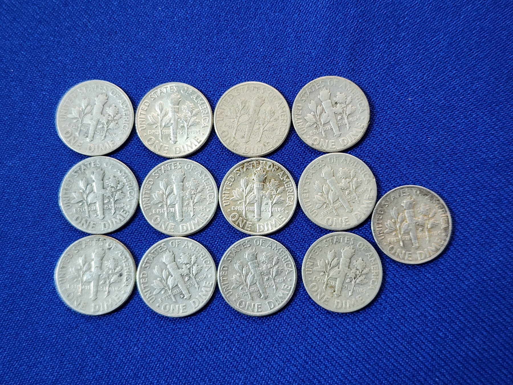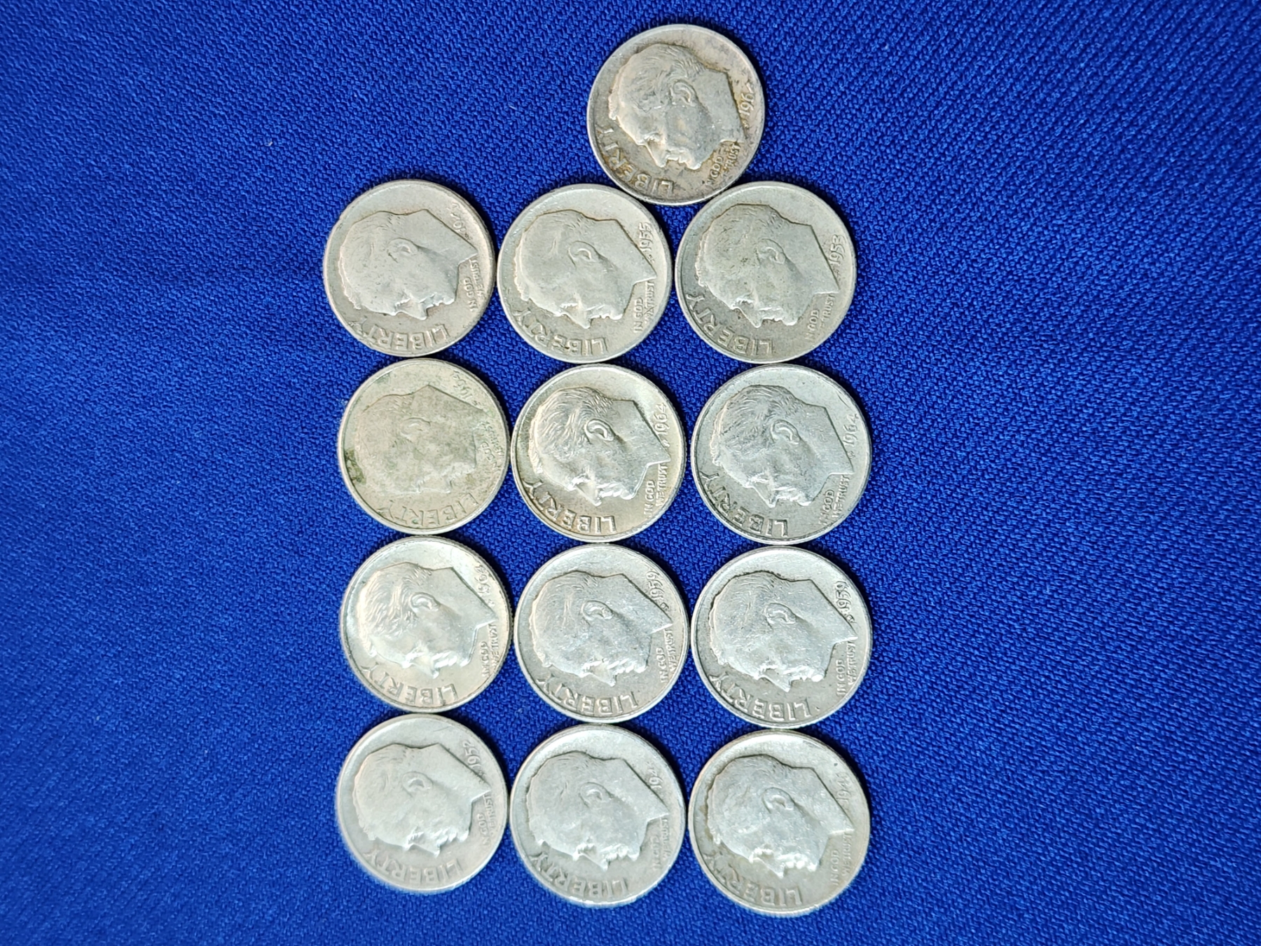 x13 Assorted Years 1964 & Pre 1964 Silver Roosevelt Dimes FV: $1.60