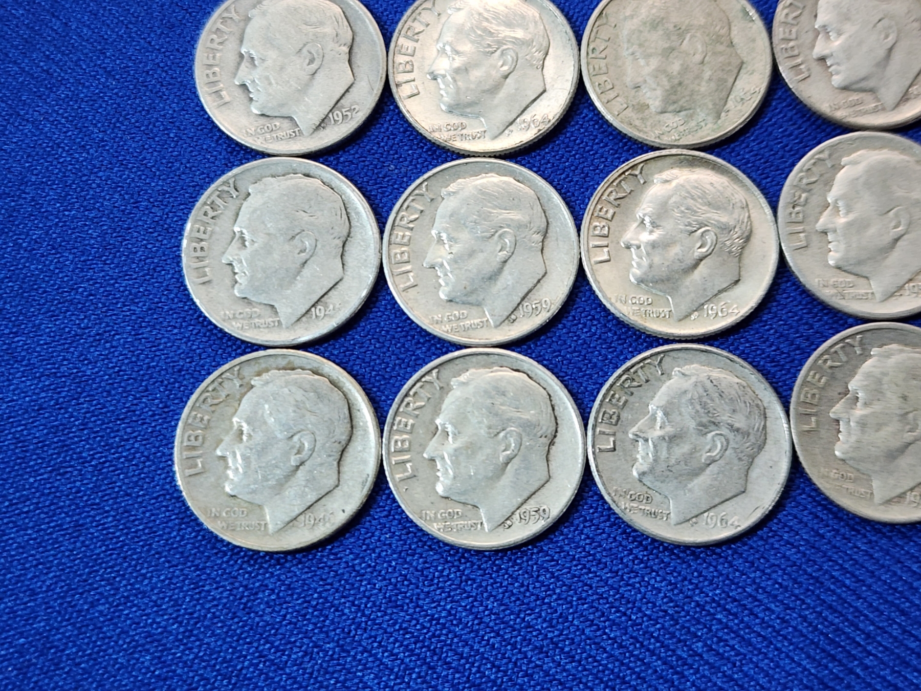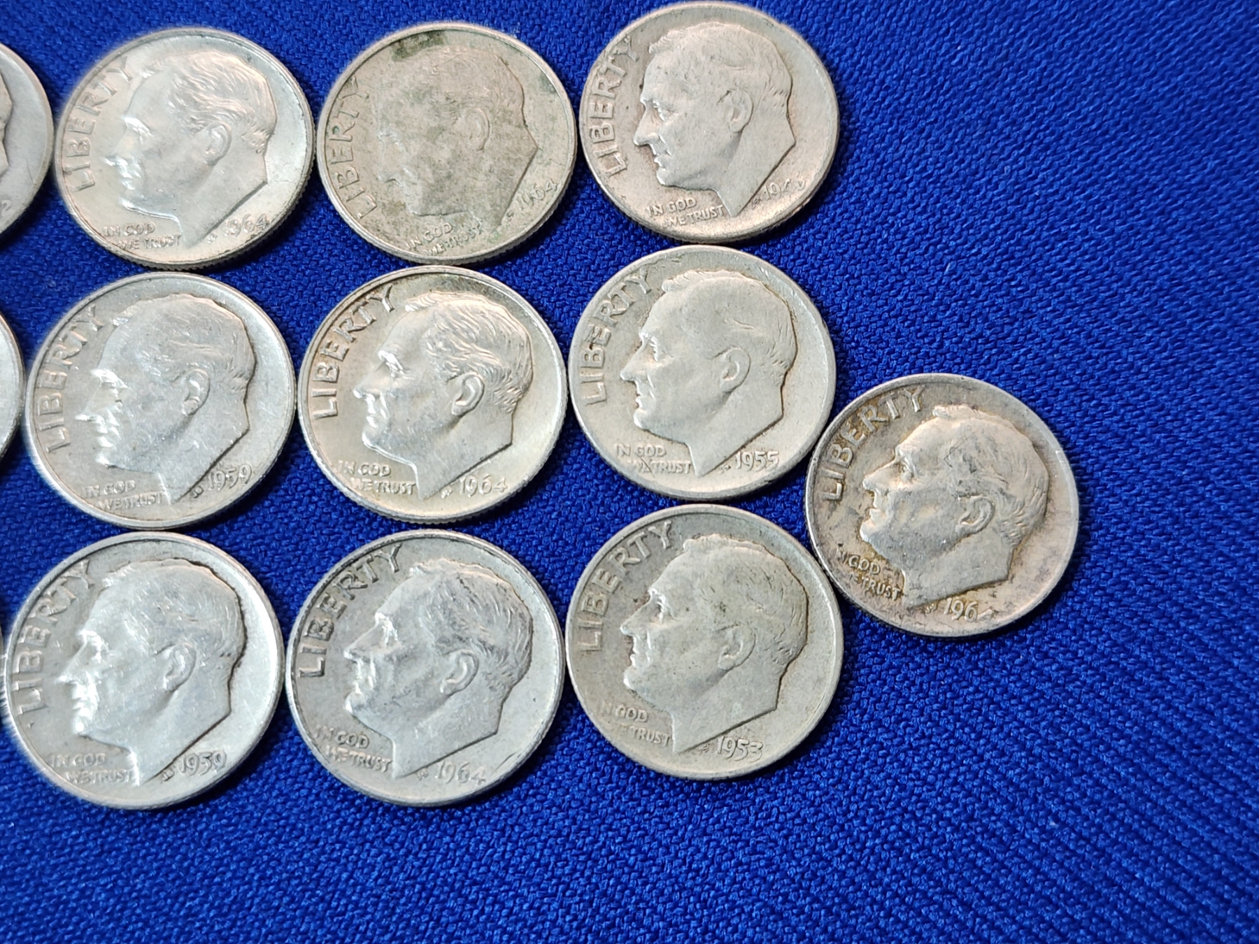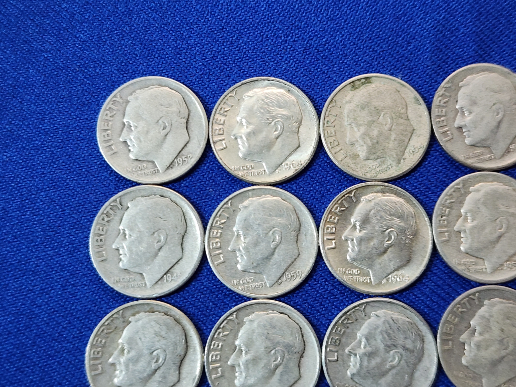 x13 Assorted Years 1964 & Pre 1964 Silver Roosevelt Dimes FV: $1.60