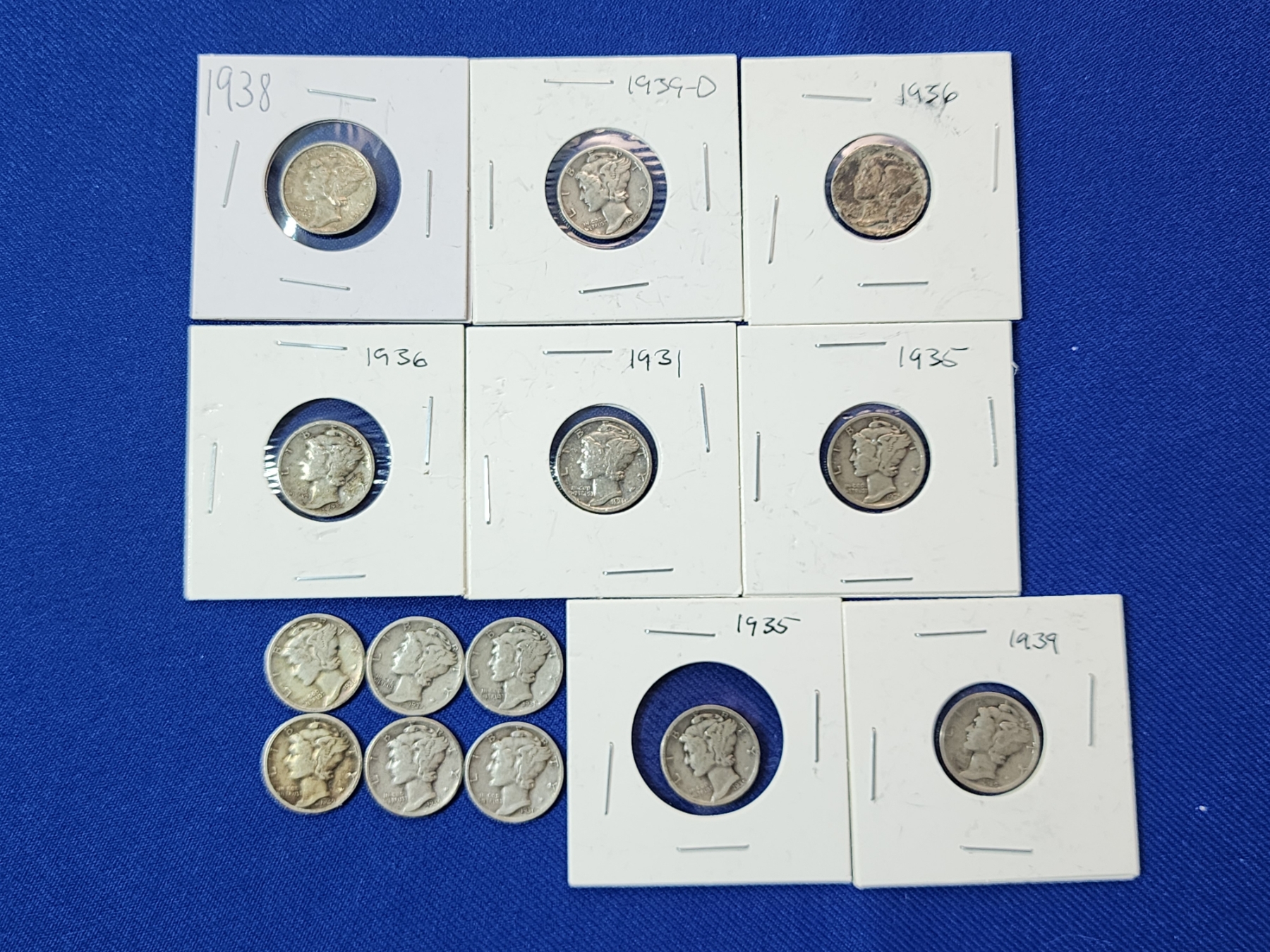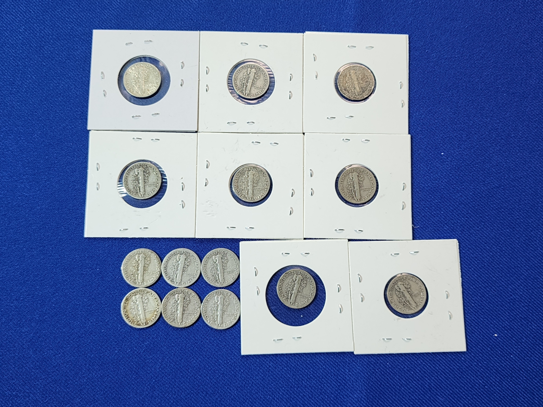x14 1930's Silver Mercury Dimes FV: $1.40