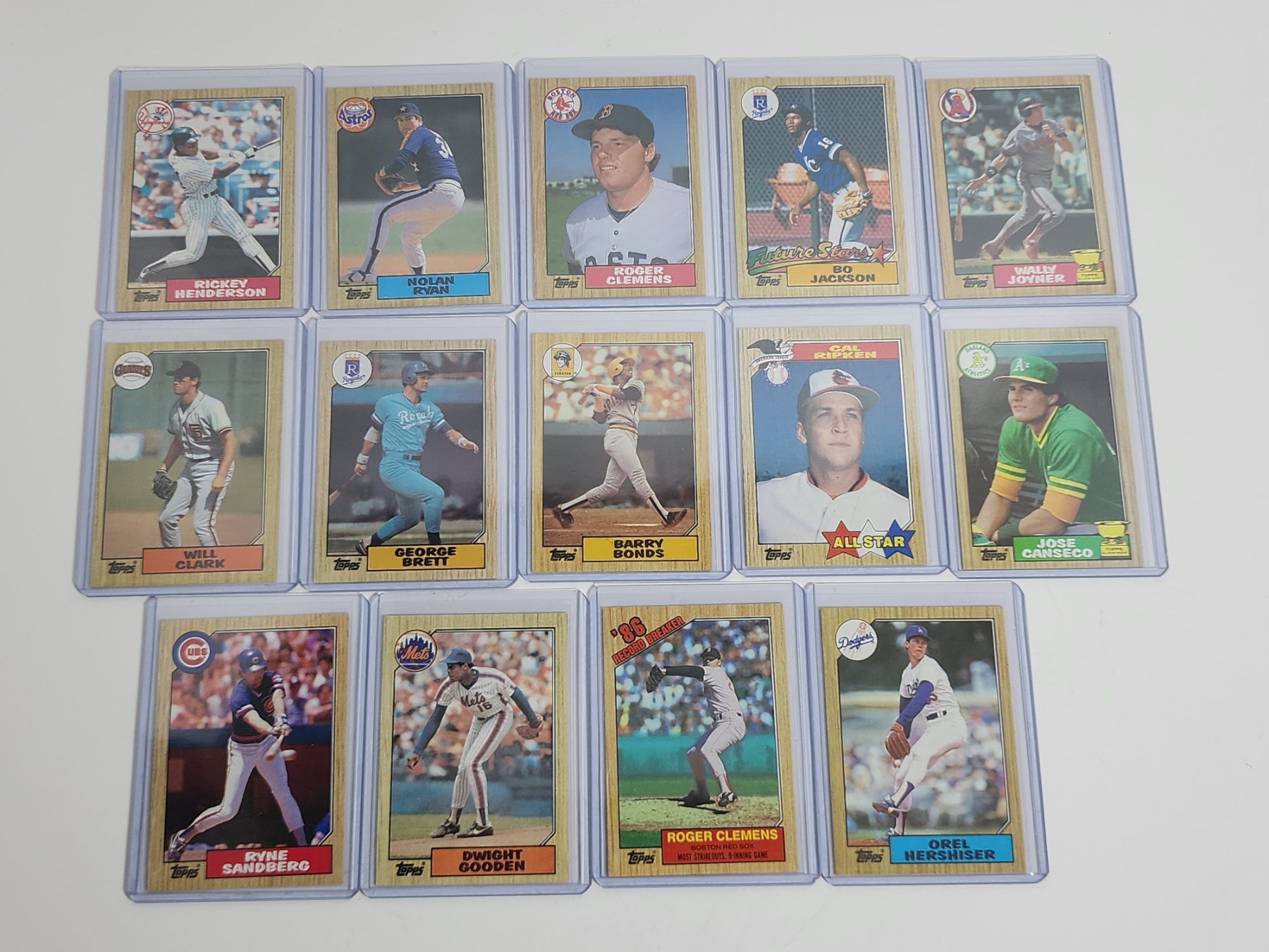 x14 Assorted 1987 Topps Baseball Cards - Excellent Condition in Card Holders