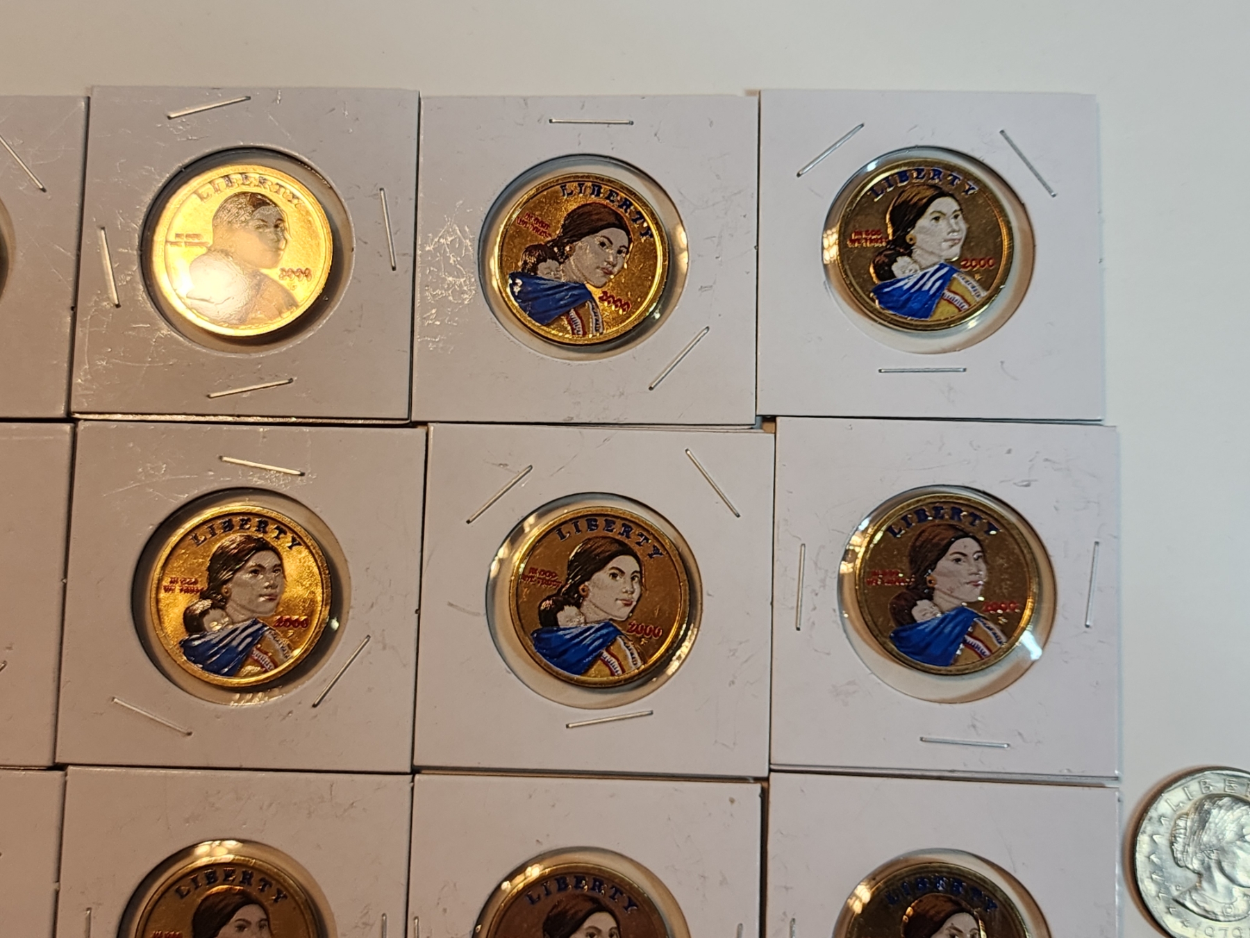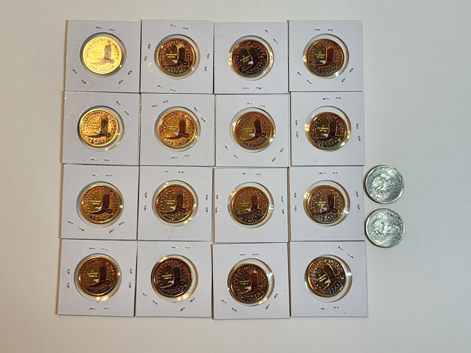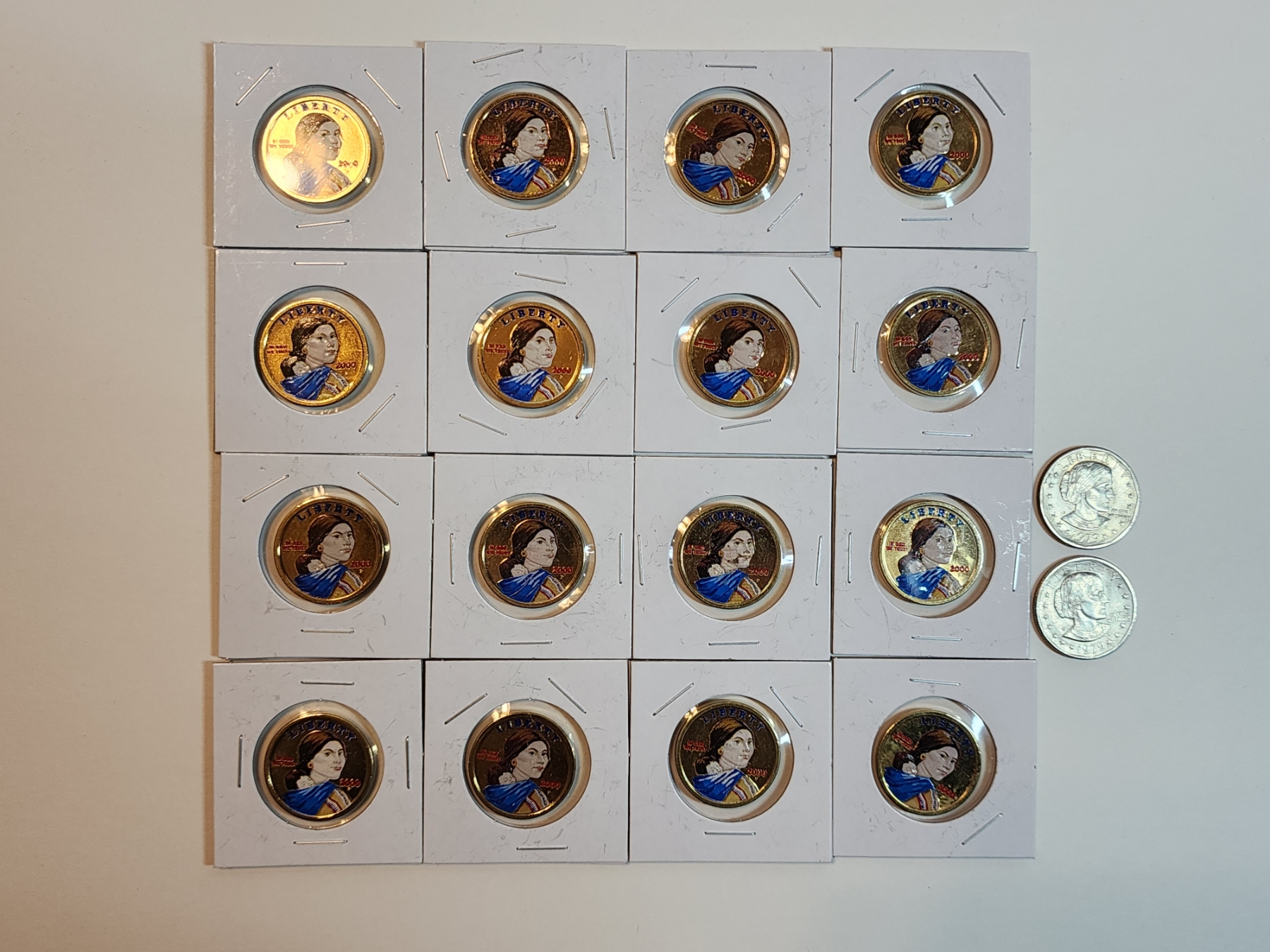 x16 Colorized 2000-P Sacagawea Dollar Coins & x2 1979 Susan B. Anthony Dollar Coins FV: $18